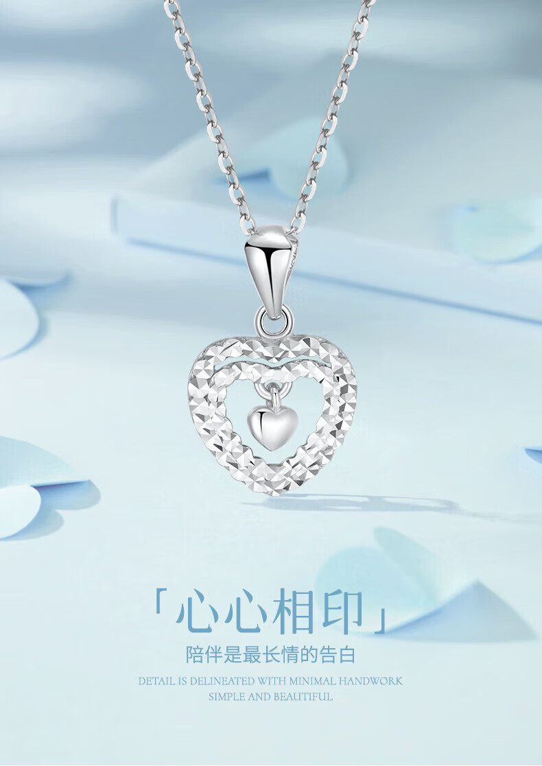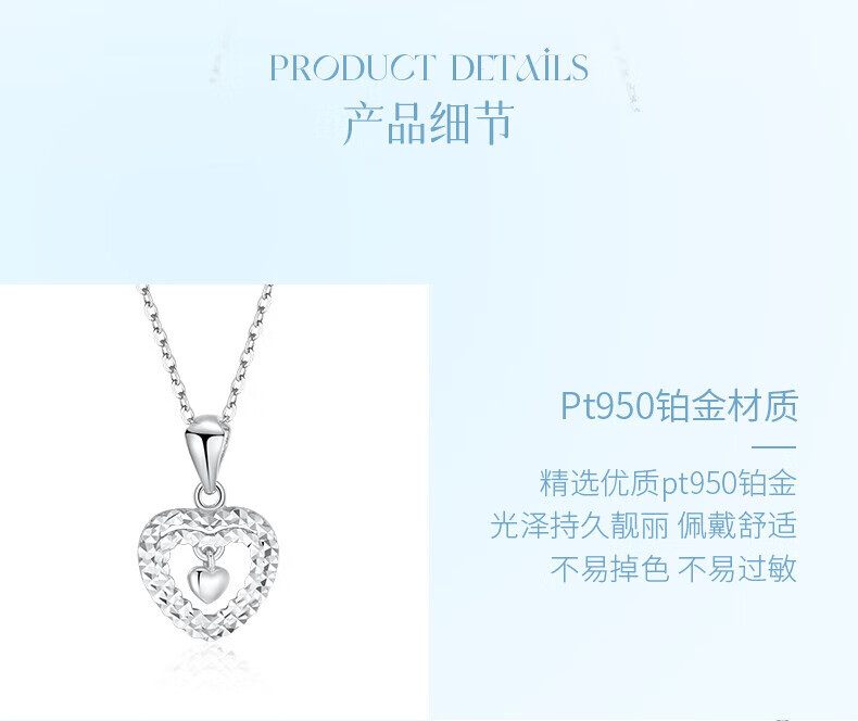 Dirholl brand PT950 platinum double heart pendant necklace for women, fashionable and versatile clavicle chain, Valentine's Day gift for girlfriend, platinum heart-shaped necklace, high-end gift box