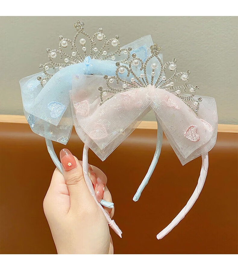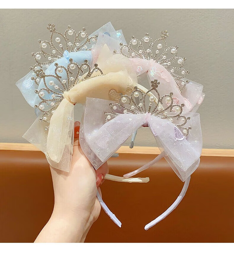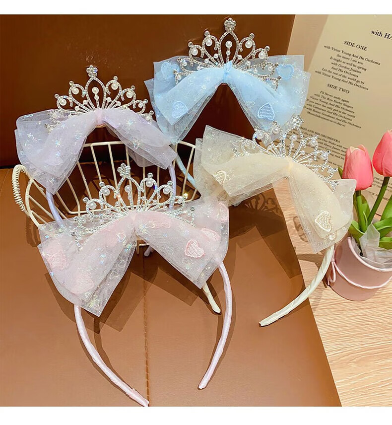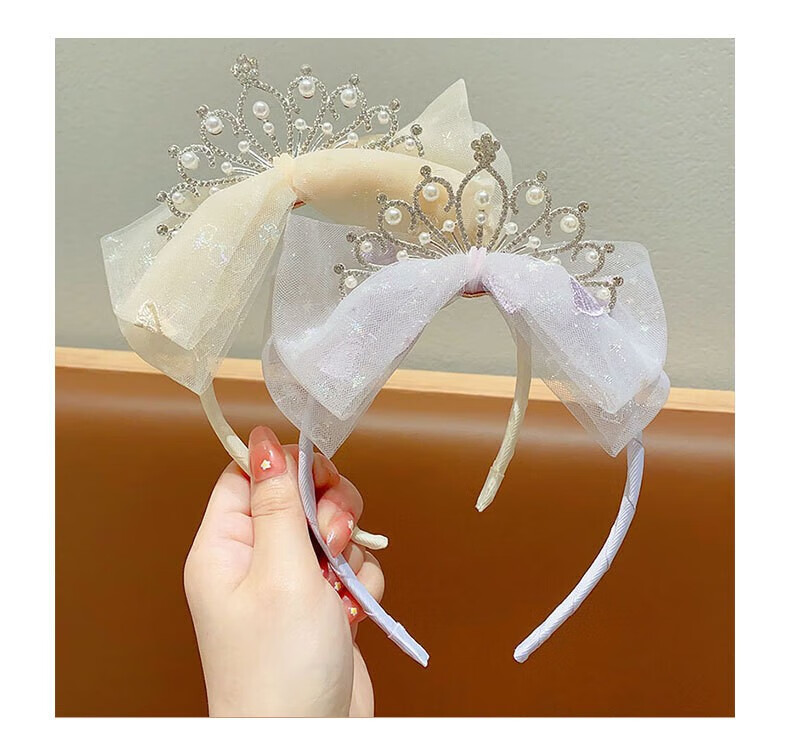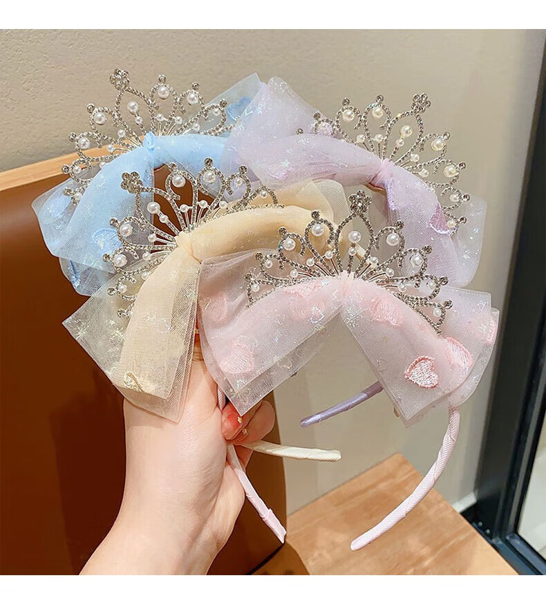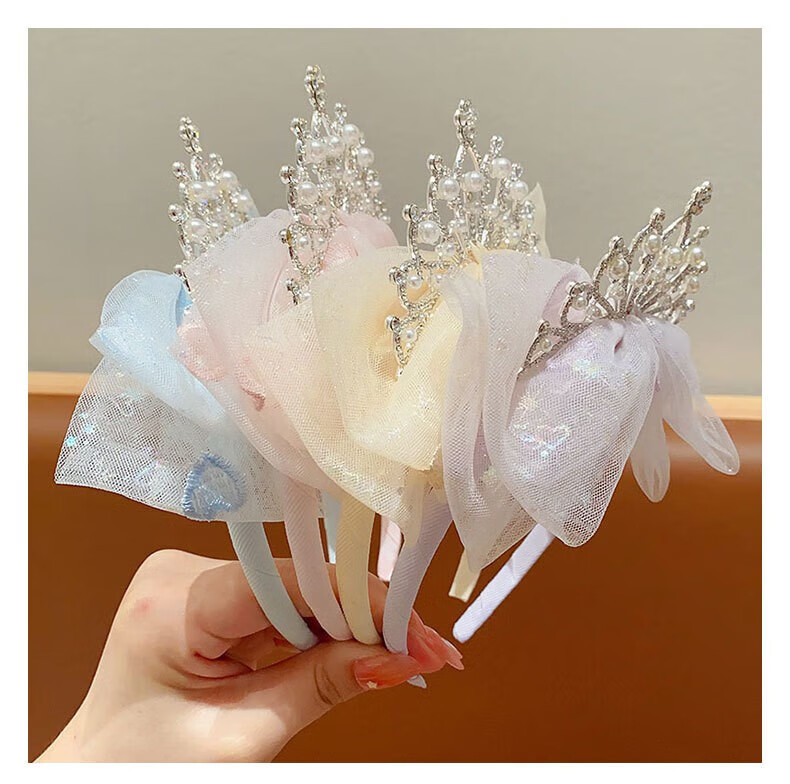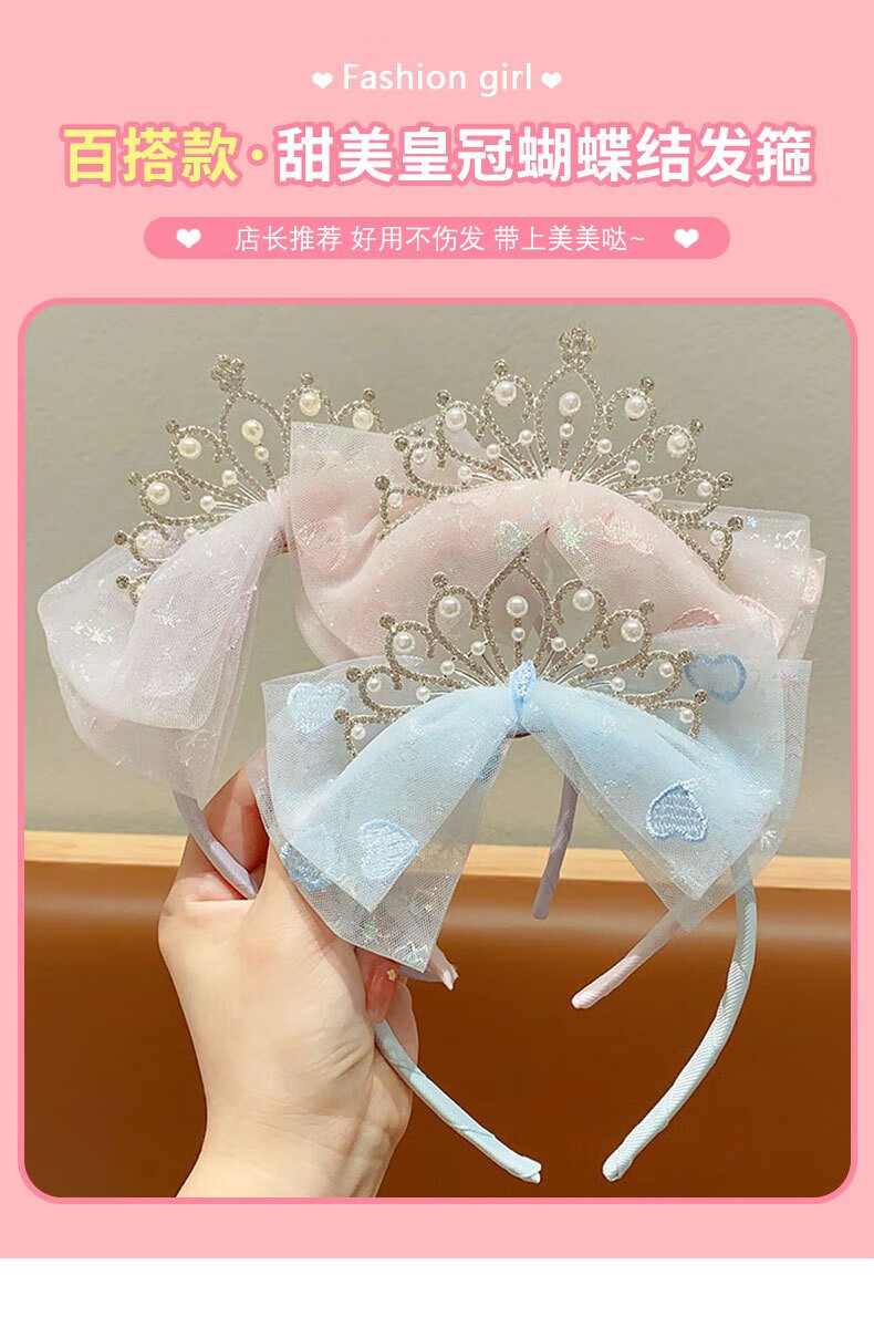 Bai Qixin children's hair accessories crown headband little girl headband cute butterfly pearl crown princess girl birthday gift children's crown headband light purple