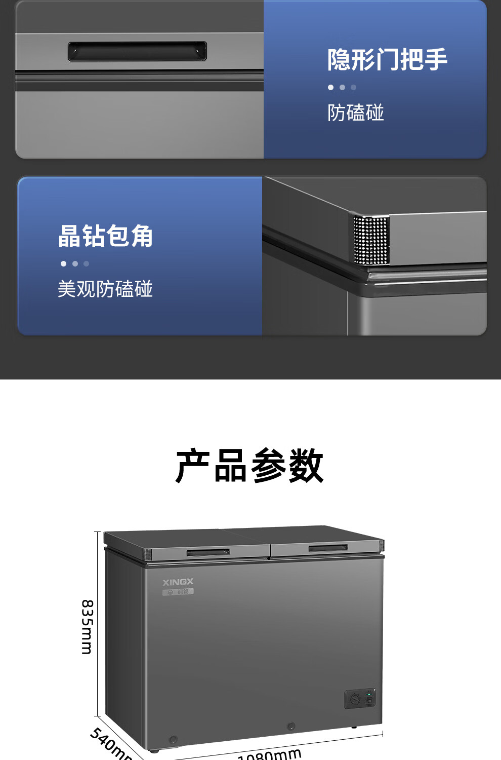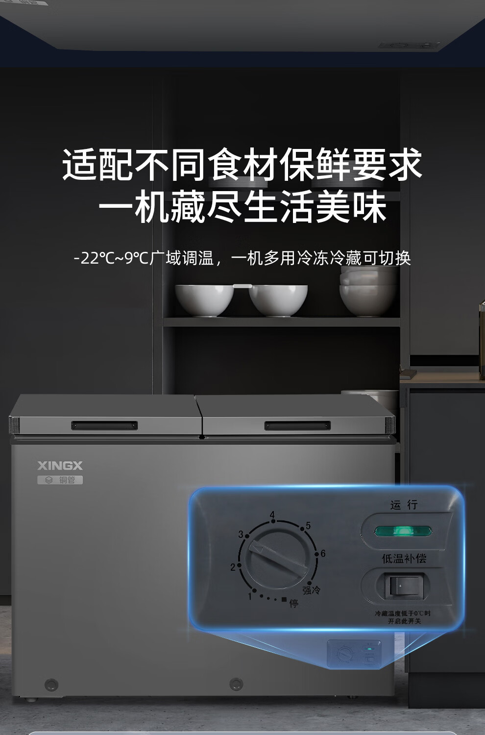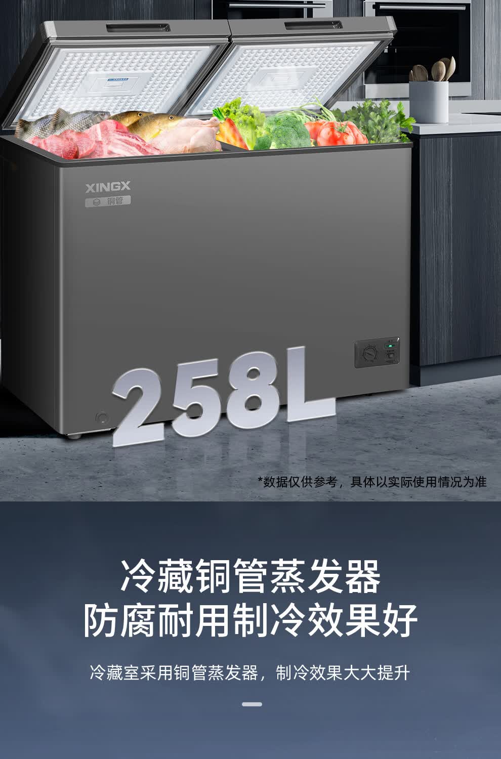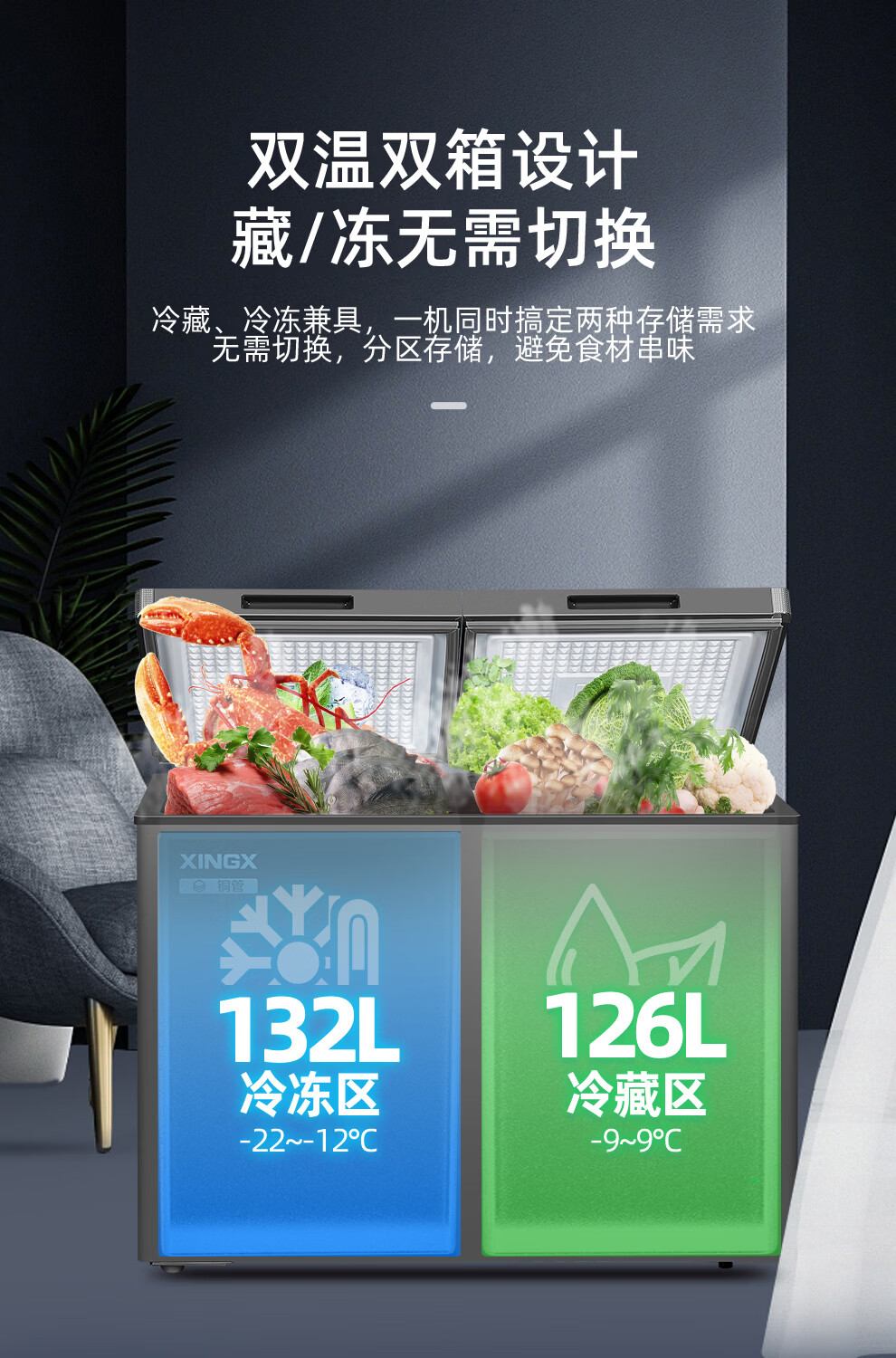 Xingx (XINGX) dual-temperature dual-box household freezer horizontal dual-temperature freezer 80% frost reduction commercial top-door refrigeration freezer energy-saving large-capacity freezer tea cabinet -26 C cryogenic dual temperature 245L