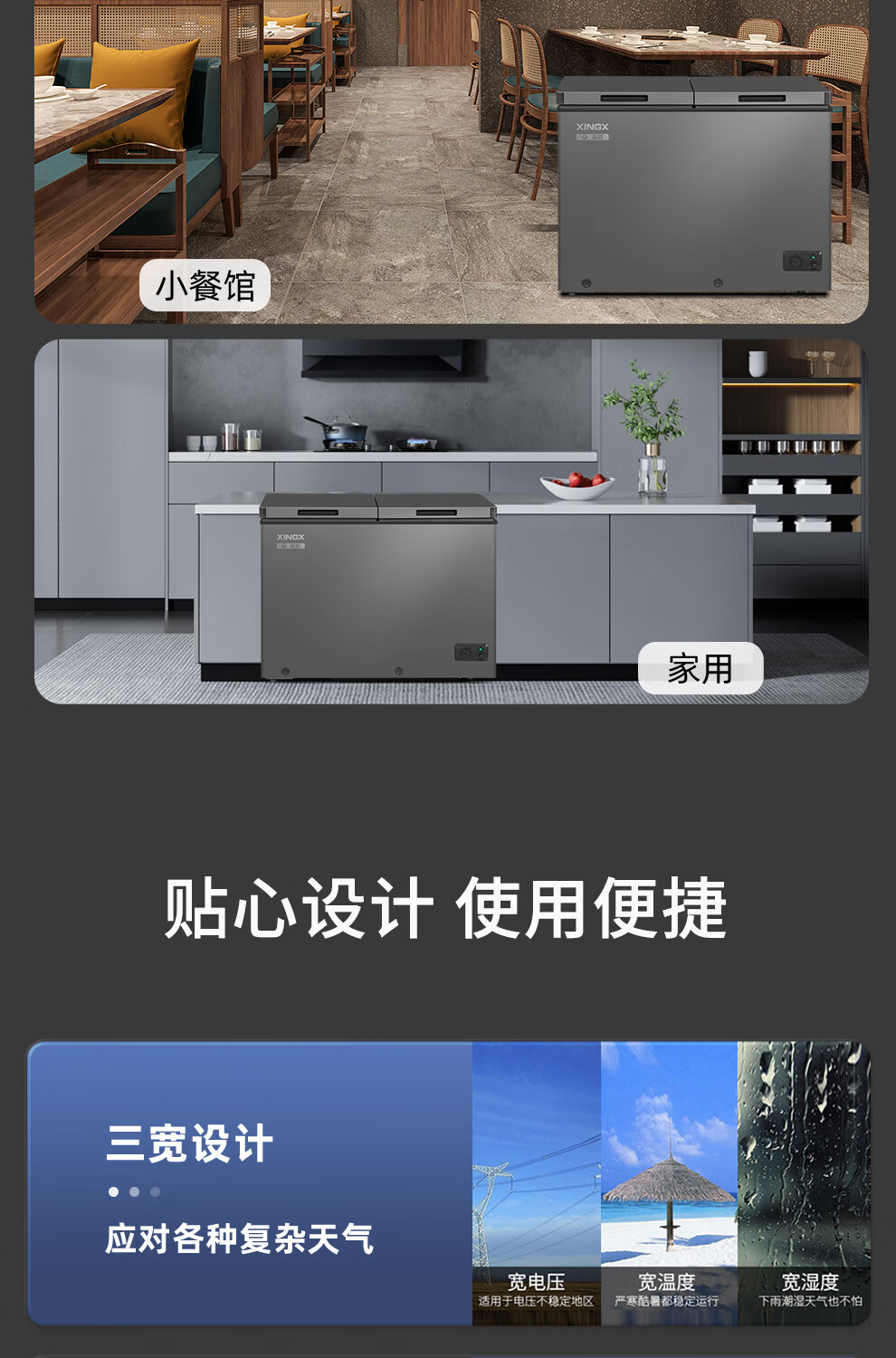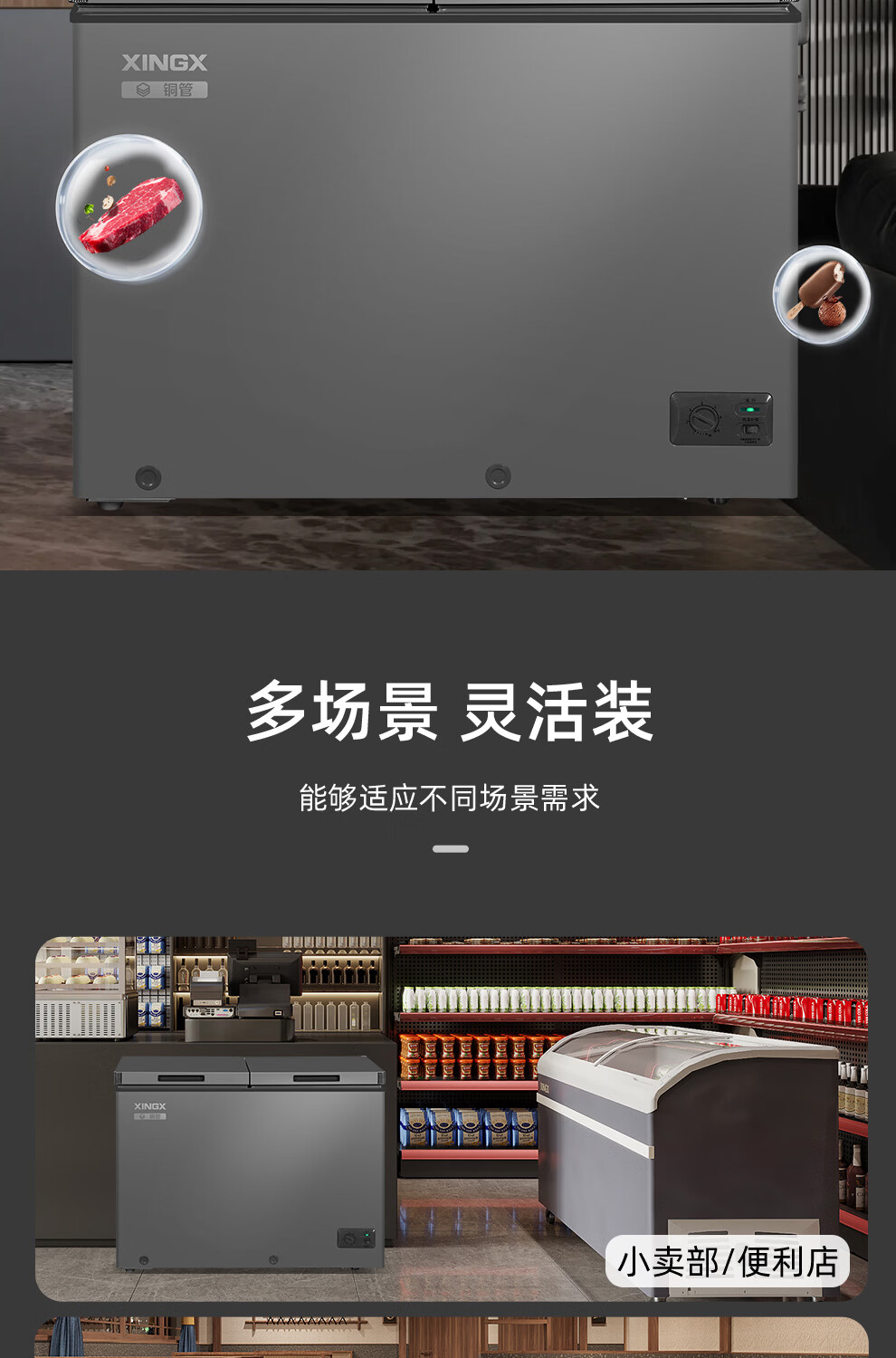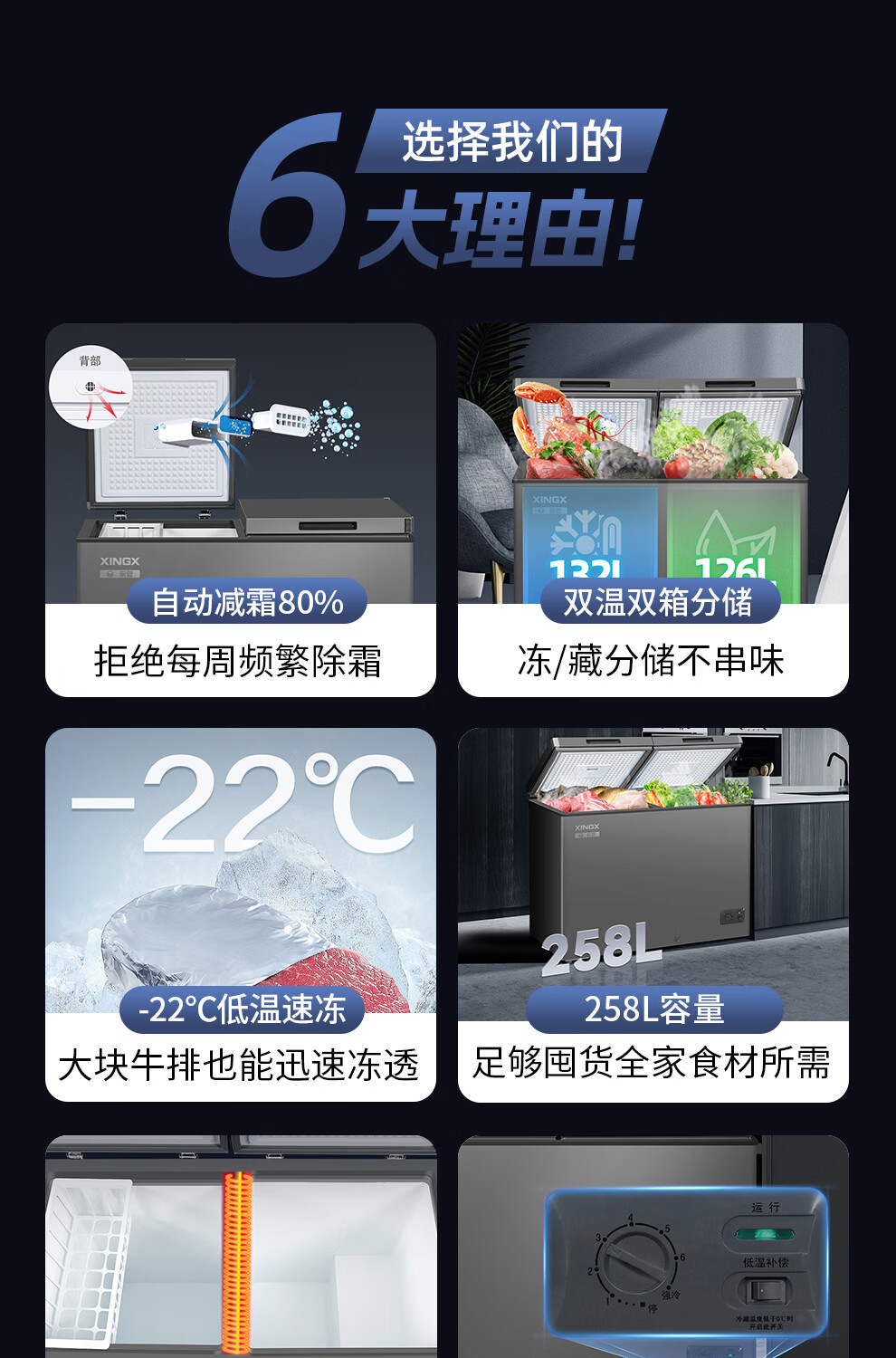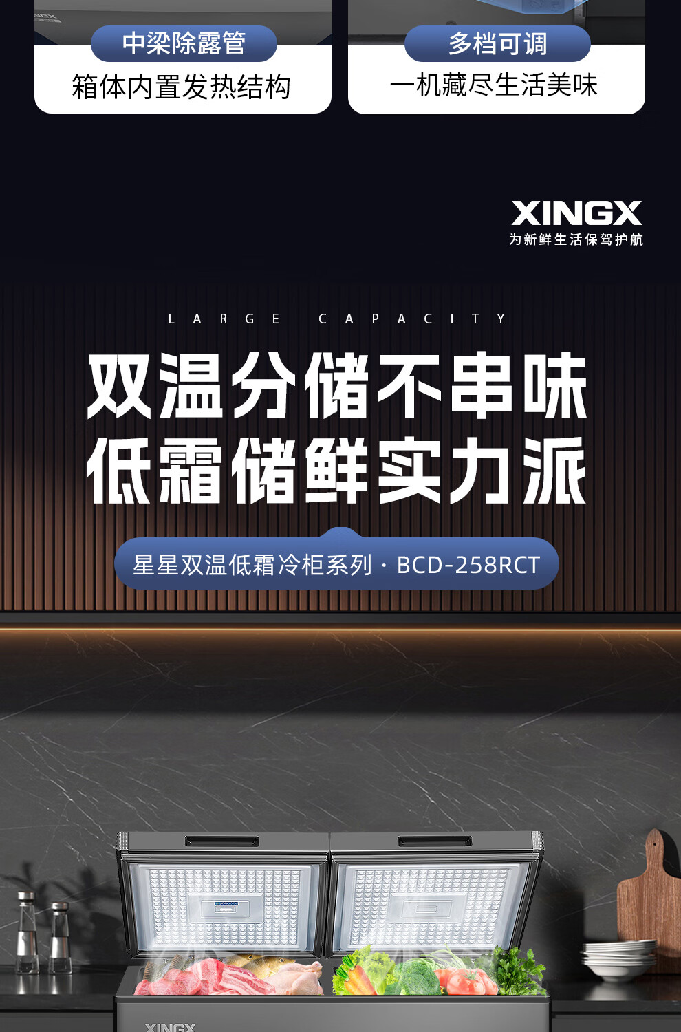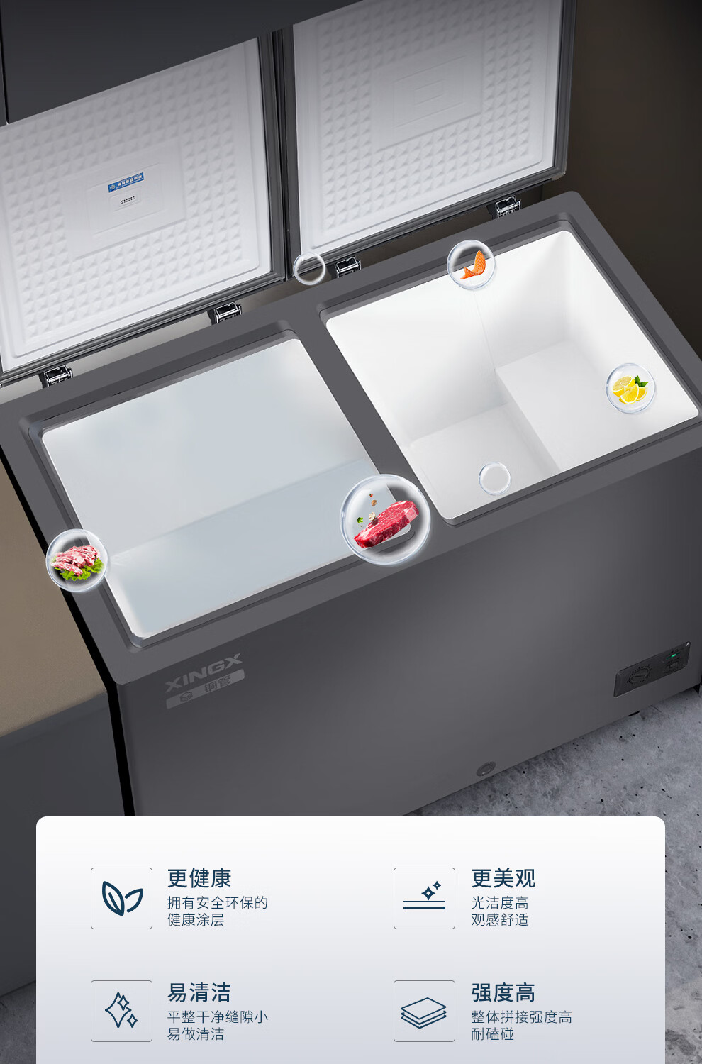 Xingx (XINGX) dual-temperature dual-box household freezer horizontal dual-temperature freezer 80% frost reduction commercial top-door refrigeration freezer energy-saving large-capacity freezer tea cabinet -26 C cryogenic dual temperature 245L