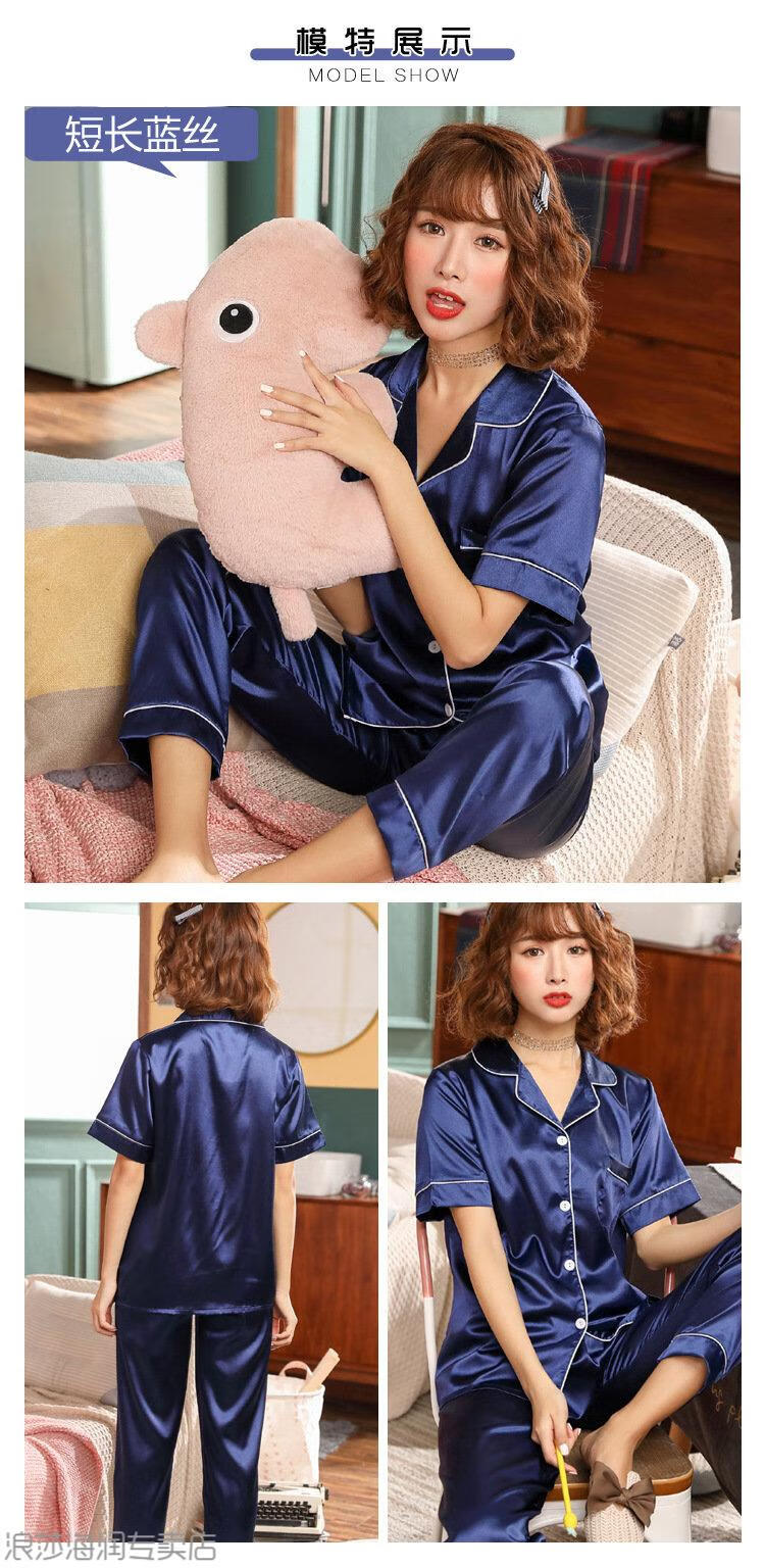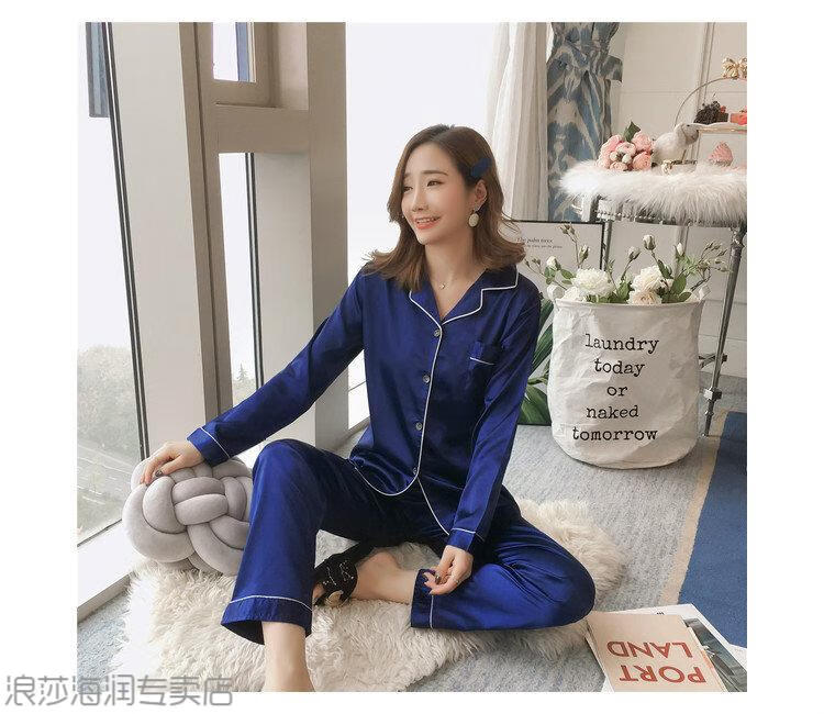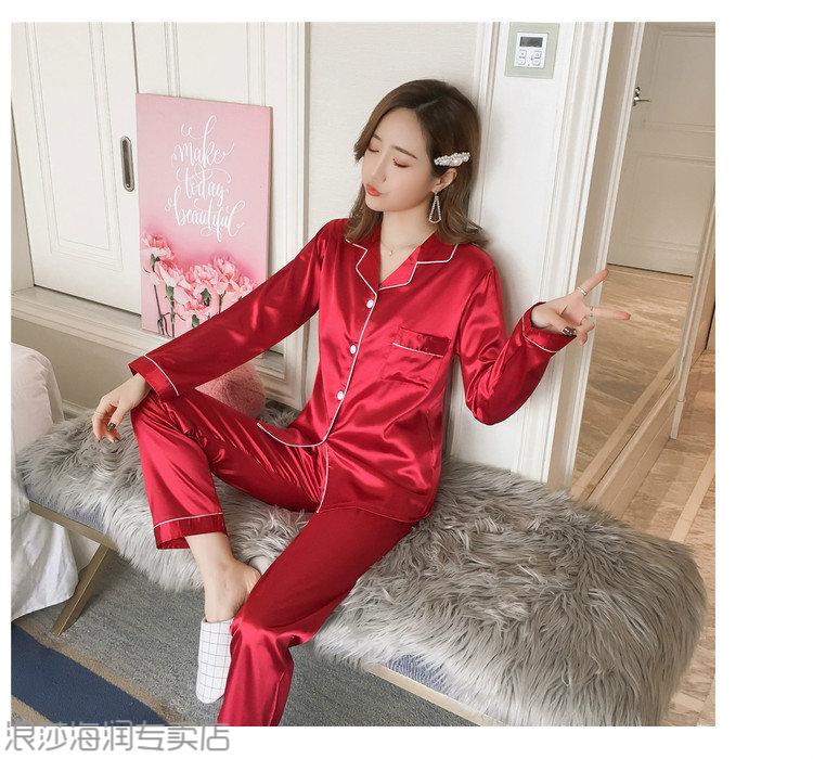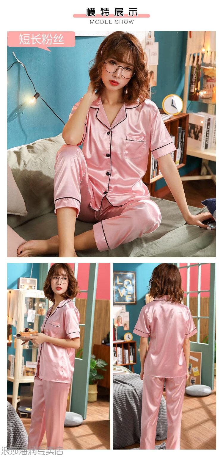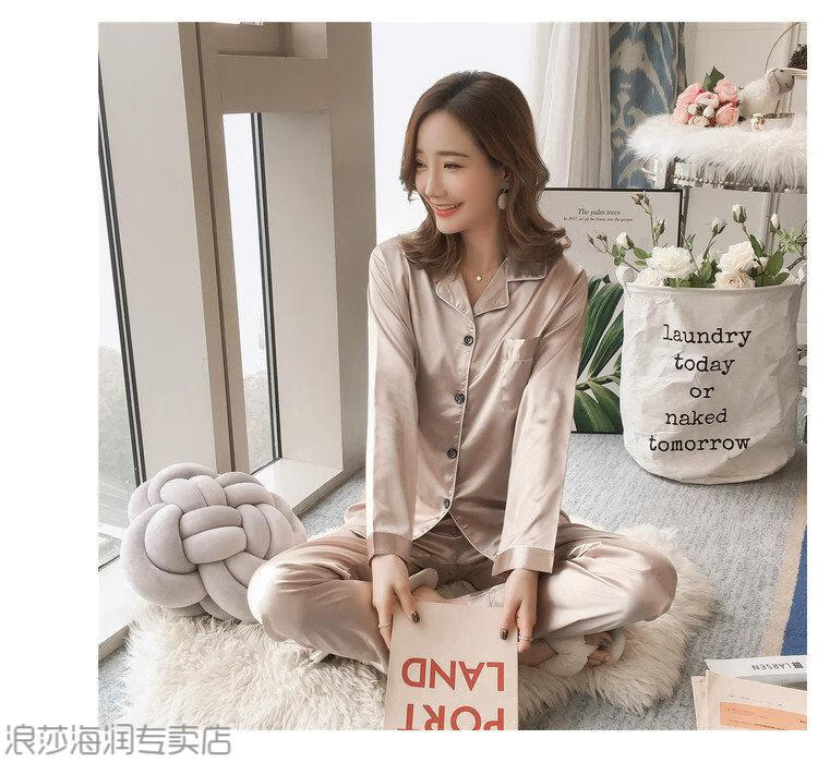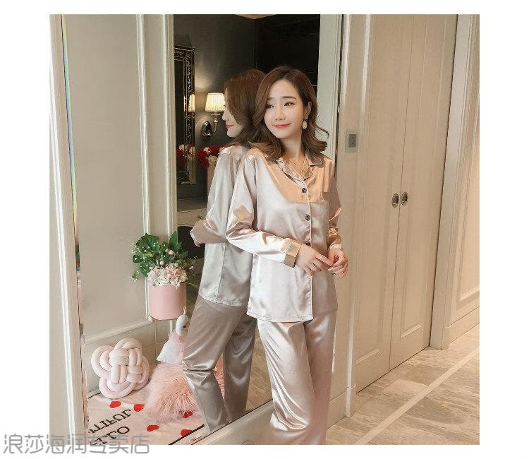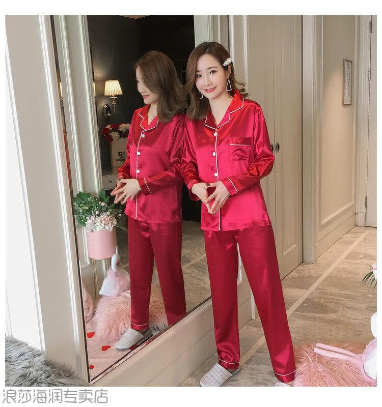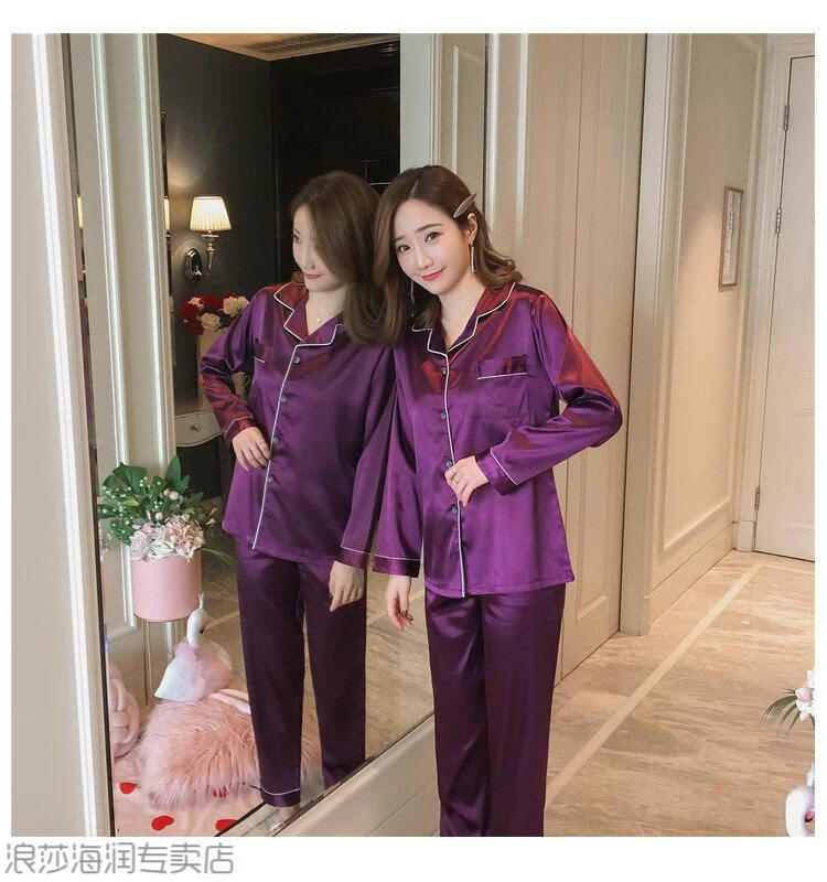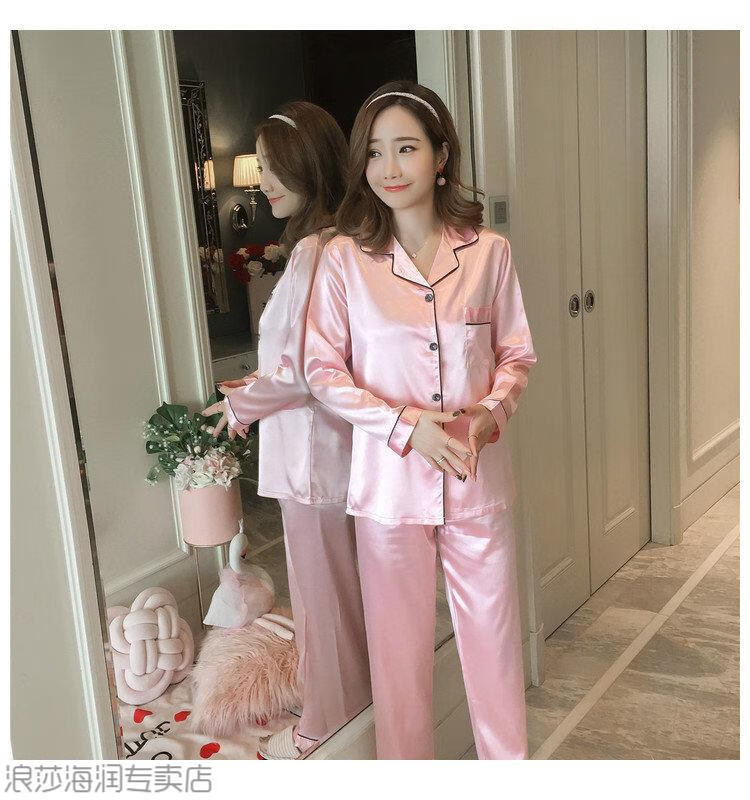 LangSha Light Luxury Ice Silk Pajamas Women's Long Sleeve Large Size Two-piece Suit Solid Color Sweet and Cute Spring and Autumn Home Wear Outerwear Double Long Style Pink 5XL Recommended 170-185 Jin Jin is equal to 0.5 kg
