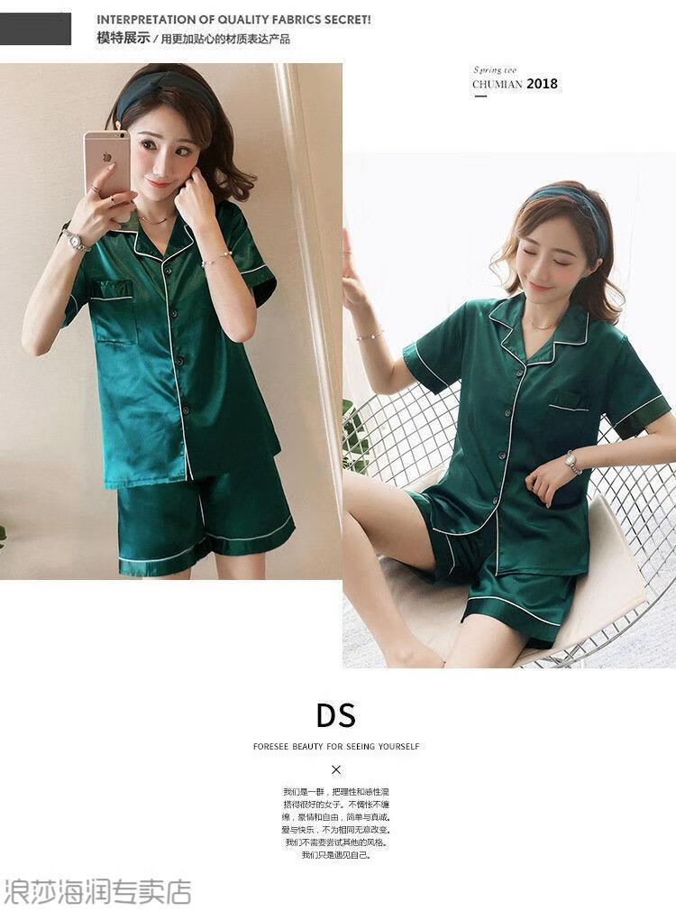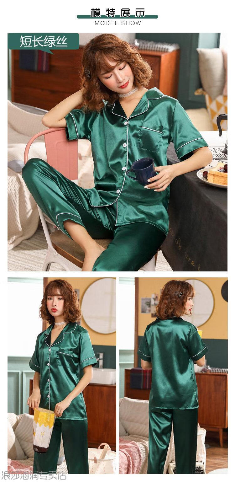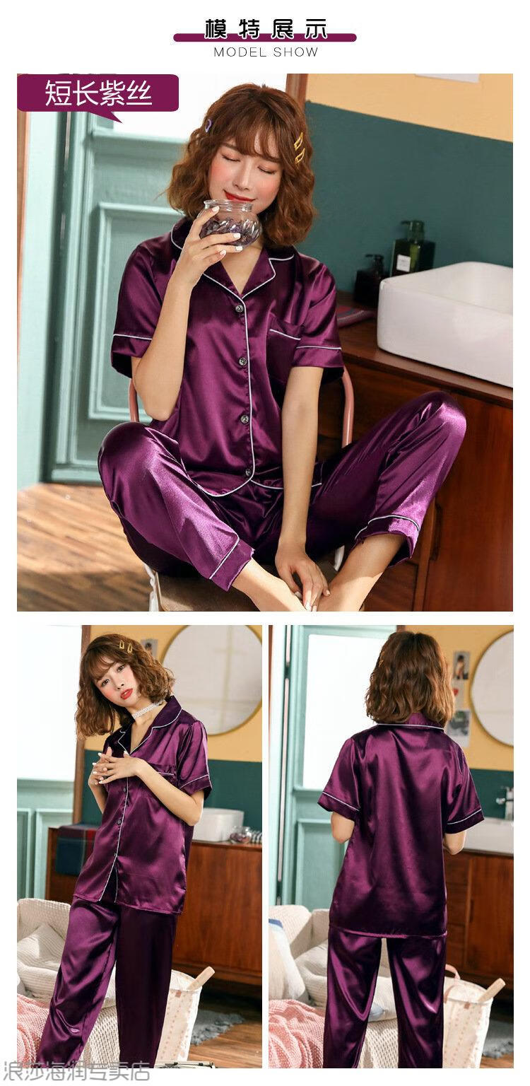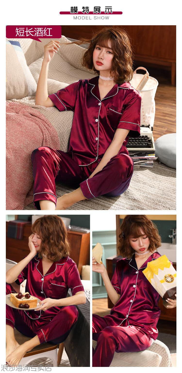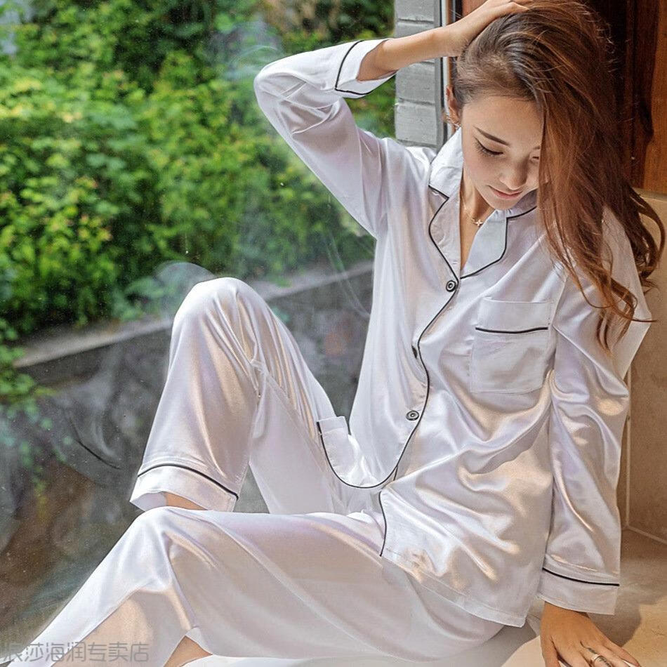 LangSha Light Luxury Ice Silk Pajamas Women's Long Sleeve Large Size Two-piece Suit Solid Color Sweet and Cute Spring and Autumn Home Wear Outerwear Double Long Style Pink 5XL Recommended 170-185 Jin Jin is equal to 0.5 kg