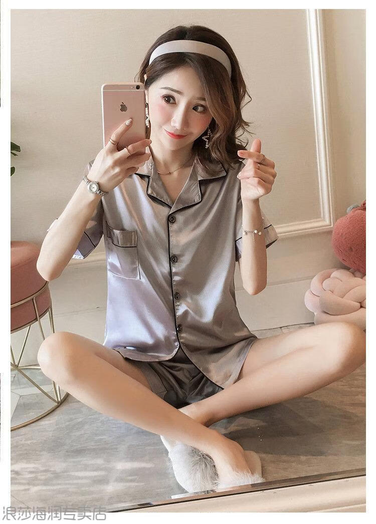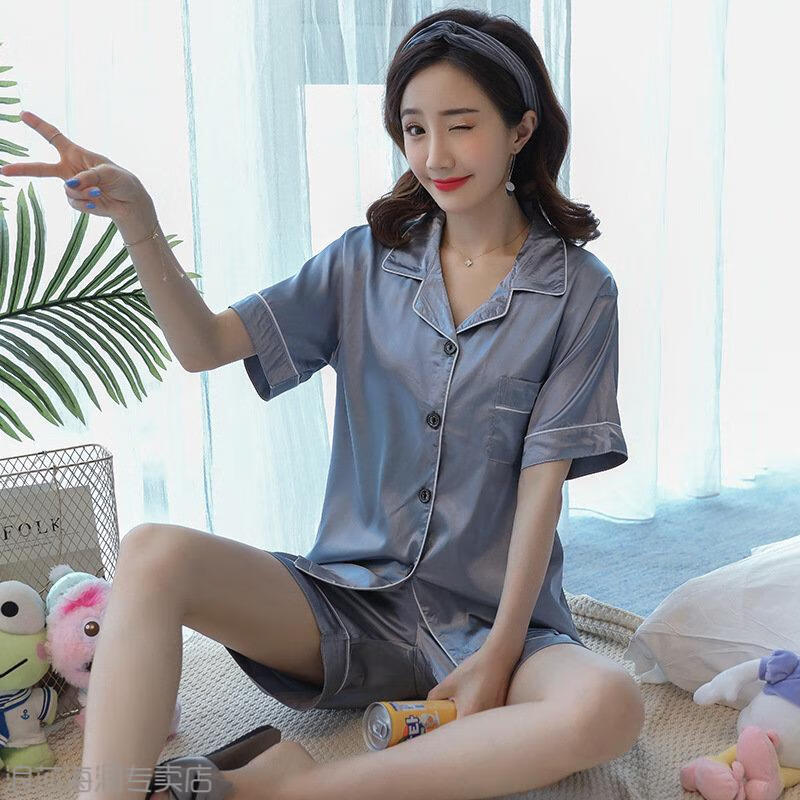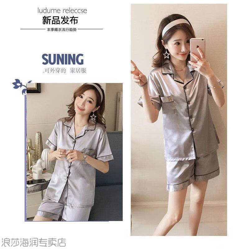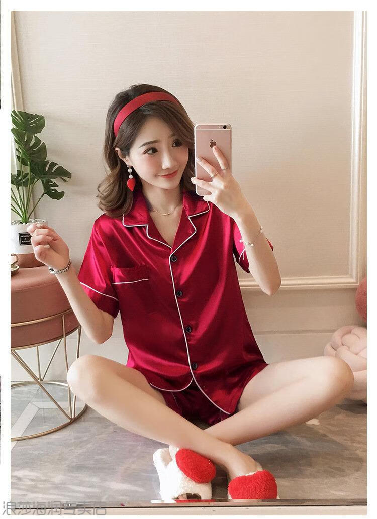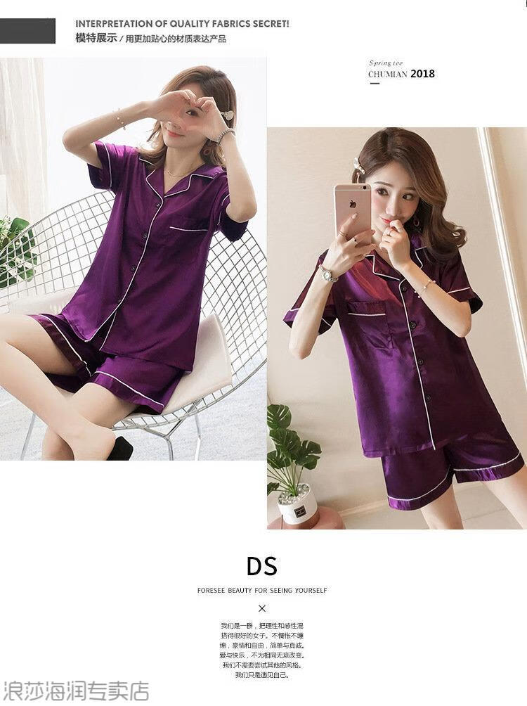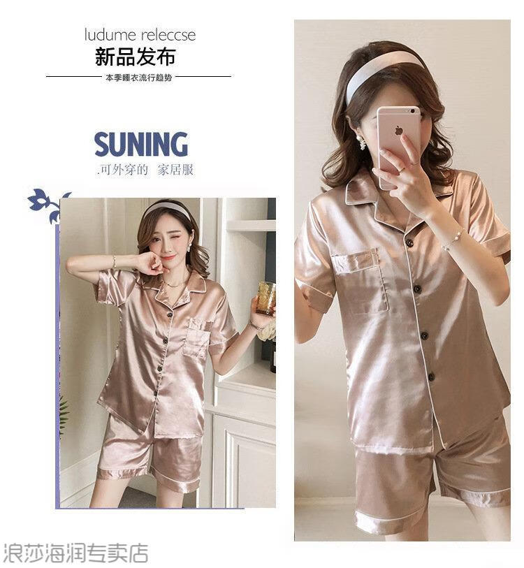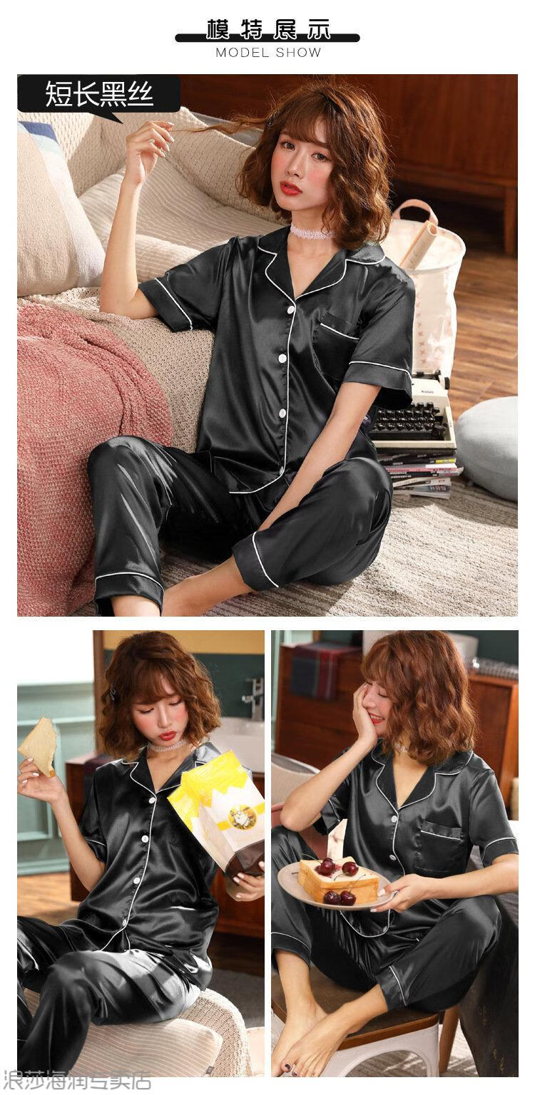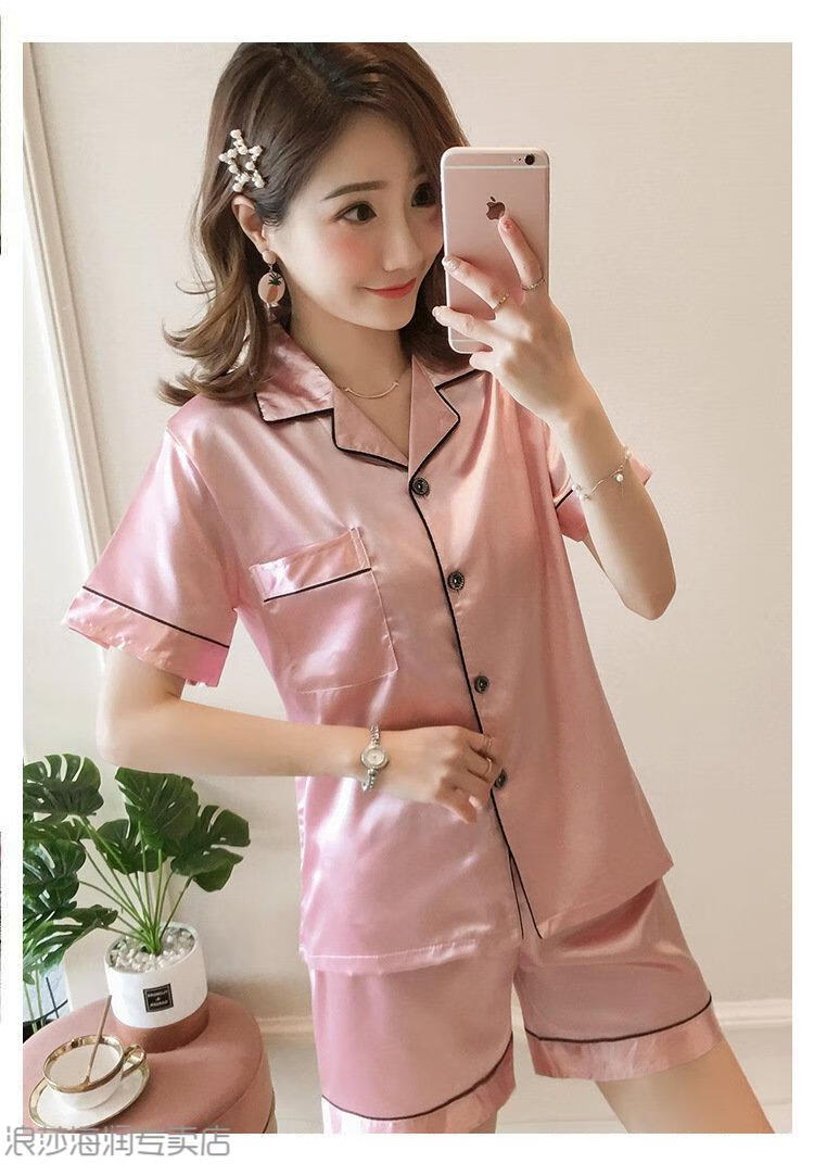 LangSha Light Luxury Ice Silk Pajamas Women's Long Sleeve Large Size Two-piece Suit Solid Color Sweet and Cute Spring and Autumn Home Wear Outerwear Double Long Style Pink 5XL Recommended 170-185 Jin Jin is equal to 0.5 kg