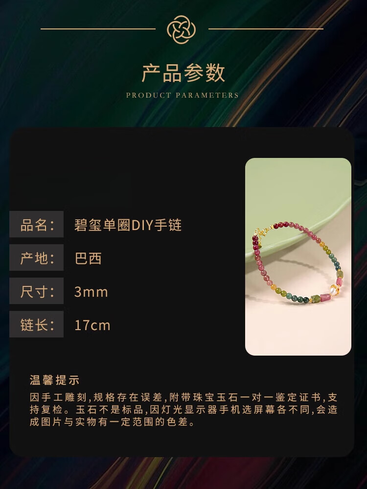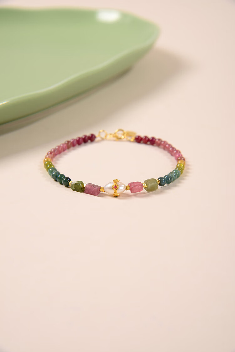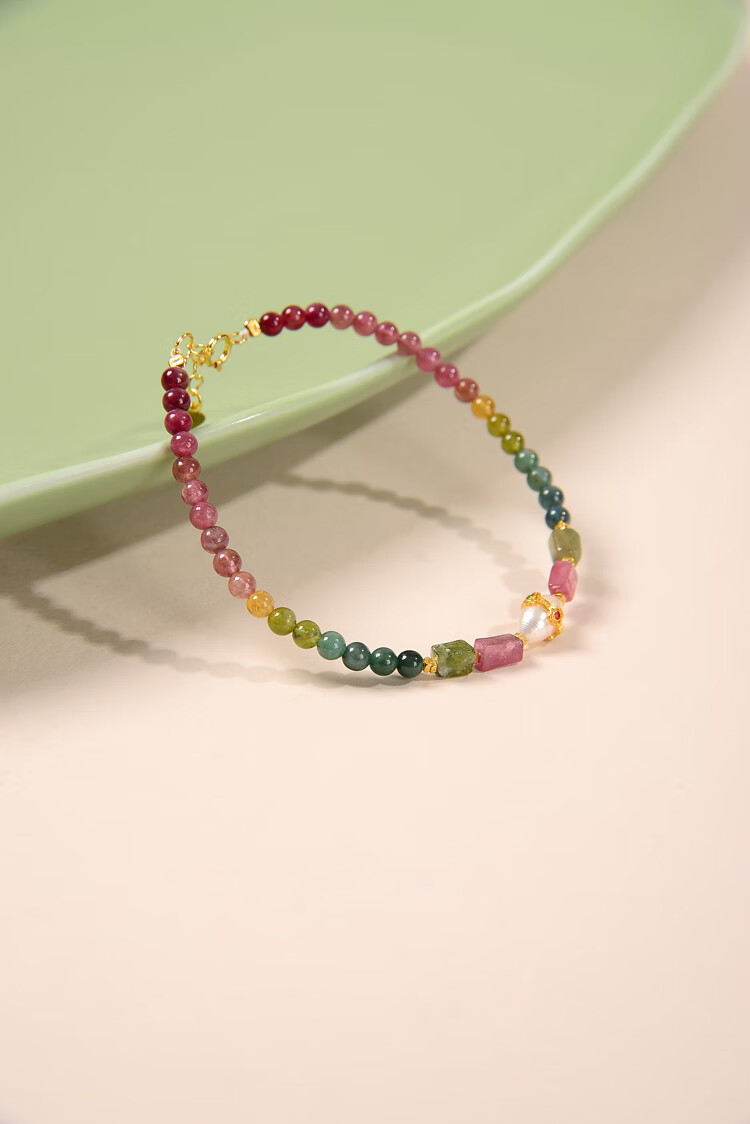 Tourmaline Bracelet S925 Silver Style Natural Rainbow DIY Single Circle Tourmaline Single Circle DIY Bracelet 3mm