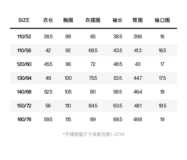 China (cm) 160-165/84-86 165-170 / 88-90 167-172 / 92-96 168-173 / 98-102 170-176 / 106-110