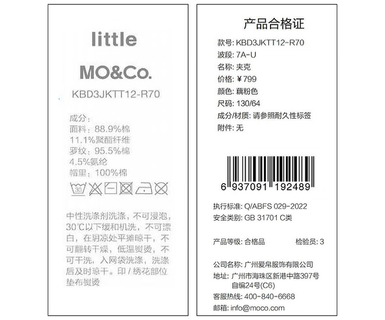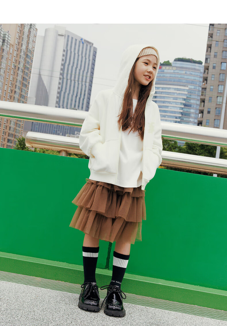 Little MO&Co. Children's clothing autumn new style girls versatile long-sleeved hooded jacket boys jacket children lotus root pink 2 140 140/68
