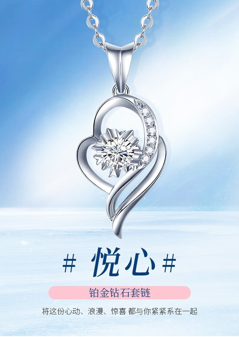 Dirholl 950 Platinum I Love You Necklace Jurchen Diamond Fashionable Versatile Birthday Gift for Wife 999 Platinum Necklace + pt950 Diamond 9 Points Pendant
