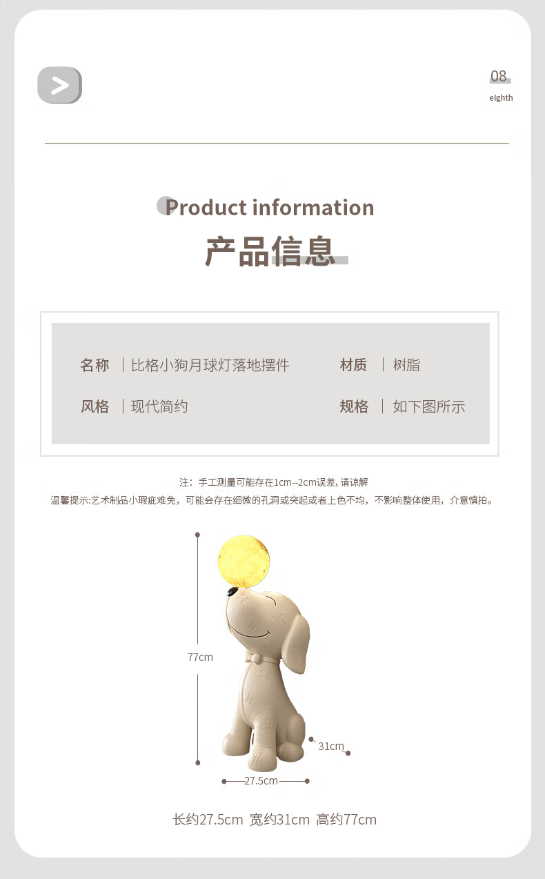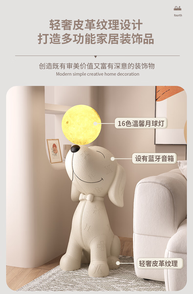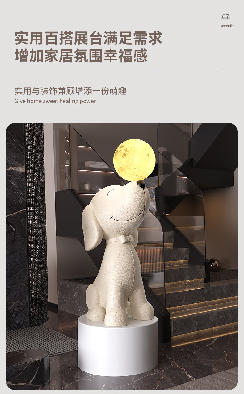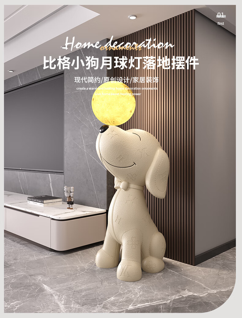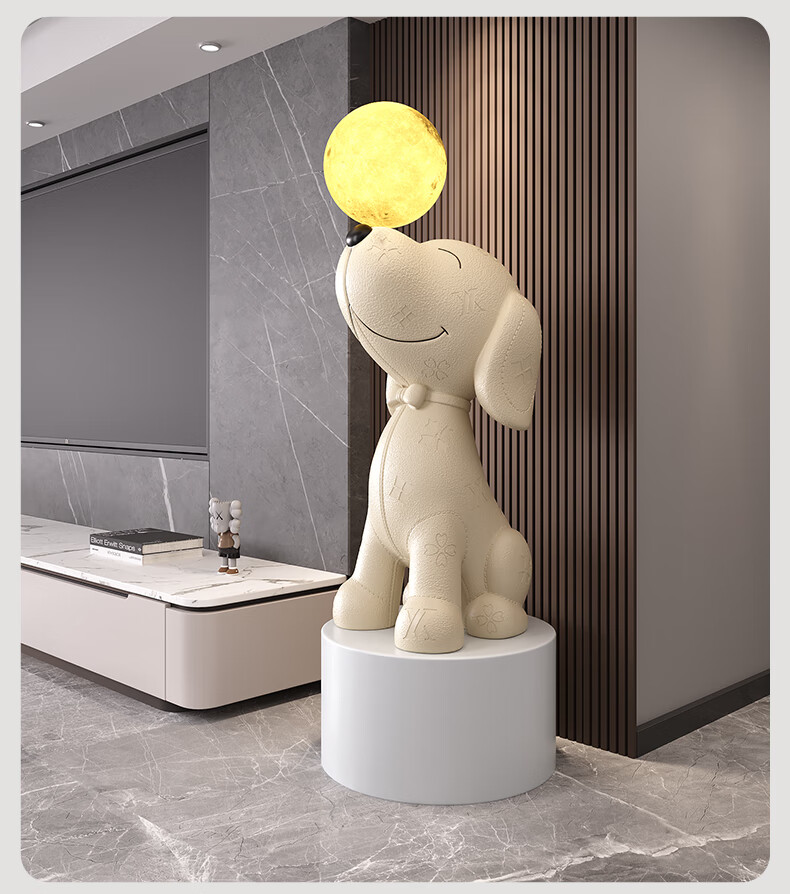 Chuxiang beagle floor-standing ornaments moon lamp piggy bank audio living room TV cabinet home accessories housewarming gifts leather-textured beagle floor-standing ornaments + white exhibition stand