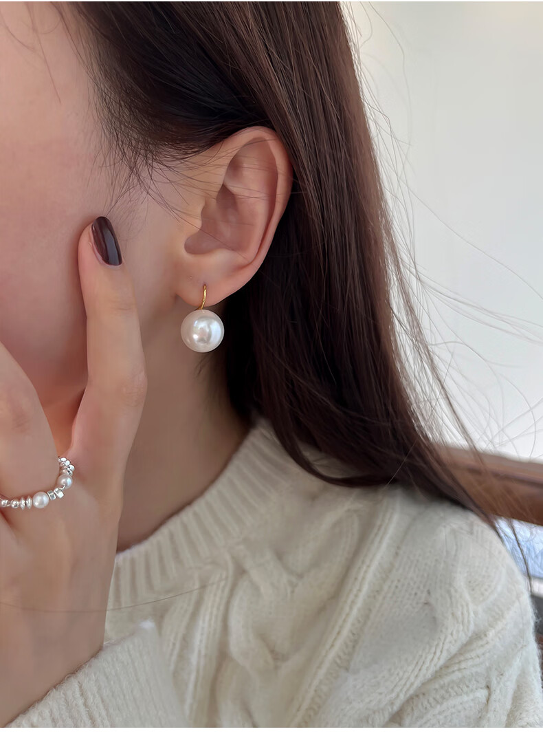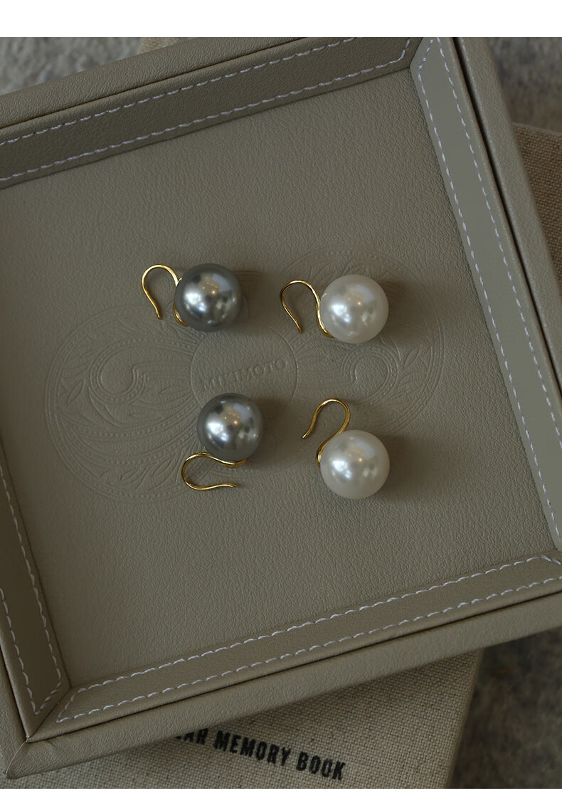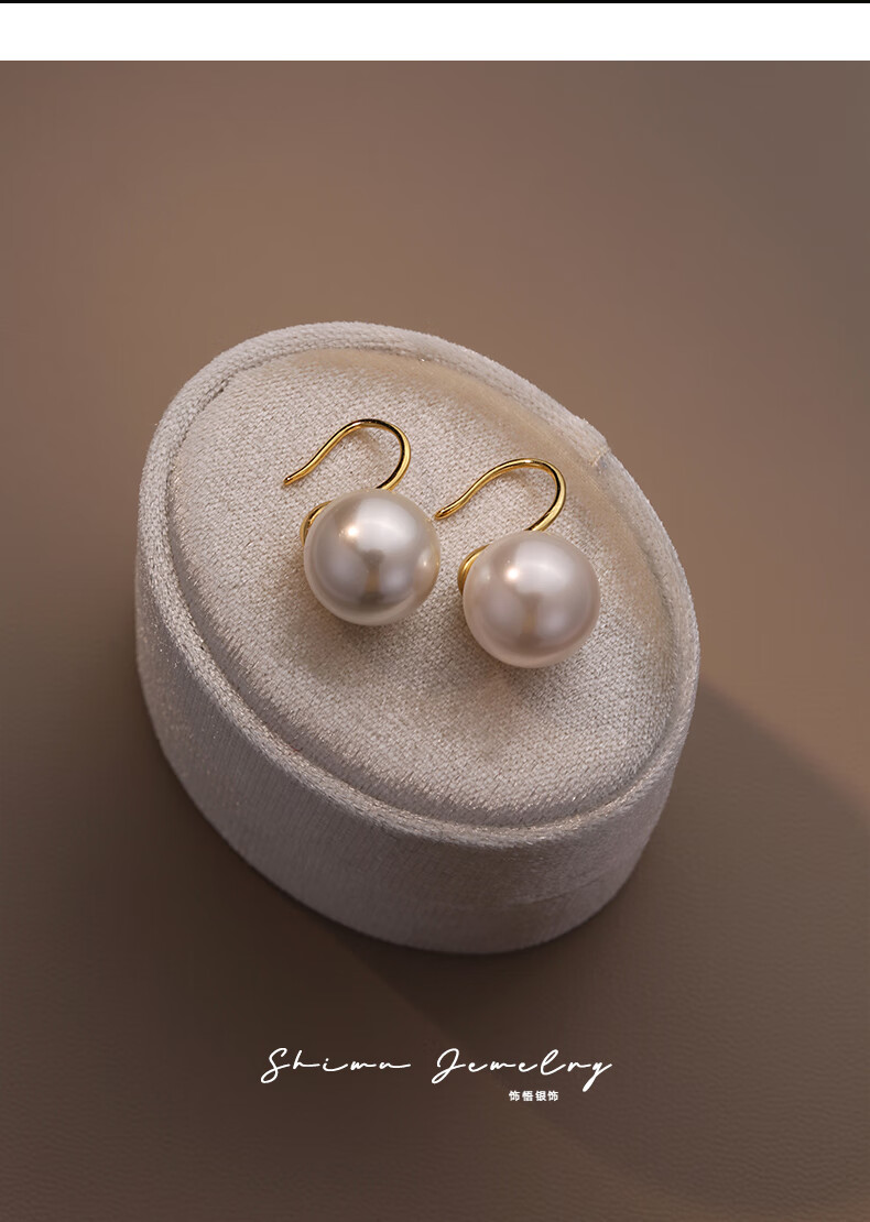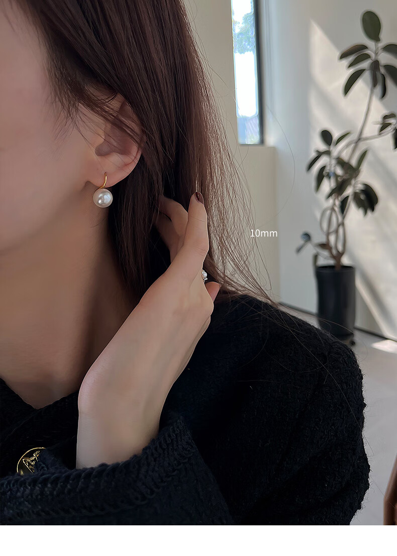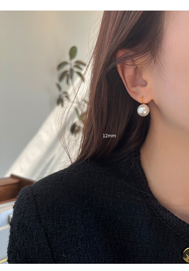 Fat Donglai same style freshwater pearl earrings 999 sterling silver earrings ear stud ear hook earrings high 10MM milky white pearls S999 pure silver plated 18K