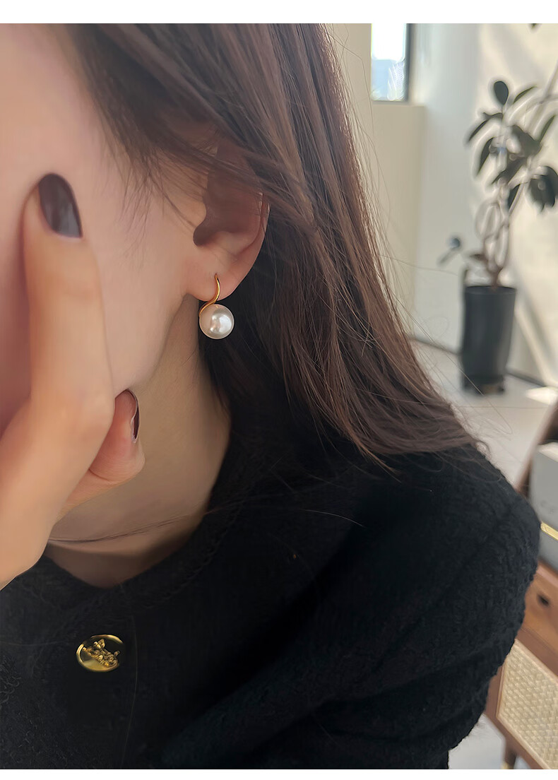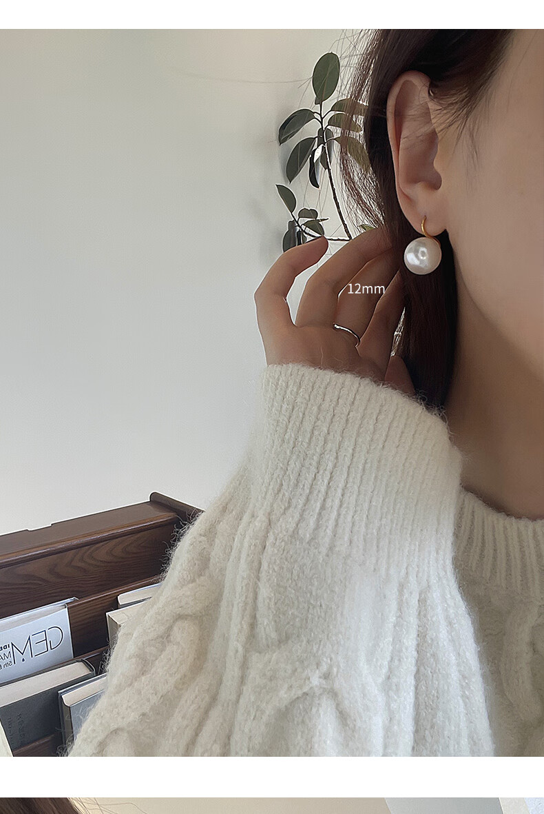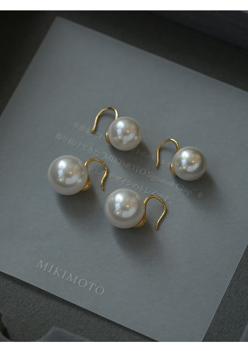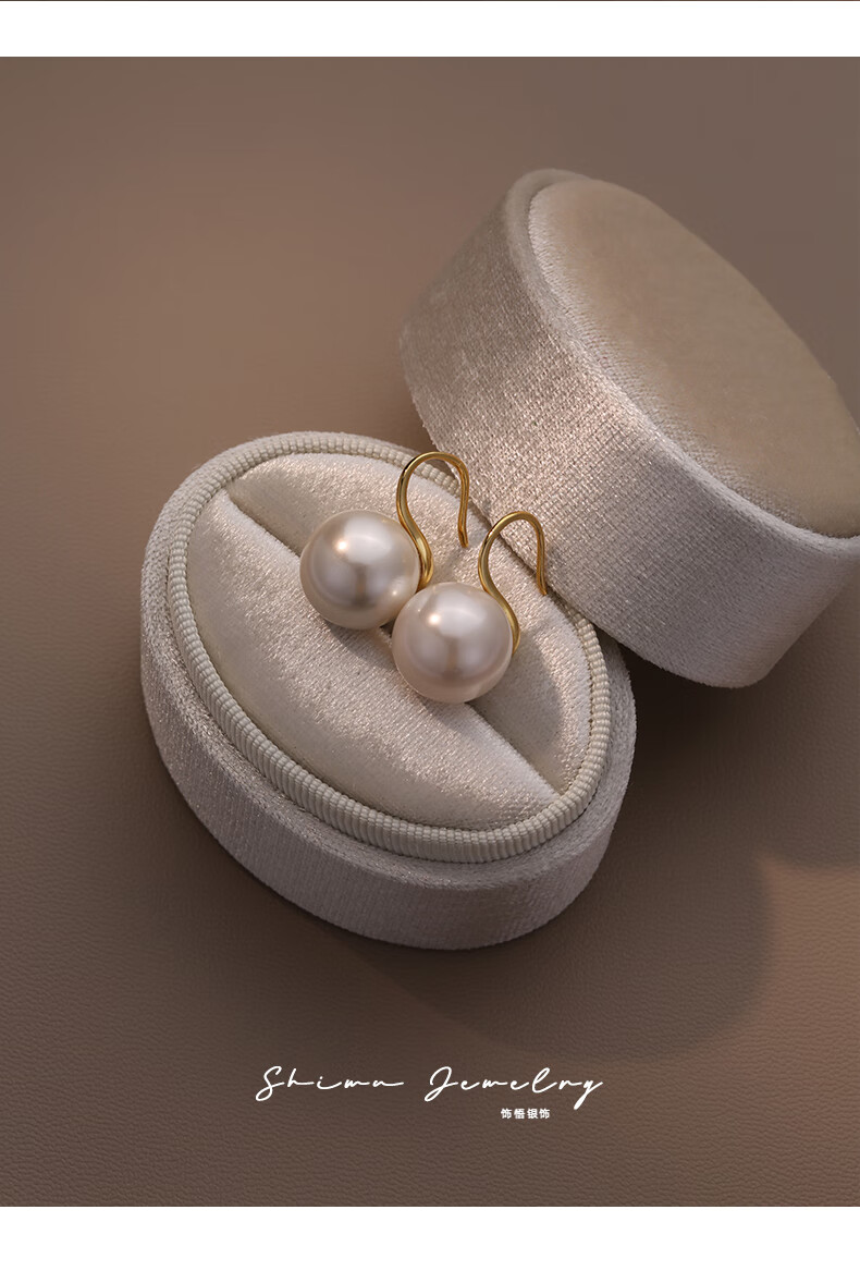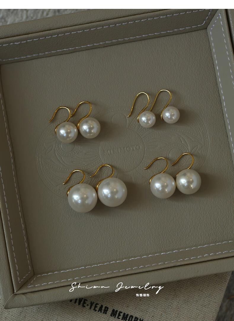 Fat Donglai same style freshwater pearl earrings 999 sterling silver earrings ear stud ear hook earrings high 10MM milky white pearls S999 pure silver plated 18K