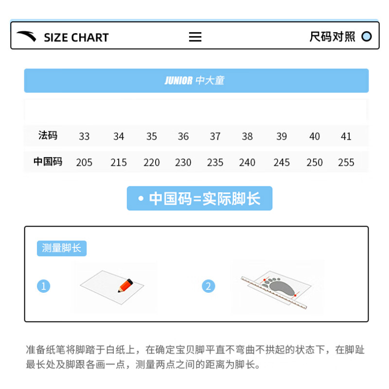 China (cm) 36 - 37 38 - 39 40 - 42 43 - 44 45 - 47