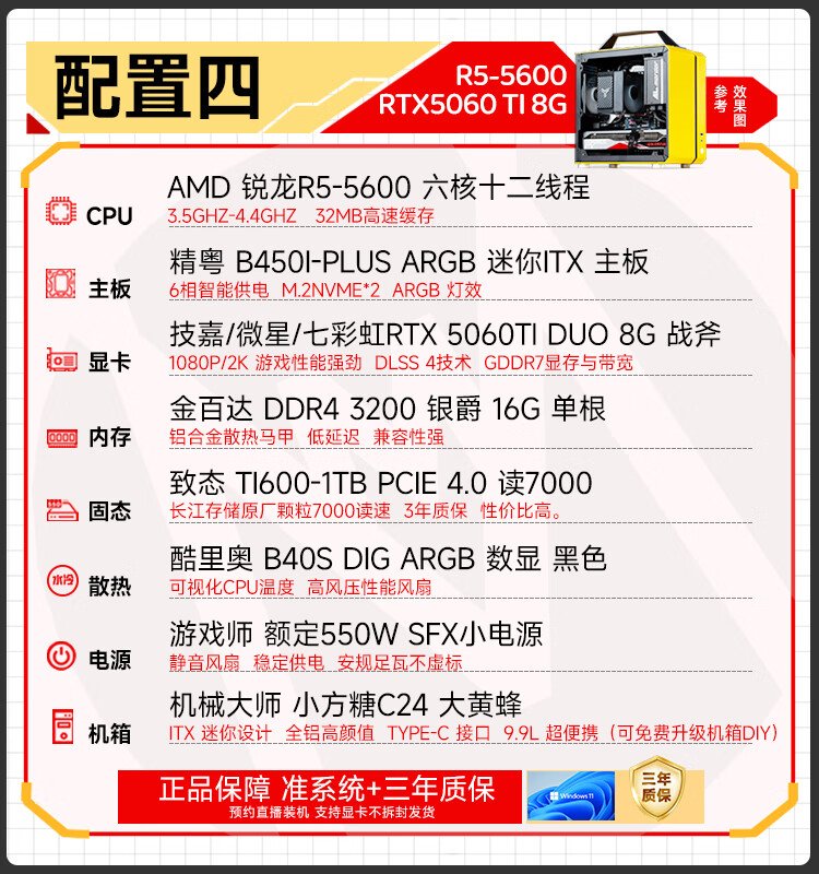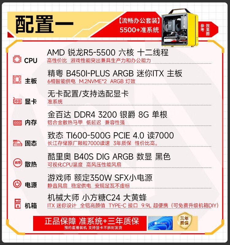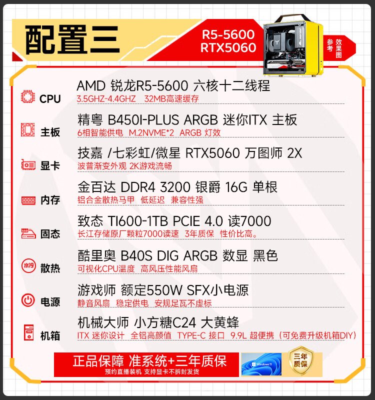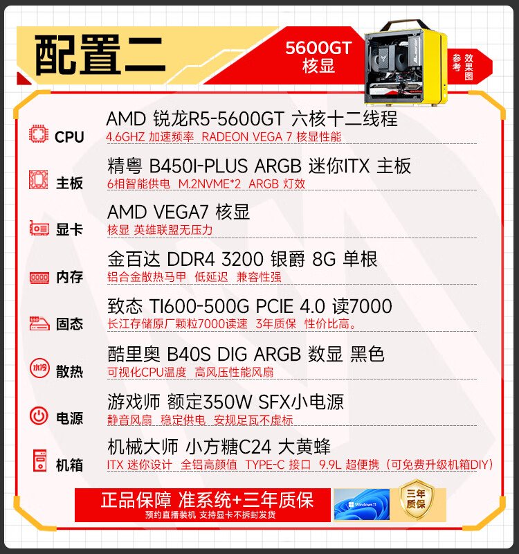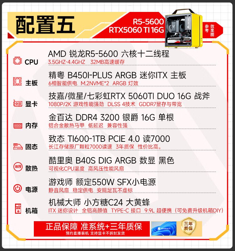 Sugar Cube Mechanical Master AMD R5 5500/5600GT/RTX5060/5060ti graphics card desktop black myth Wukong game e-sports office live broadcast portable small host configuration three丨5600丨RTX5060丨16G/1T