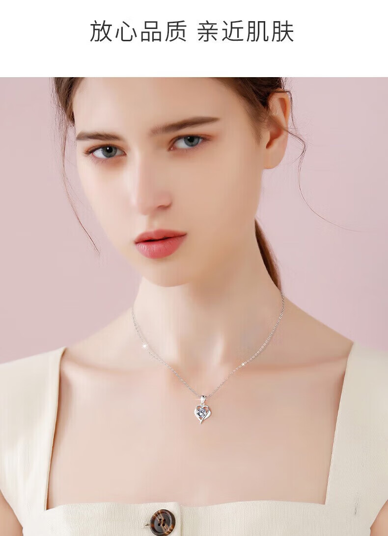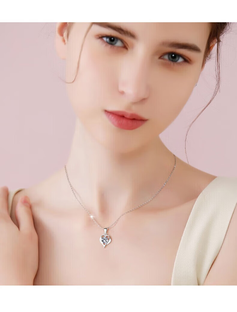 Dirholl Platinum Wholehearted Pendant Platinum Necklace PT950 Valentine's Day Birthday Gift for Girlfriend and Wife Platinum Wholehearted Necklace (Moissanite) Free Engraving - Greeting Card Writing - Exclusive Gift Box
