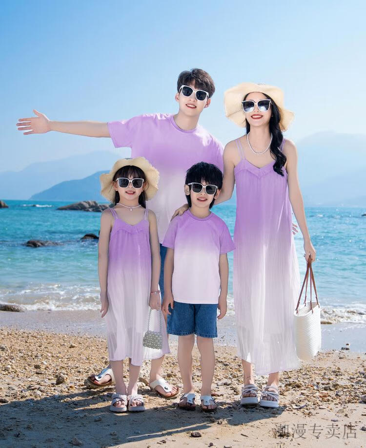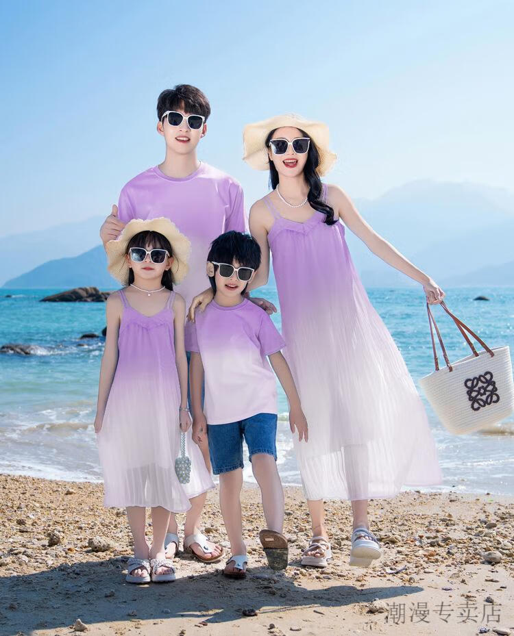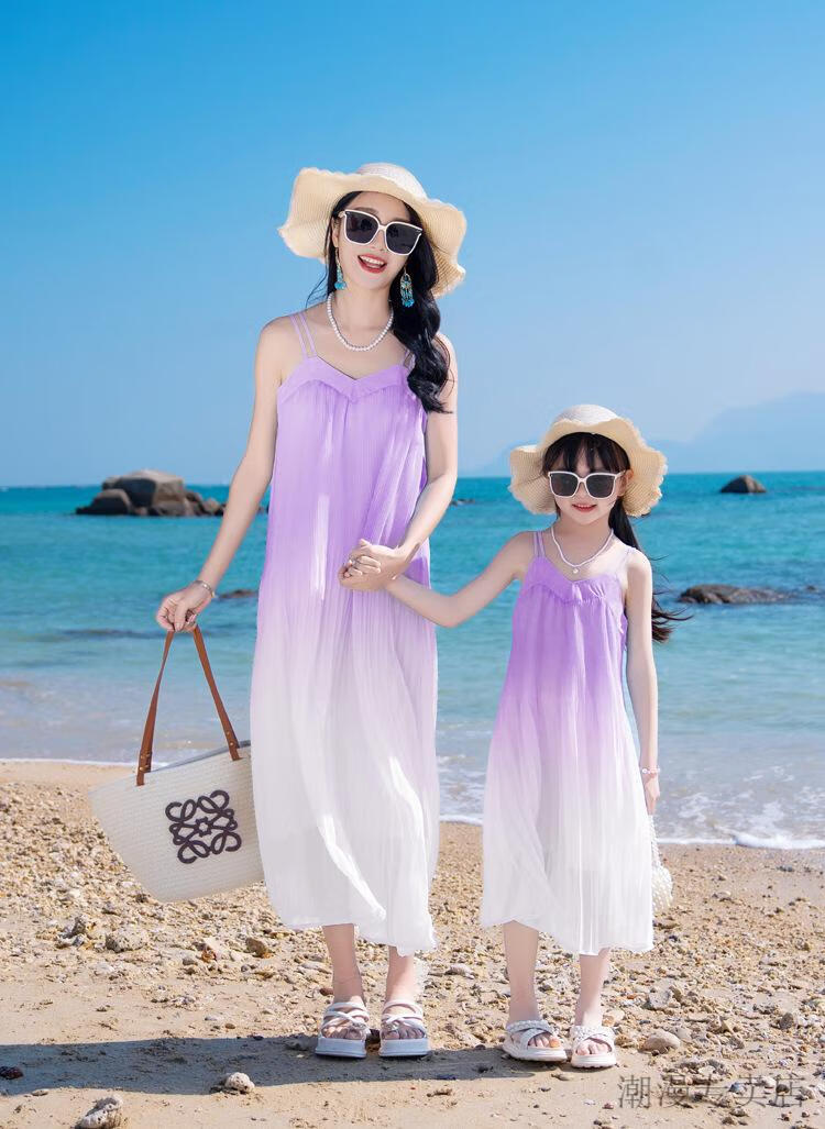 G.duck new parent-child wear Sanya beach seaside travel vacation wear gradient bohemian mother-daughter suspender dress lavender color (dress) 165 S
