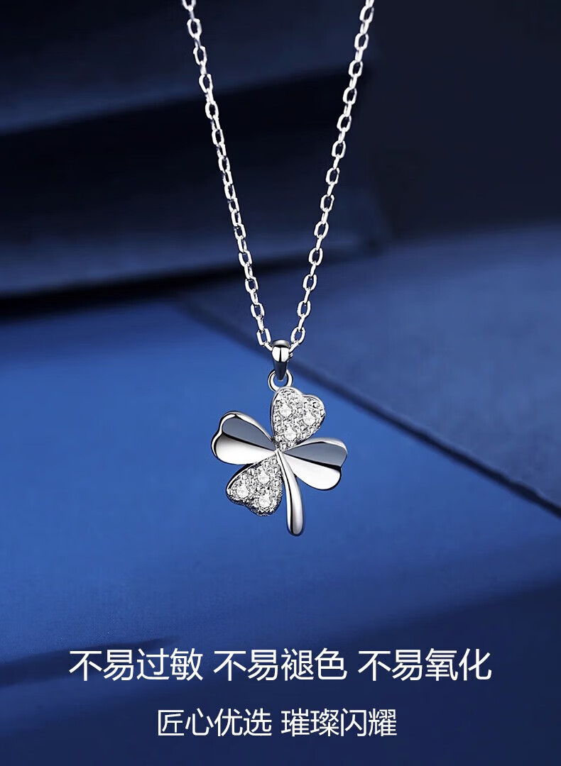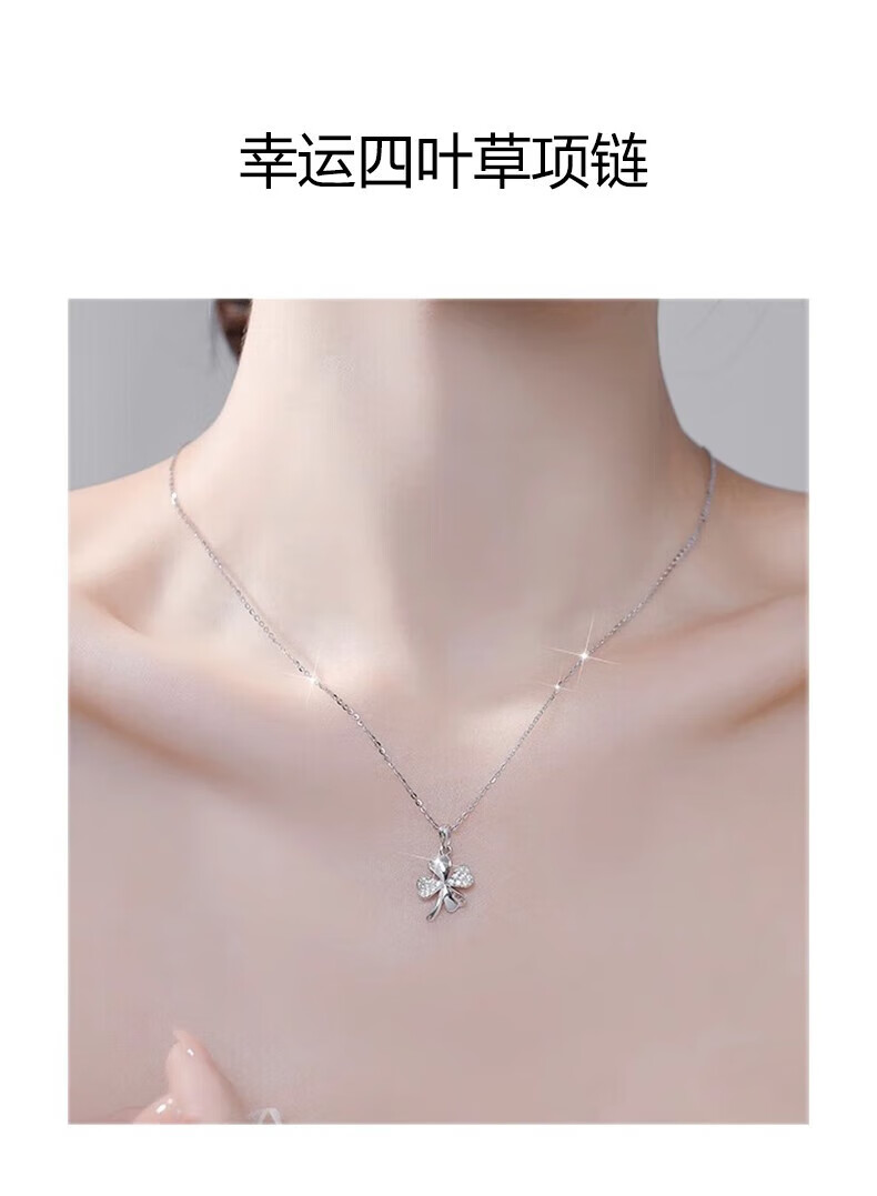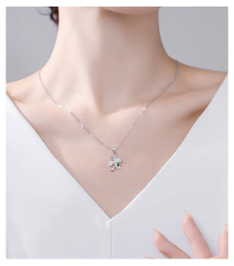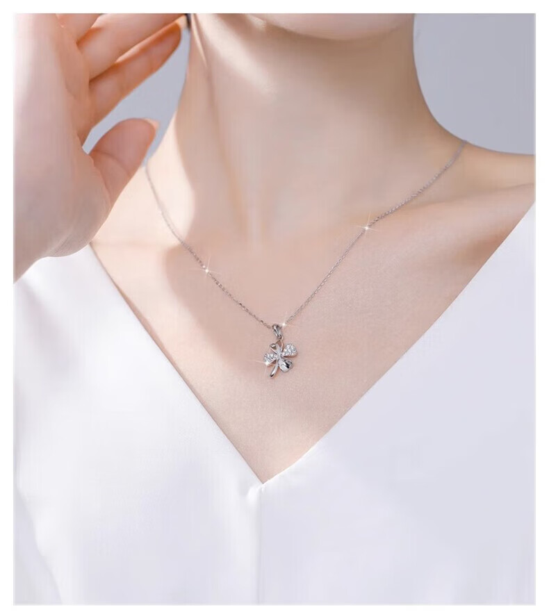 Dirholl platinum four-leaf clover necklace for women, fashionable clavicle chain, Valentine's Day birthday gift for girlfriend and wife, PT950 platinum necklace + four-leaf clover pendant, free engraving - ghostwriting greeting card - exclusive gift box