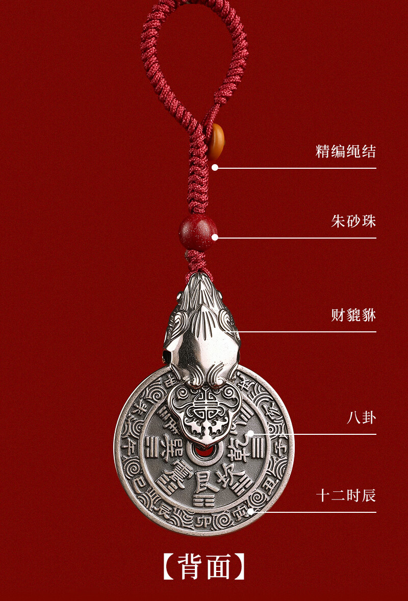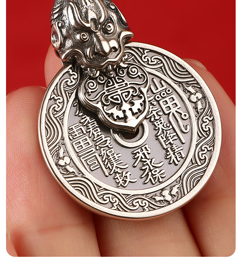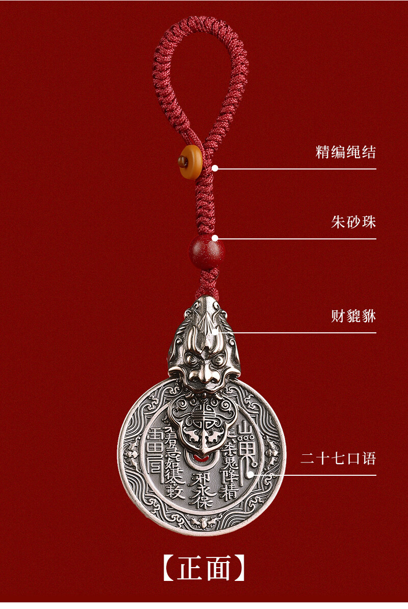 Jinshuitang Pixiu mountain ghost spends money pendant, birth year amulet pendant, silver necklace, birthday gift for boyfriend and husband, Pixiu attracts wealth, silver-plated mountain ghost spends money, pendant black rope