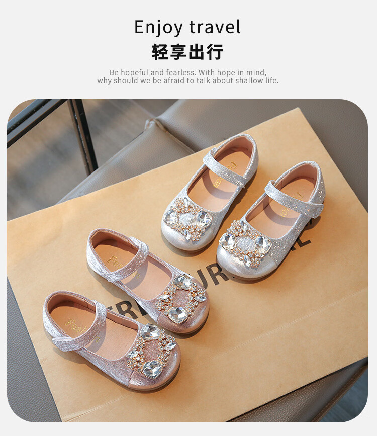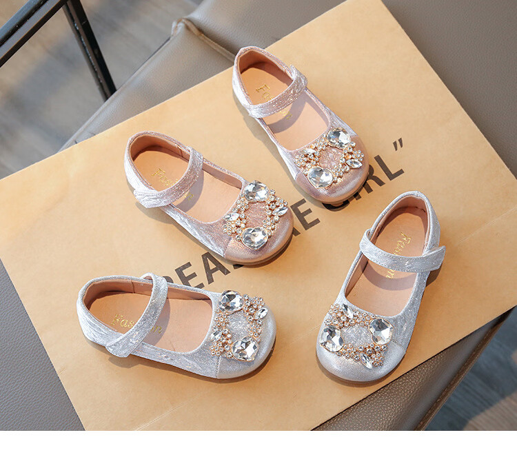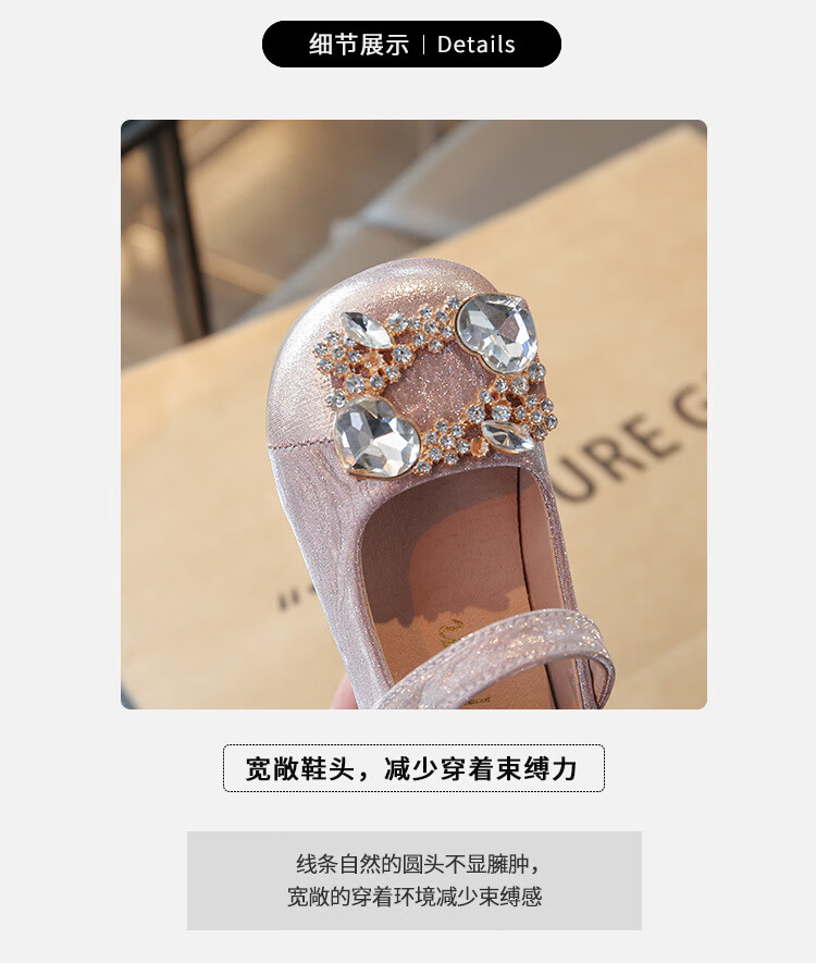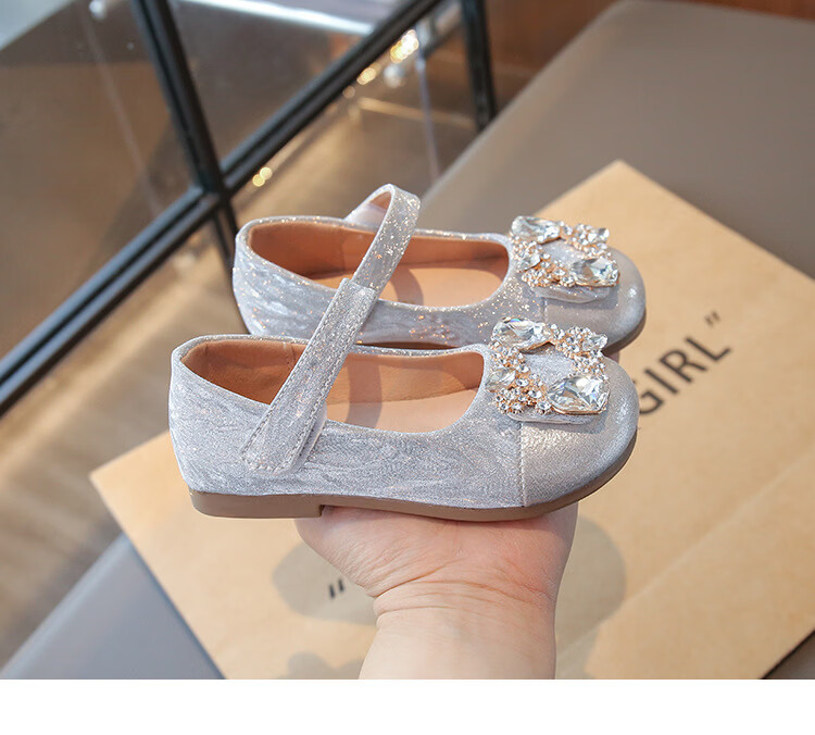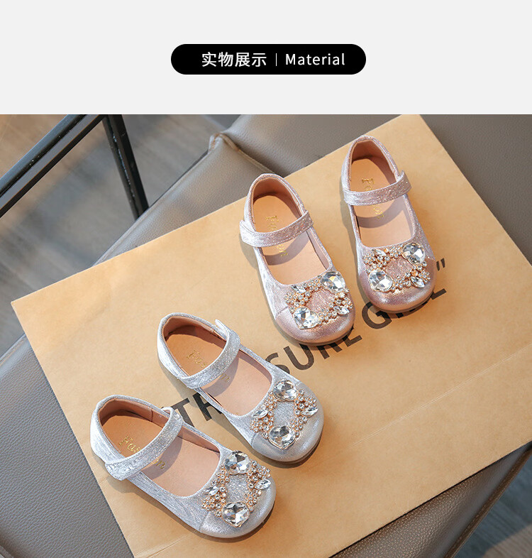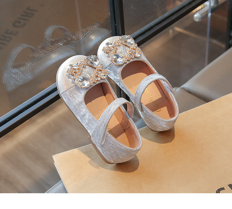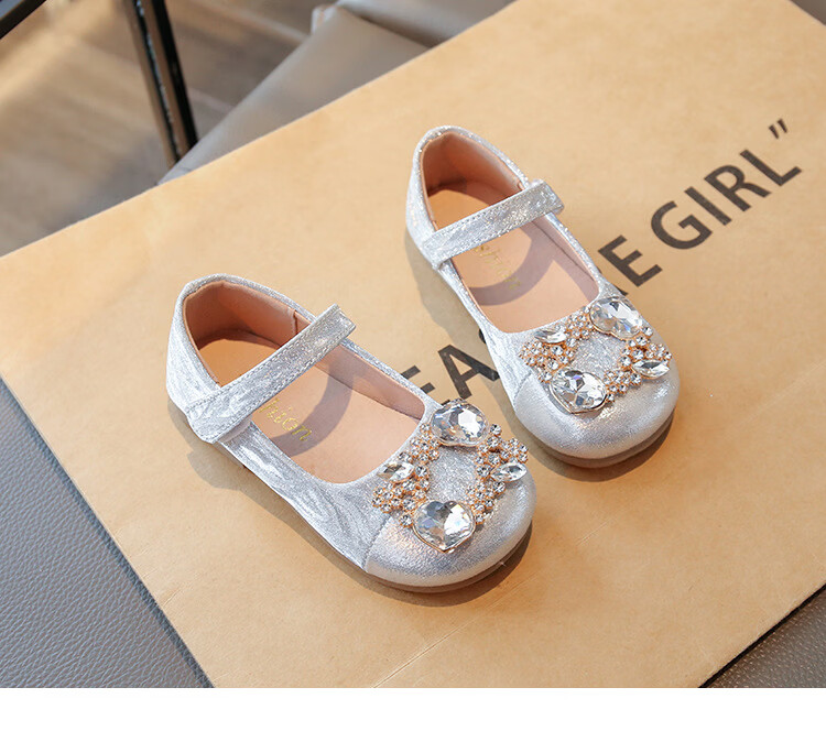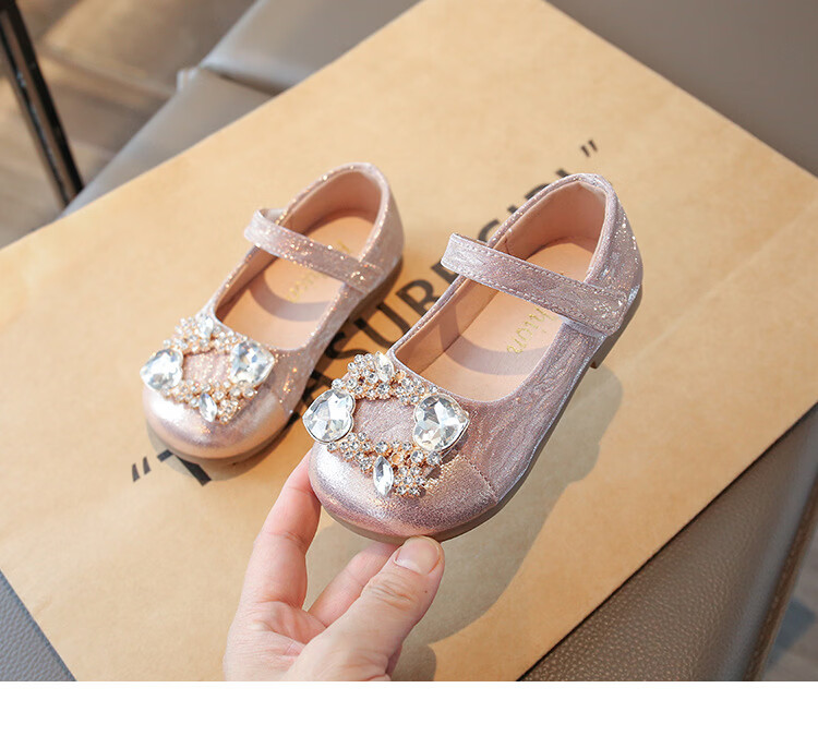 G.duck girls rhinestone princess shoes 2026 new spring and autumn little girls soft-soled small leather shoes children's performance crystal shoes champagne color 27 inner length about 16.8cm