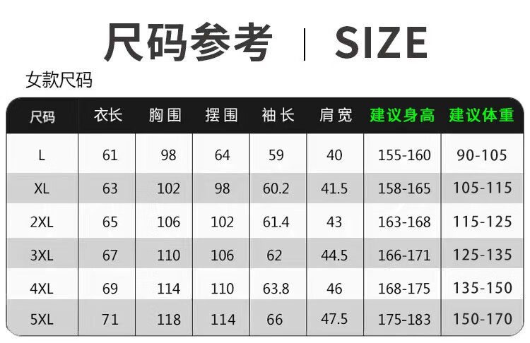 China (cm) 160-165/84-86 165-170 / 88-90 167-172 / 92-96 168-173 / 98-102 170-176 / 106-110