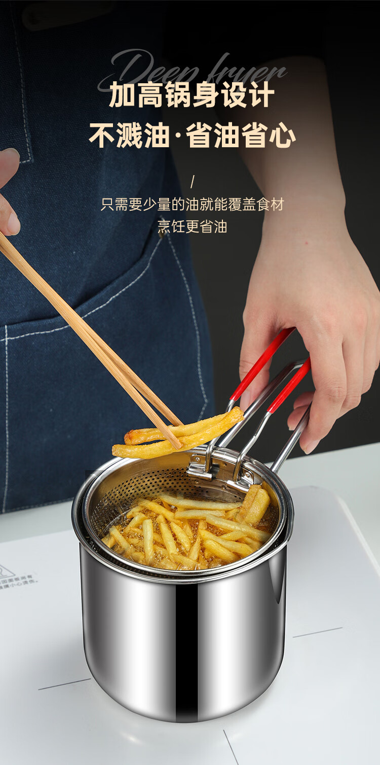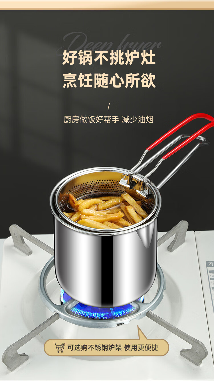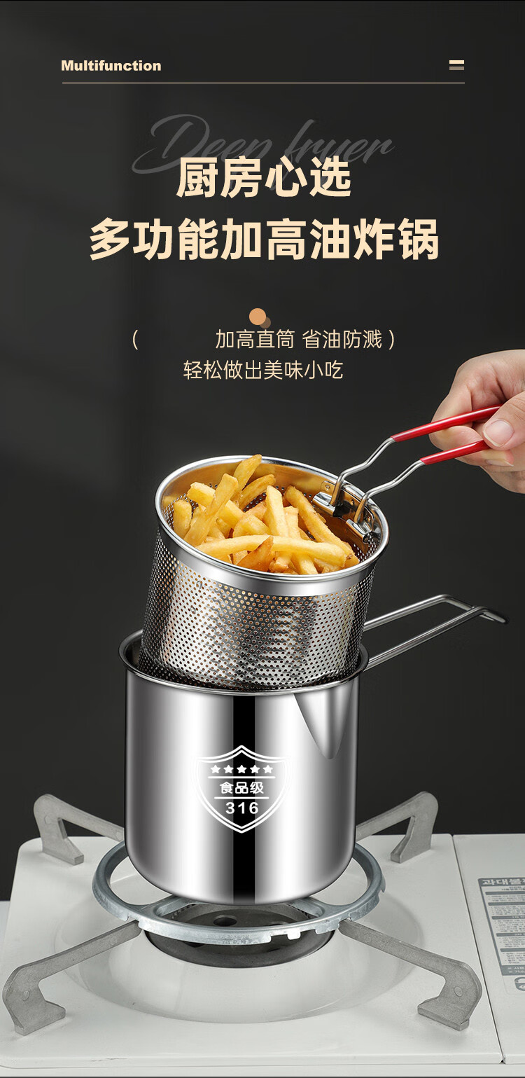 Tuojin German imported quality 316 stainless steel frying pan household small oil pan small frying skewers pot with filter induction cooker 316 stainless steel frying pan A + frying basket + 14cm