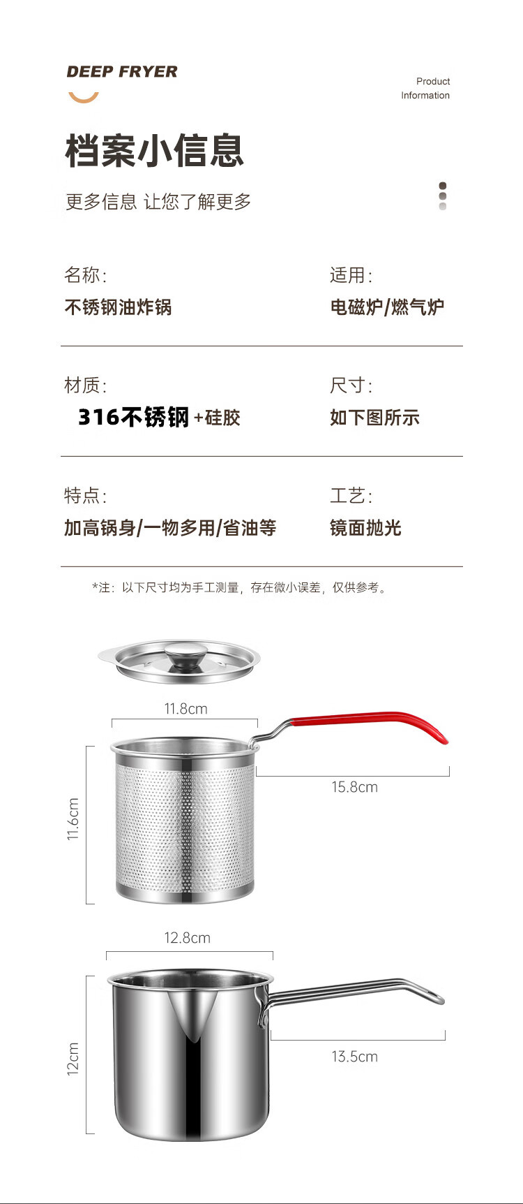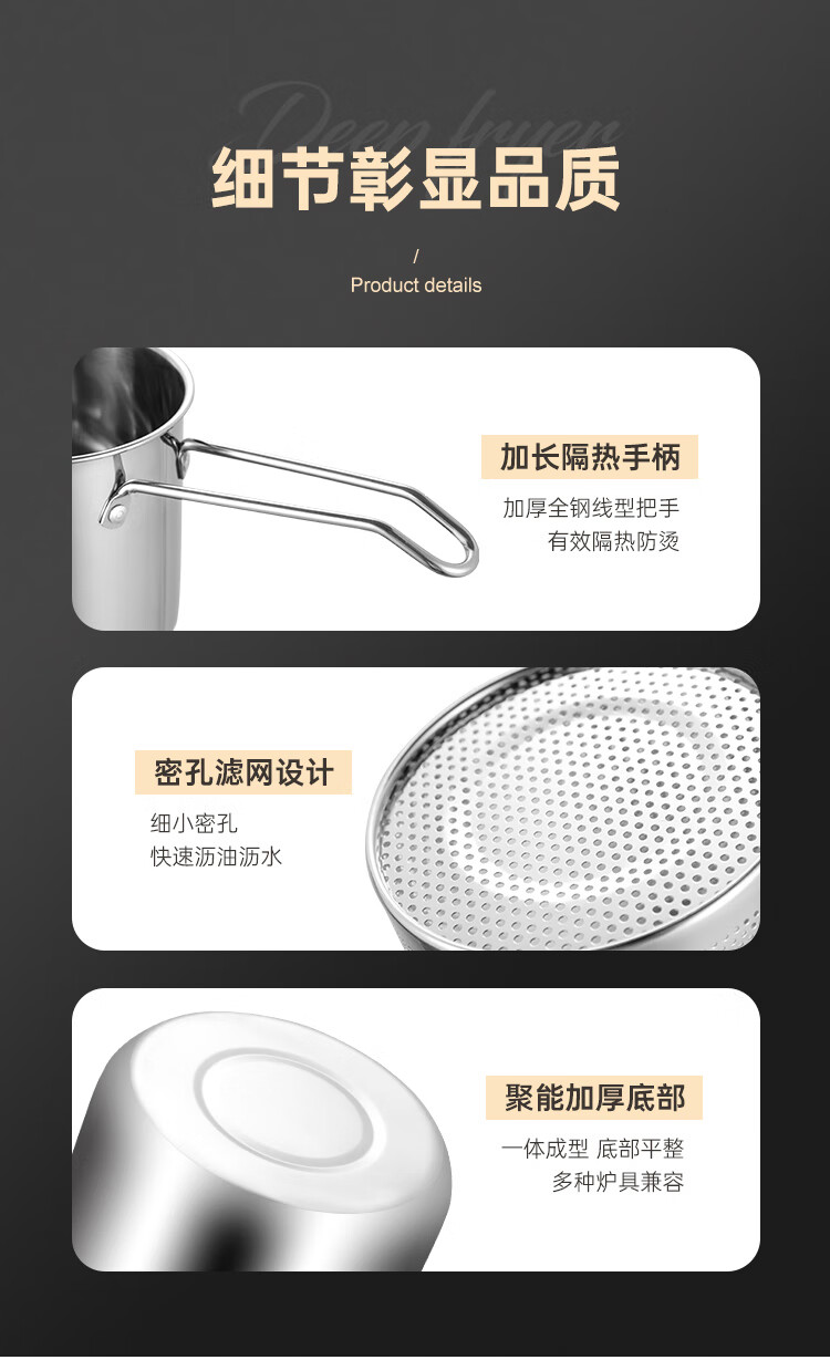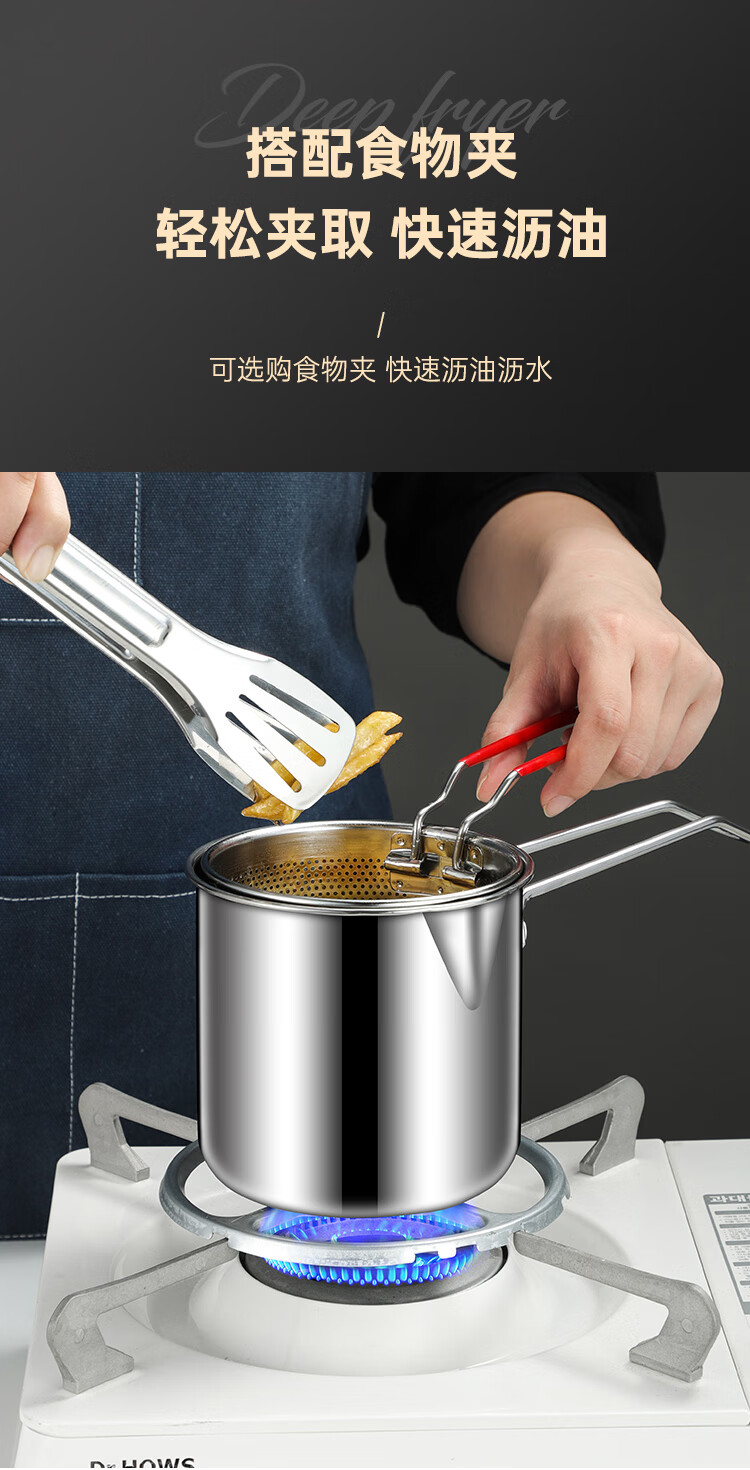 Tuojin German imported quality 316 stainless steel frying pan household small oil pan small frying skewers pot with filter induction cooker 316 stainless steel frying pan A + frying basket + 14cm