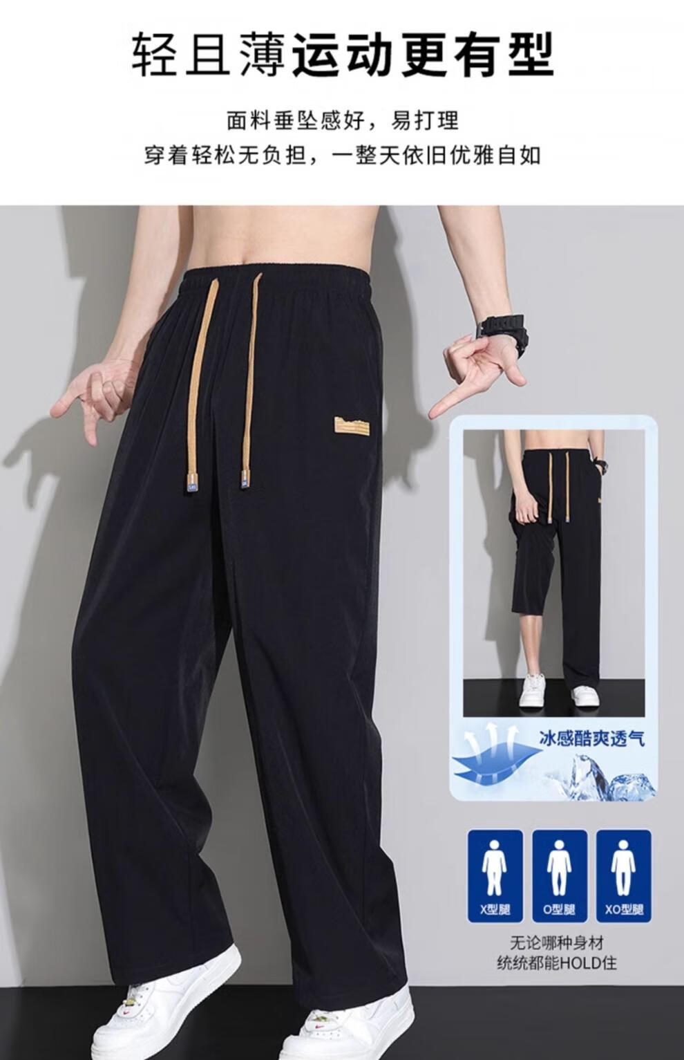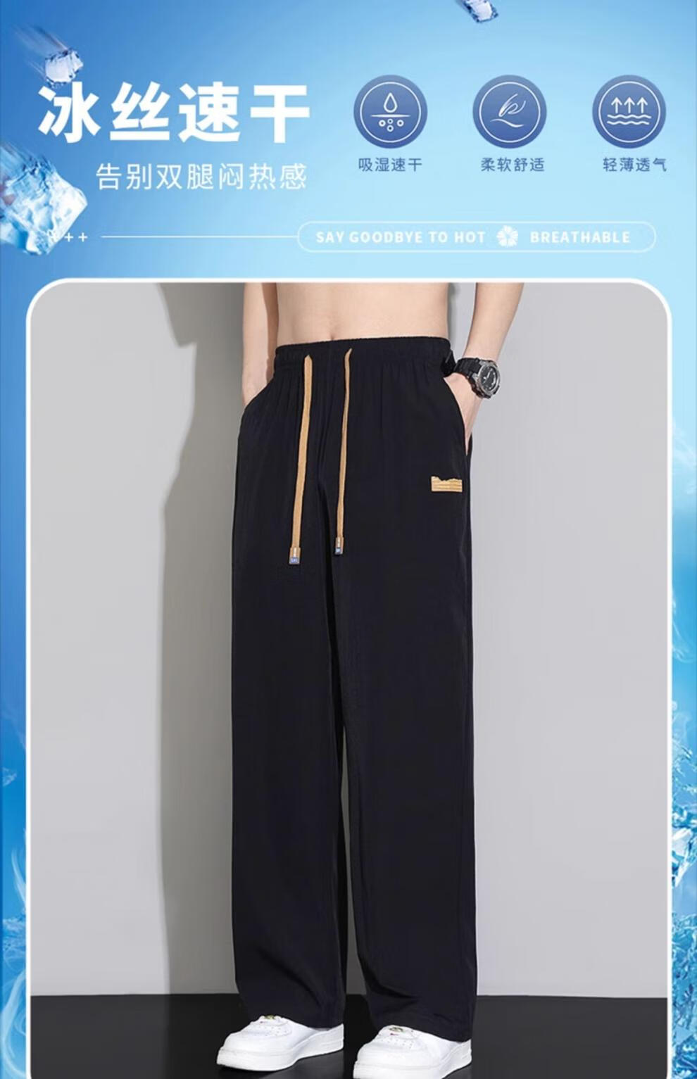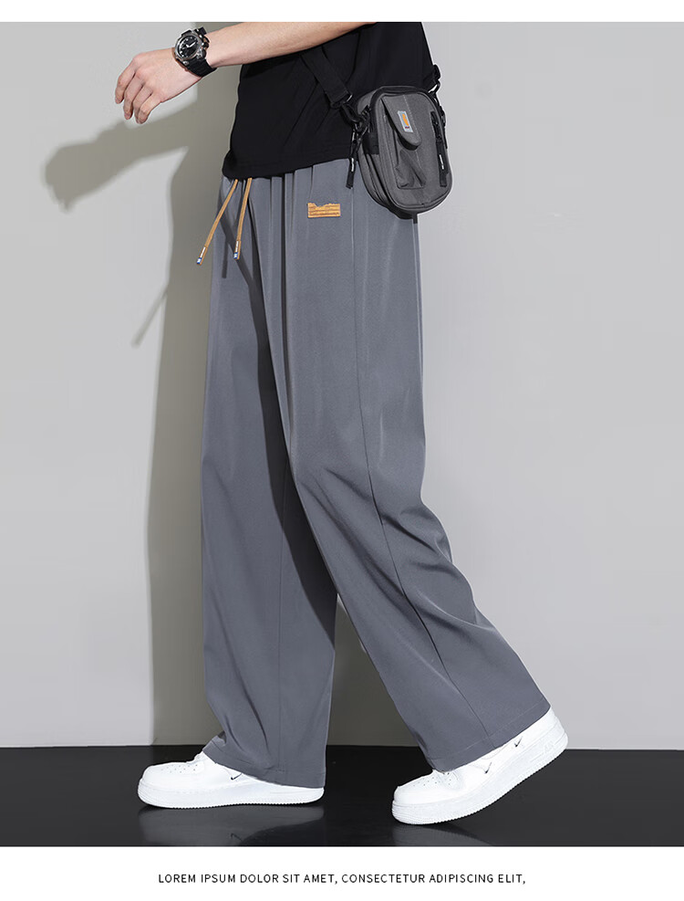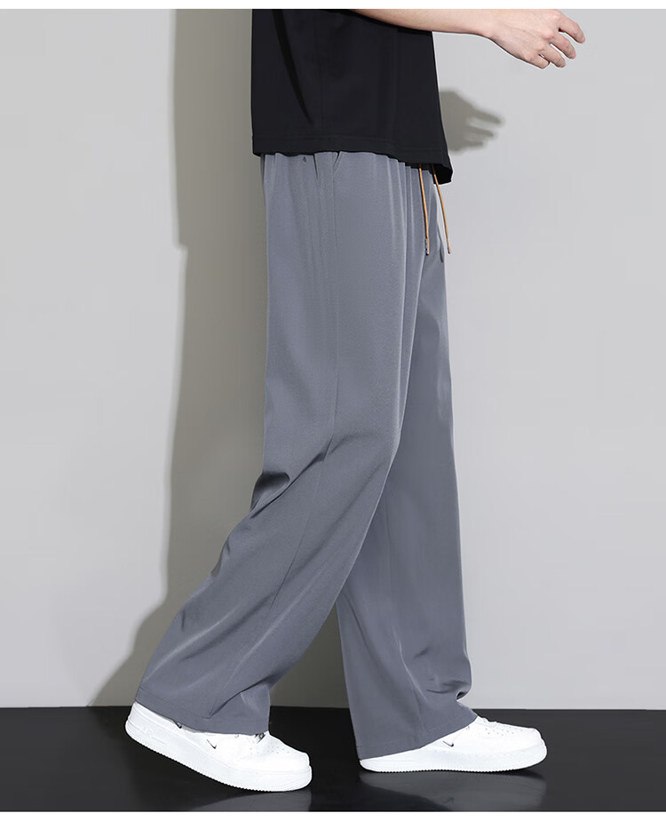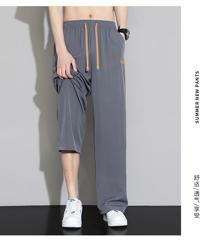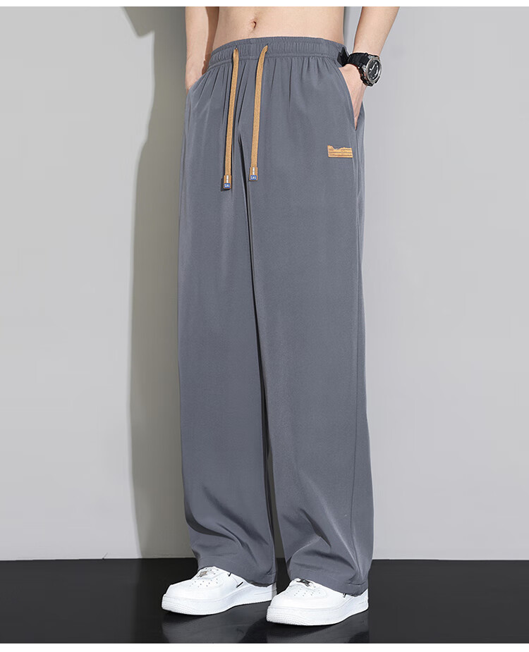 YISHion ice silk pants men's casual trousers 2025 new summer thin quick-drying loose straight wide-leg sports pants 29056 dark gray legged summer thin section 4XL