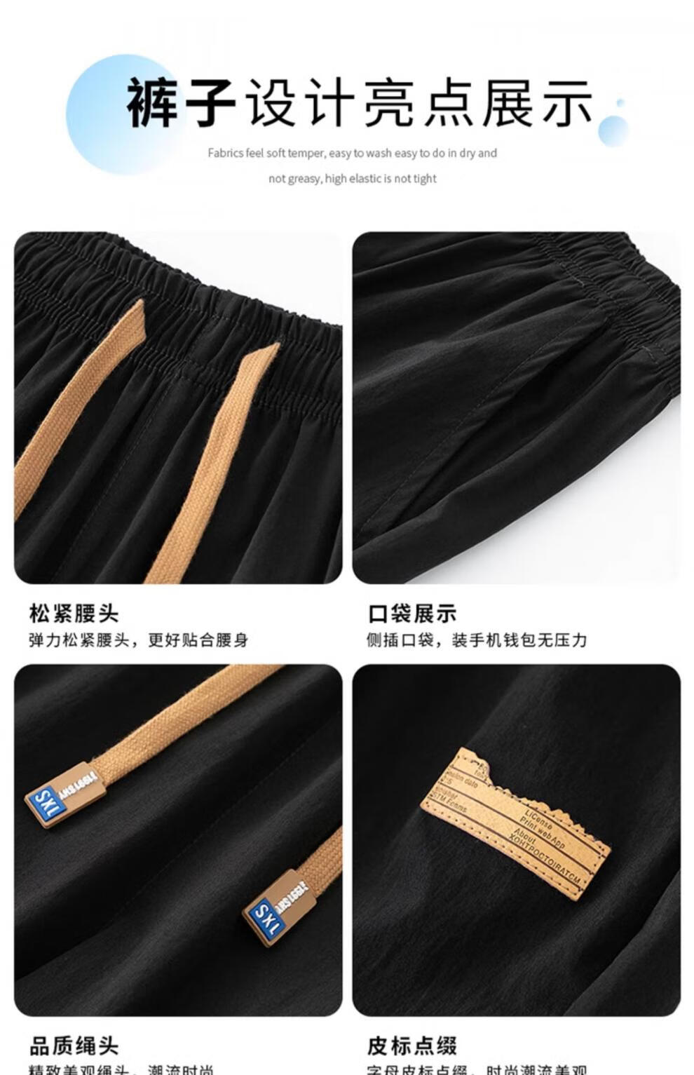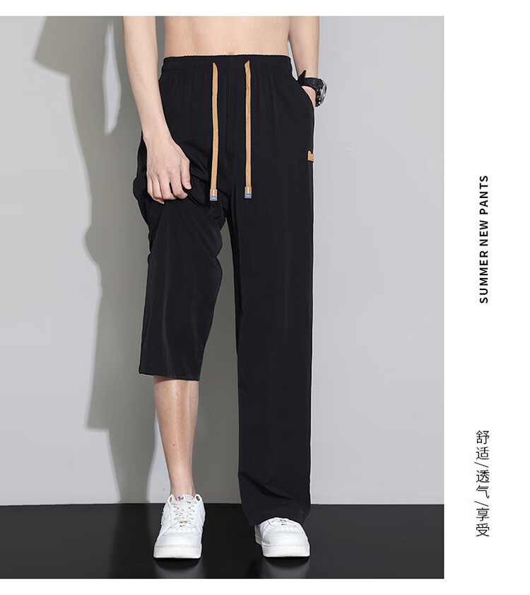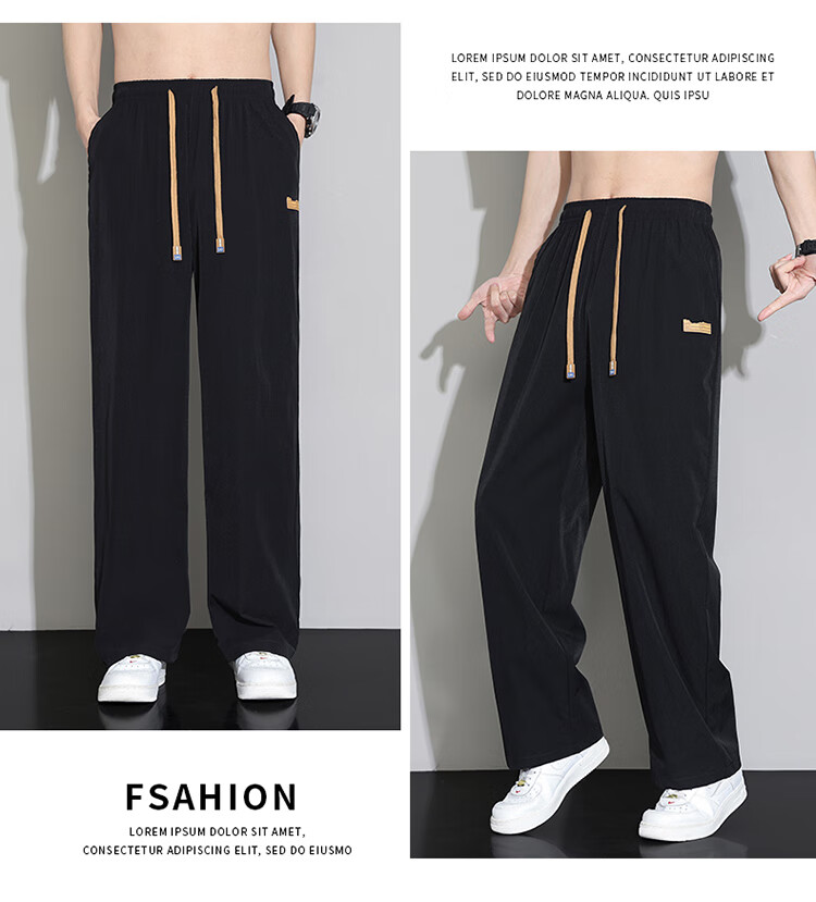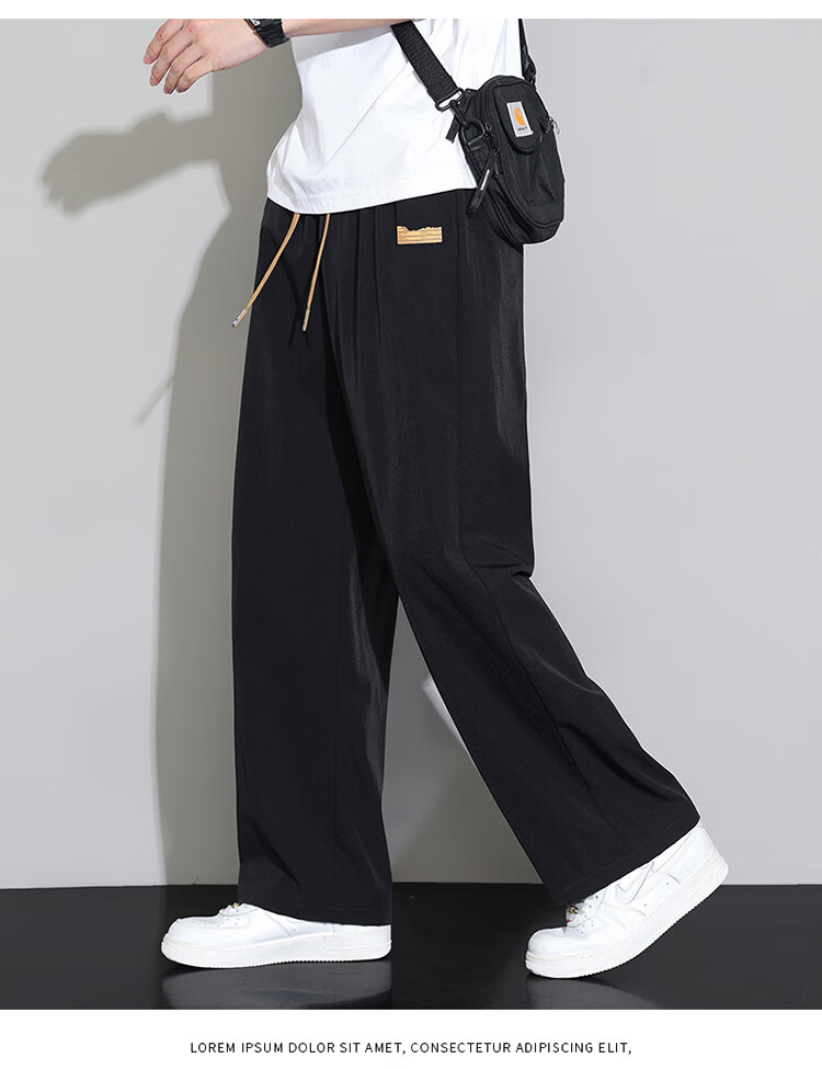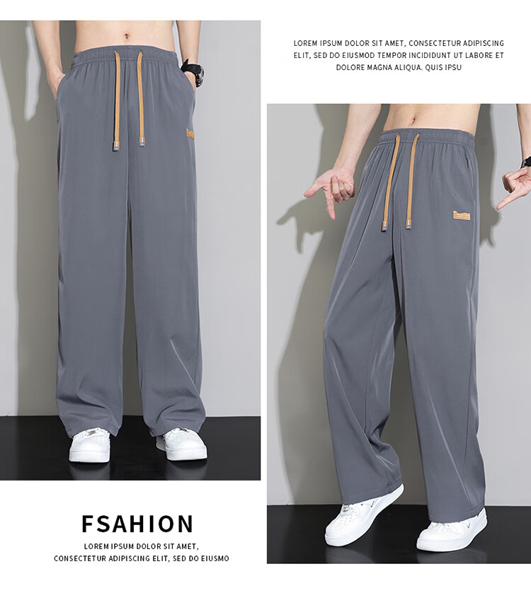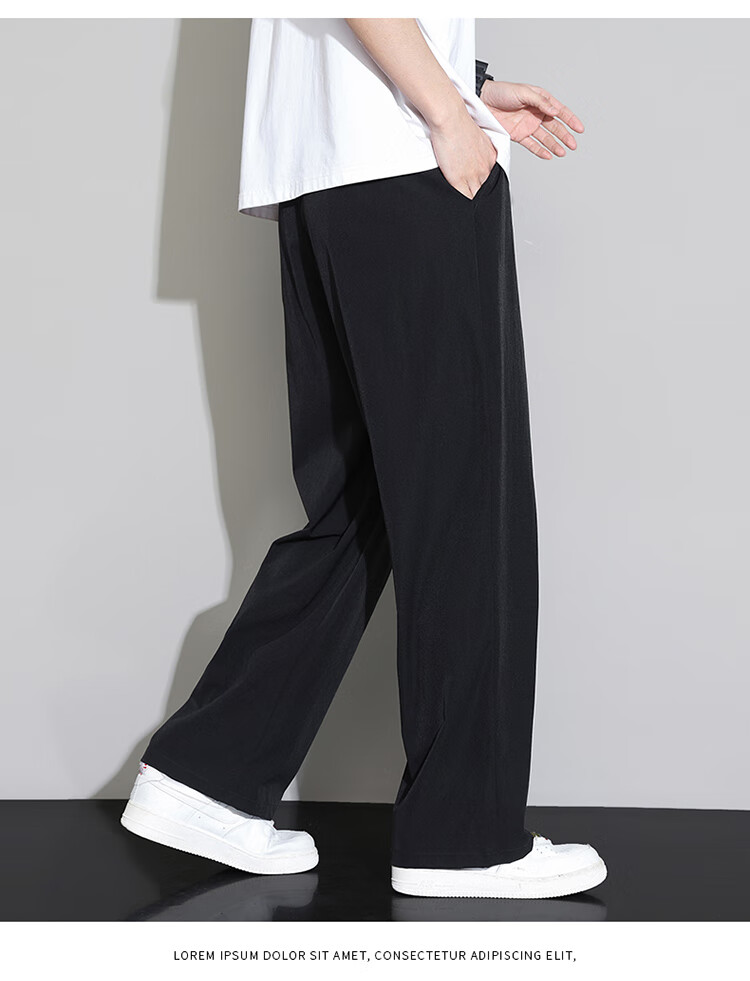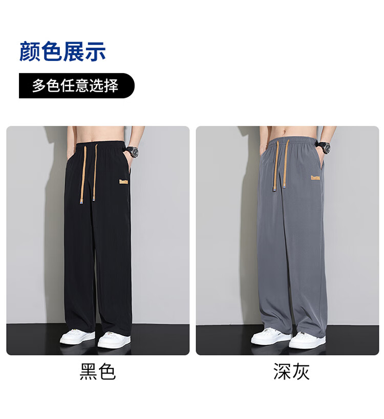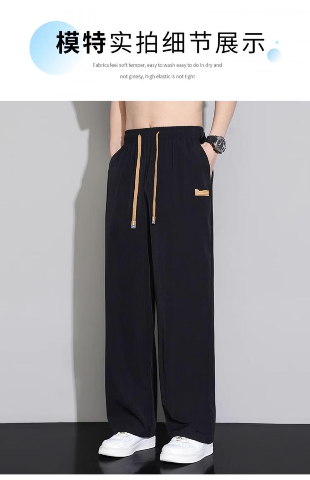YISHion ice silk pants men's casual trousers 2025 new summer thin quick-drying loose straight wide-leg sports pants 29056 dark gray legged summer thin section 4XL