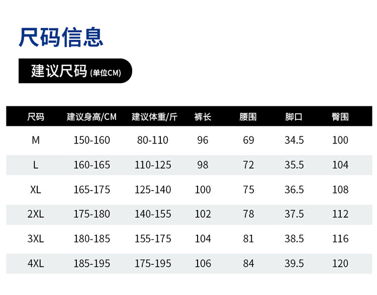 Outseam (cm) 99 cm 101.5 cm 104 cm 106.5 cm 109 cm