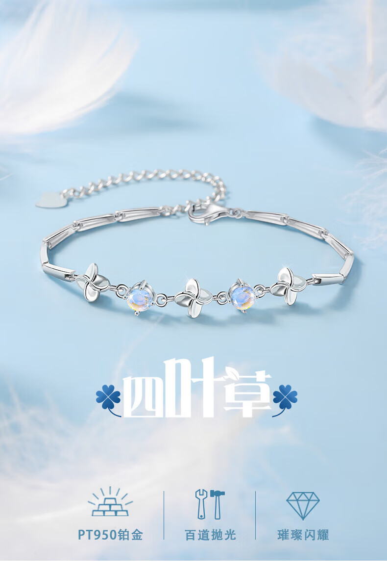 Dirholl four-leaf clover platinum bracelet PT950 platinum bracelet, fashionable and simple, gift for girlfriend on birthday and Valentine's Day, premium model-four-leaf clover bracelet, can be engraved
