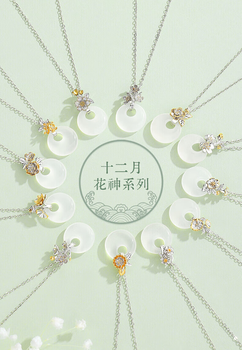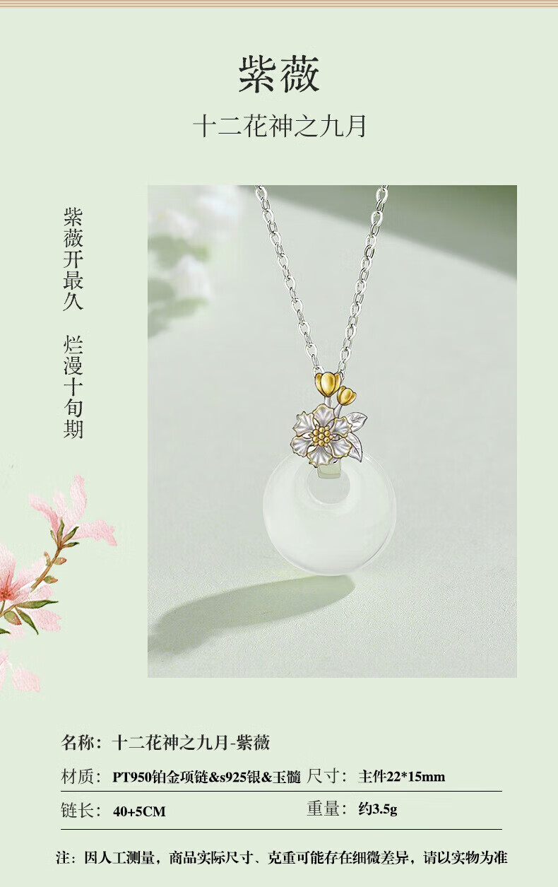 Dirholl Twelve Peanuts Platinum Necklace for Women PT950 Fashionable and Versatile Clavicle Chain Birthday Gift for Wife and Girlfriend June Lotus Pendant & PT950 Platinum Necklace Free Engraving - Greeting Card Writing - Exclusive Gift Box
