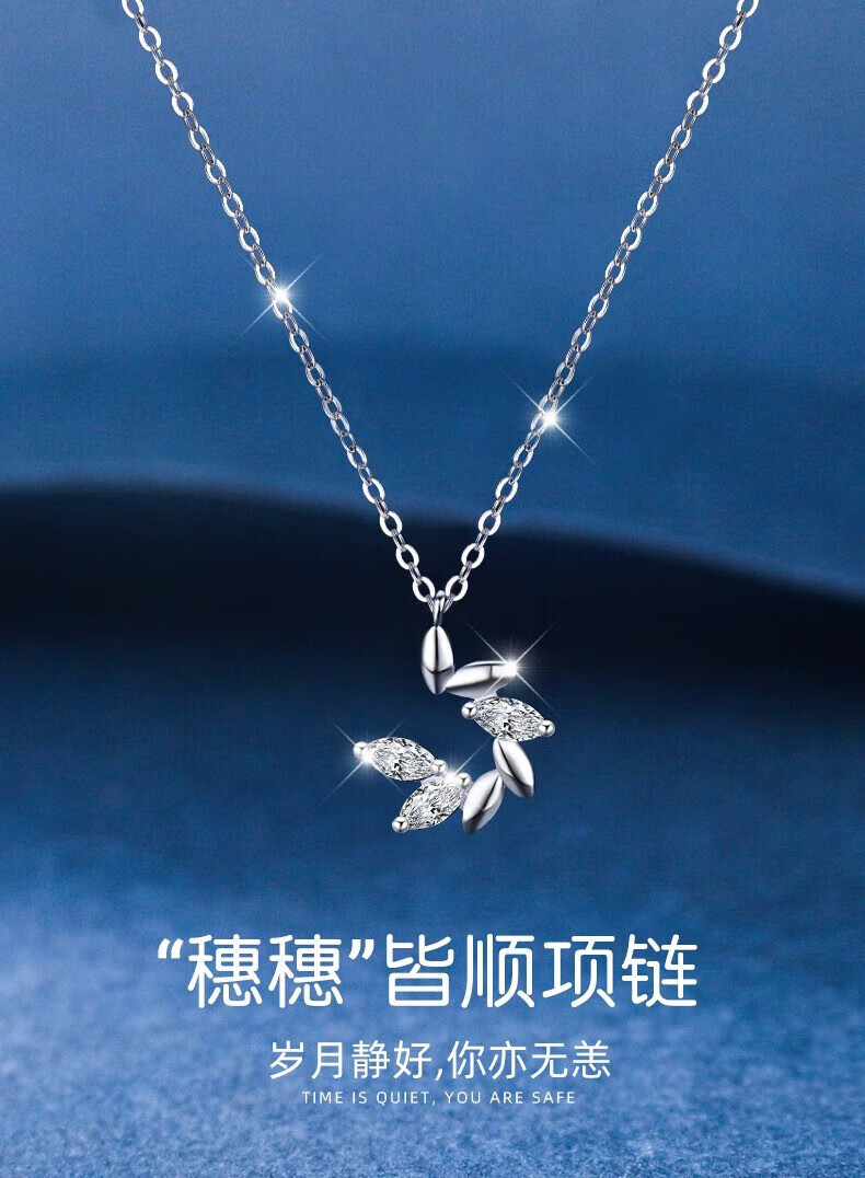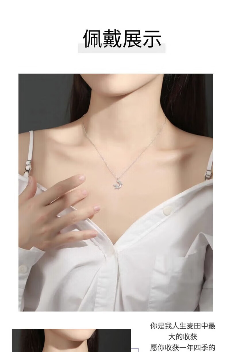 Dirholl Wheat Ear Platinum Necklace Women's Fashion Versatile Clavicle Chain Valentine's Day Birthday Gift for Wife and Girlfriend PT950 Platinum Necklace + Wheat Ear Pendant Free Engraving - Ghostwriting Greeting Cards - Exclusive Gift Box