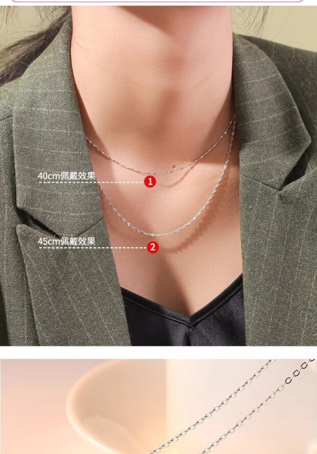 PT950 platinum necklace for women, platinum clavicle chain, long and short, thin 18k necklace, versatile plain chain, gift for girlfriend, light luxury gold ingot chain, length 50cm