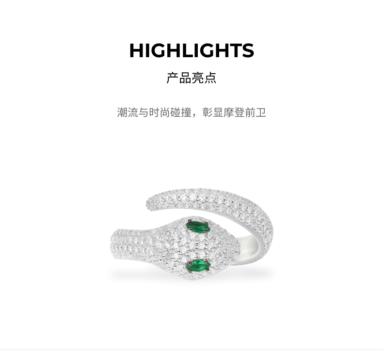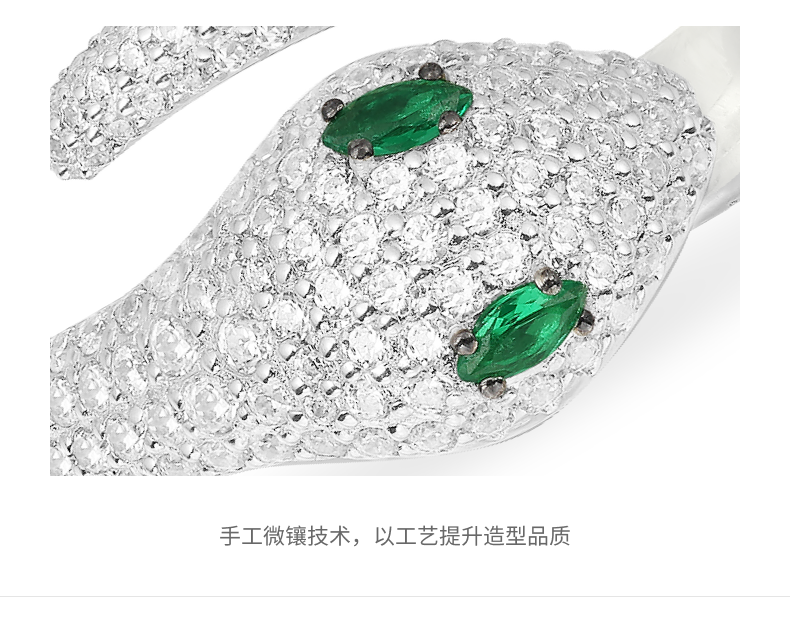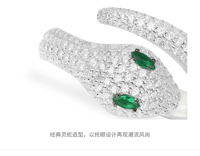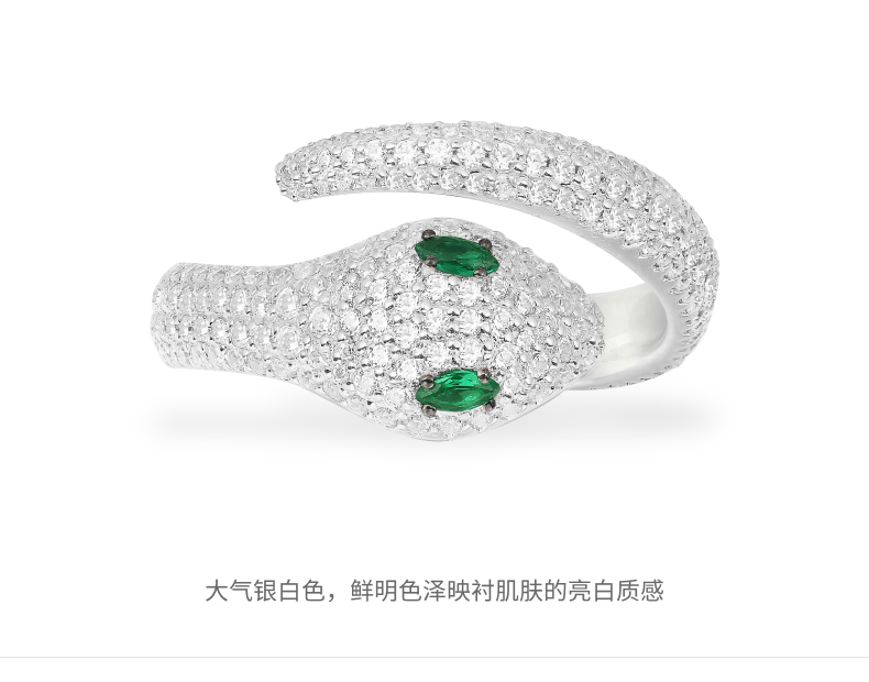 Apm green-eyed snake open silver ring female snake-shaped index finger jewelry birthday gift for girlfriend green-eyed snake size 52