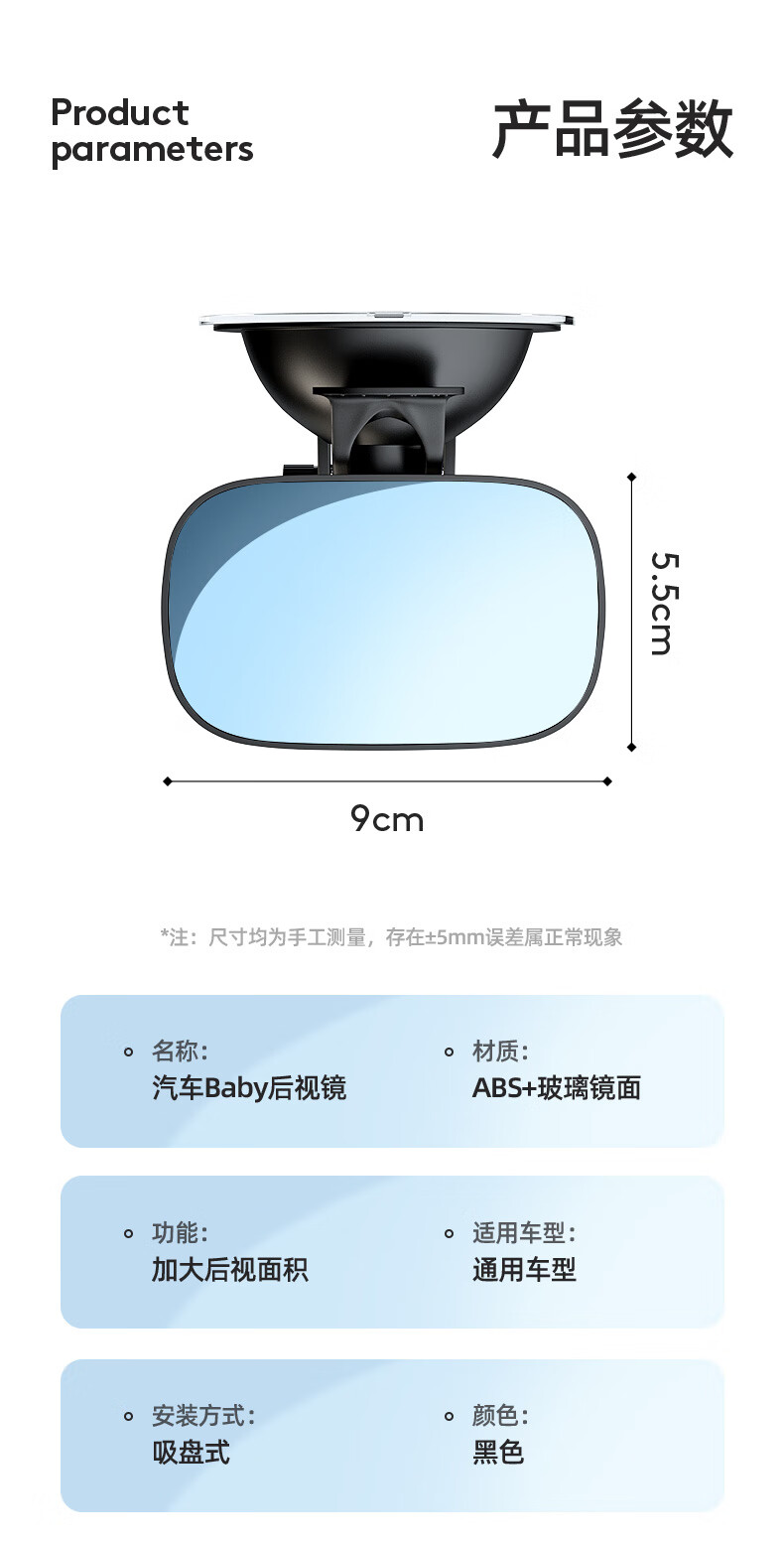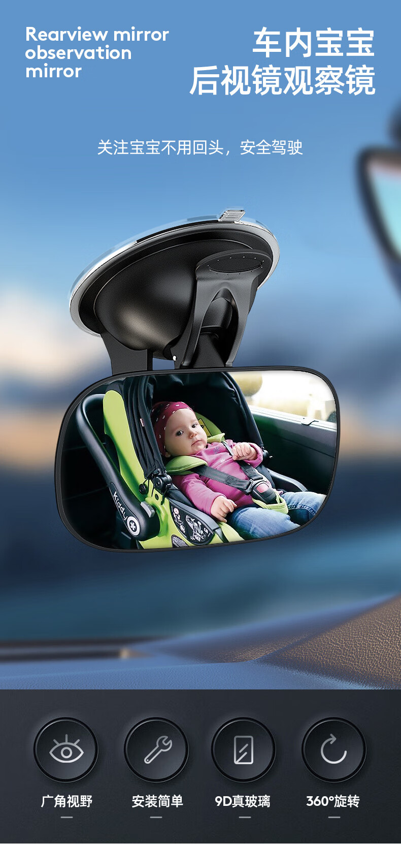 Zuimi German imported quality car large field of view rearview mirror car interior reflector reversing mirror auxiliary universal wide-angle curved surface large field of view * baby observation mirror suction cup model