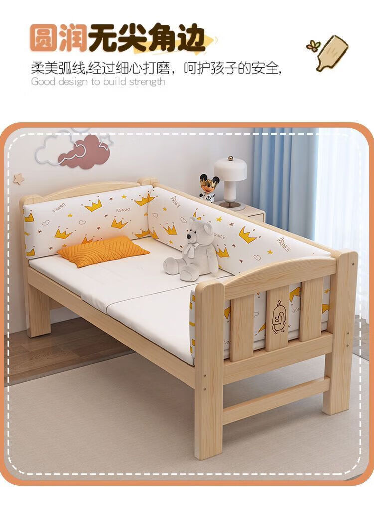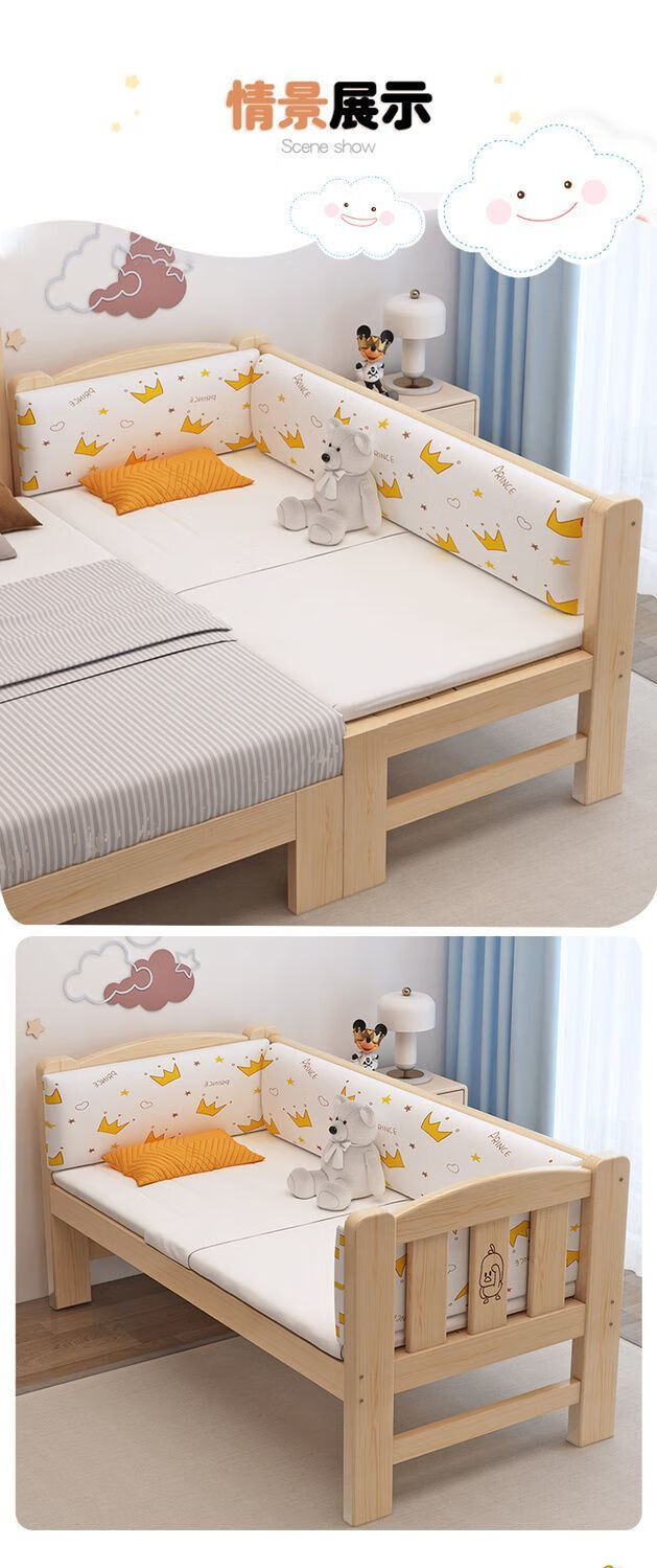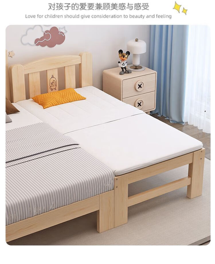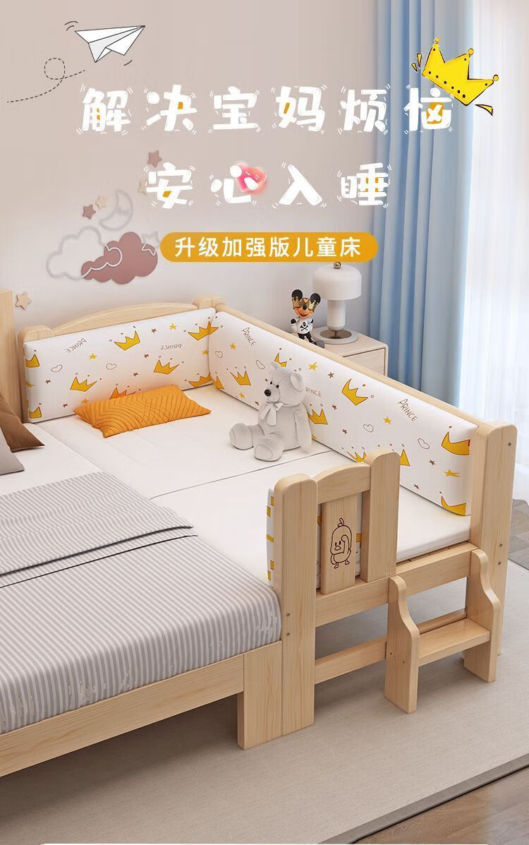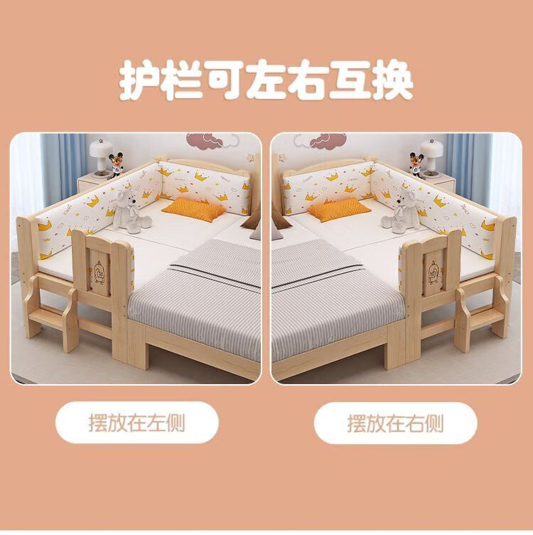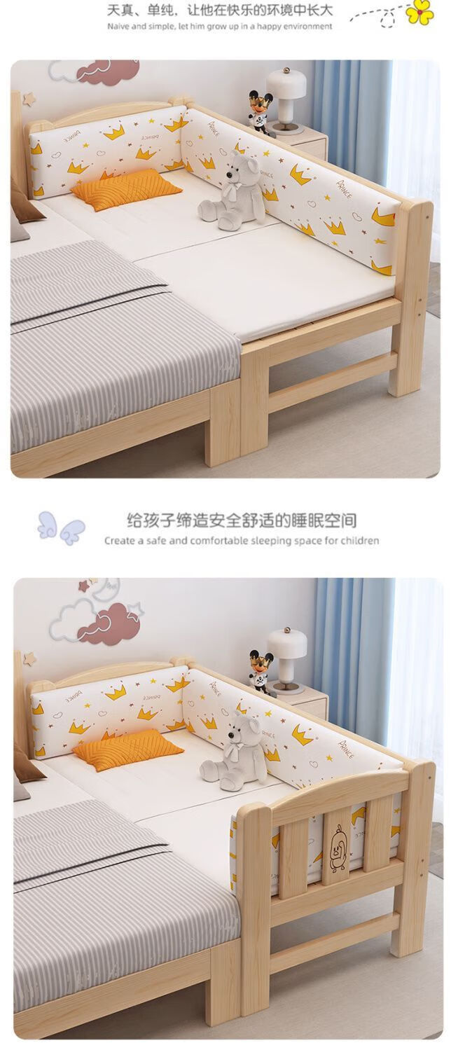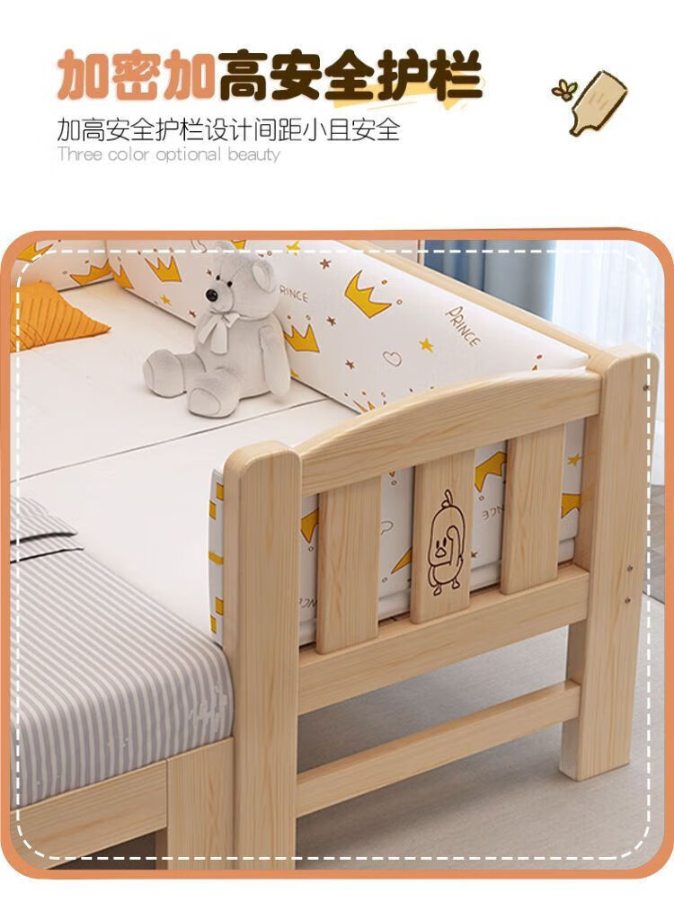 Senyibai solid wood baby bed spliced bed thickened solid wood bed boy single bed girl bedside with baby widened crib two-sided guardrail + mattress () length 200*width 100*height 40