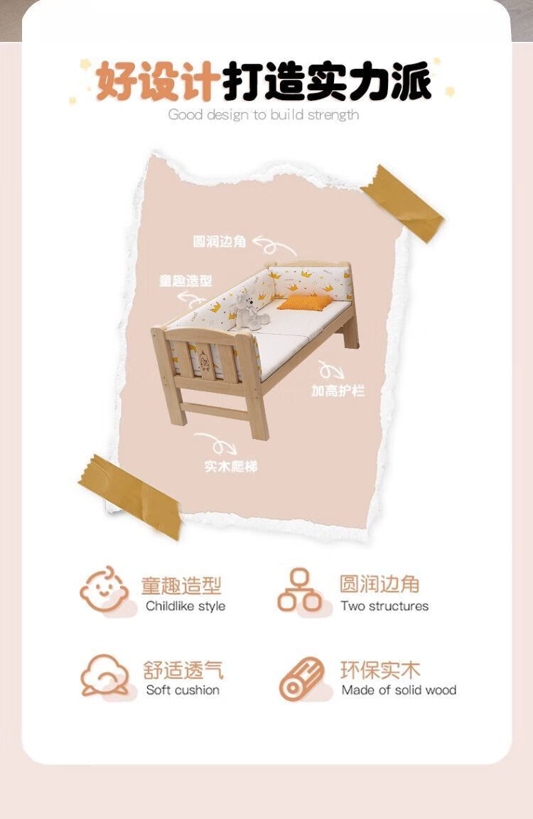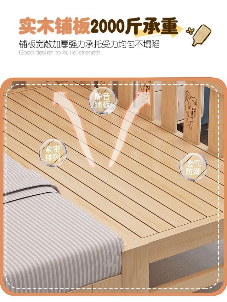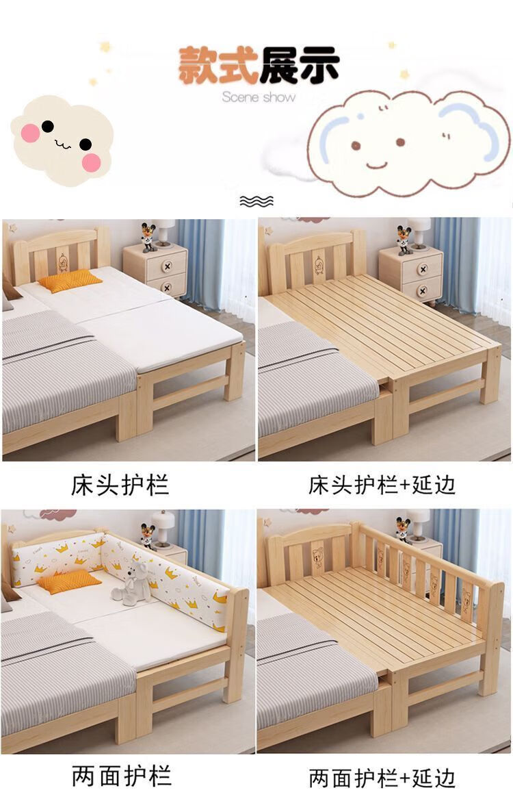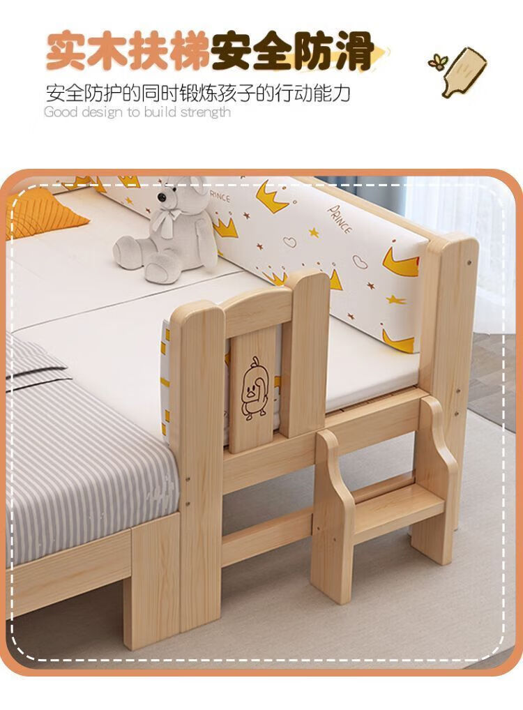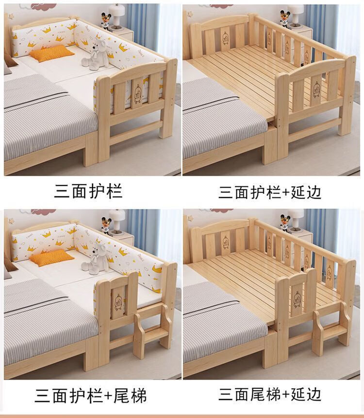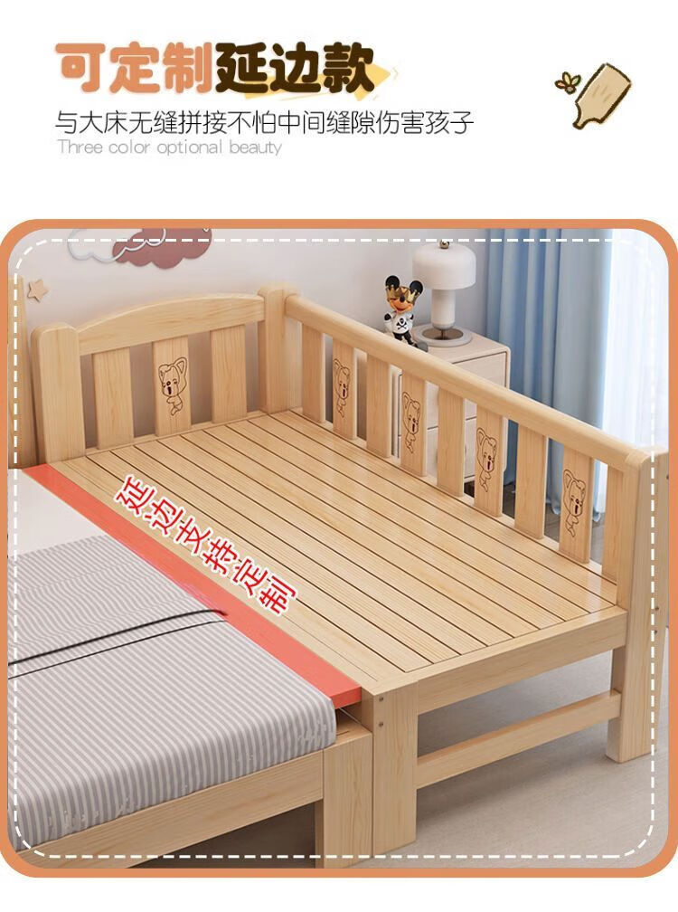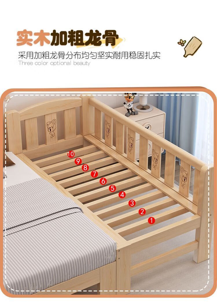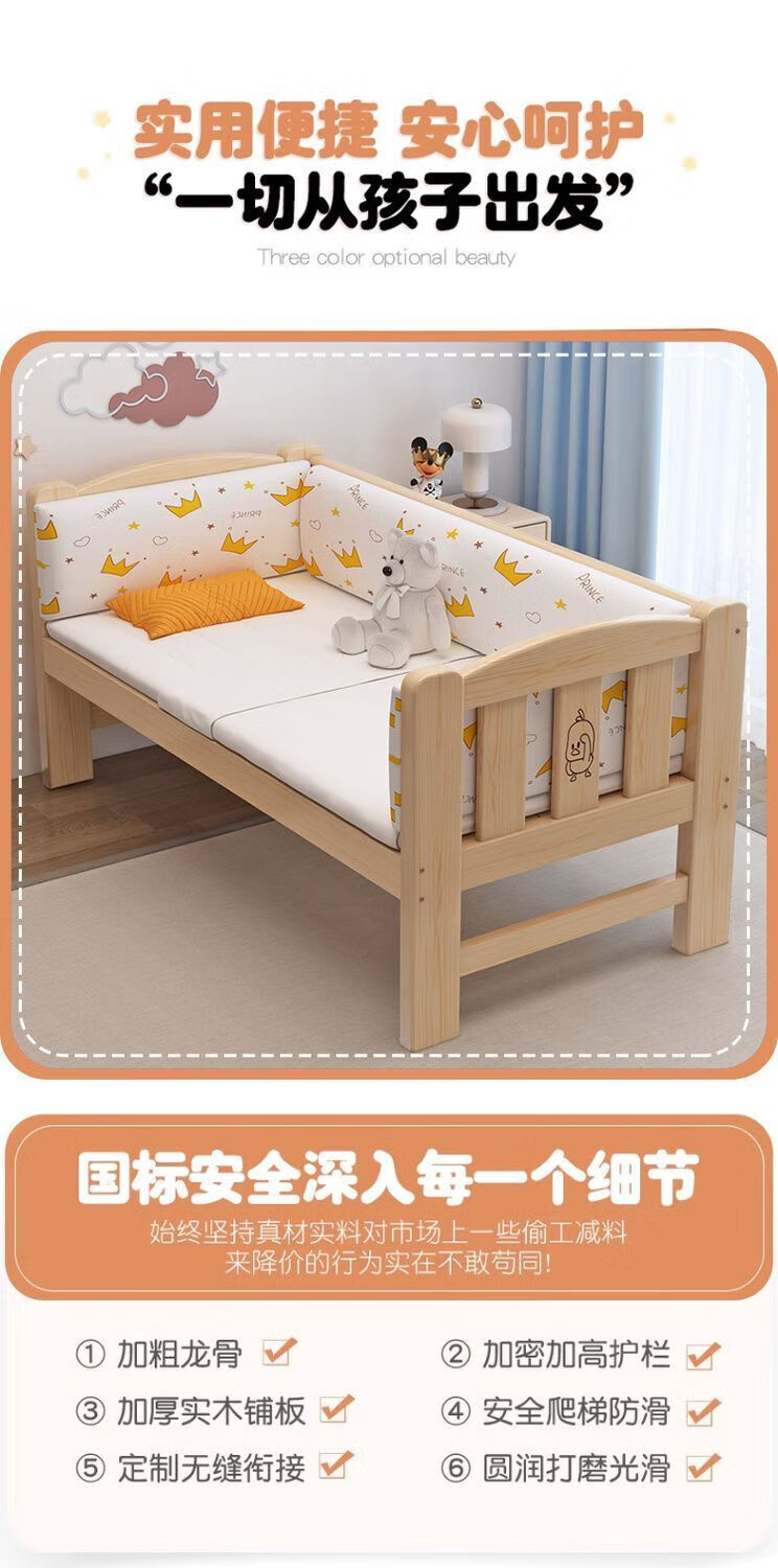 Senyibai solid wood baby bed spliced bed thickened solid wood bed boy single bed girl bedside with baby widened crib two-sided guardrail + mattress () length 200*width 100*height 40