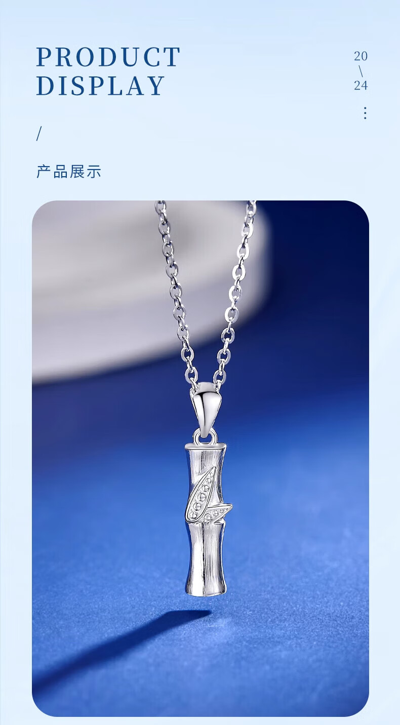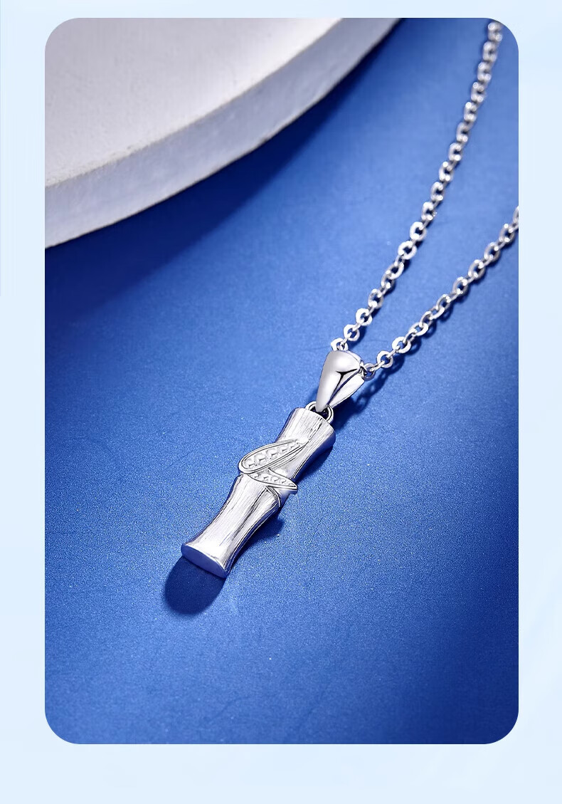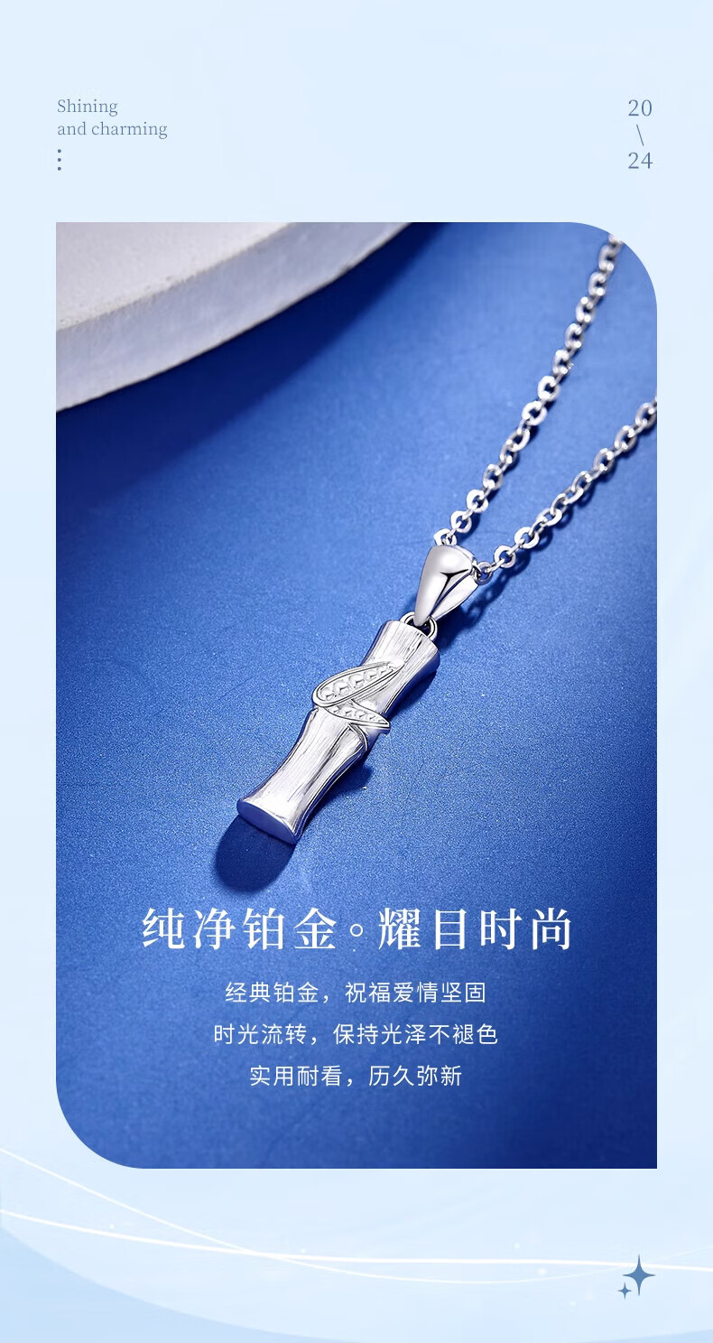 Lao Fengxiang platinum bamboo pendant PT950 necklace for women, pure platinum clavicle, Valentine's Day birthday gift for girlfriend and wife, bamboo pendant, free S925 silver chain, about 2g