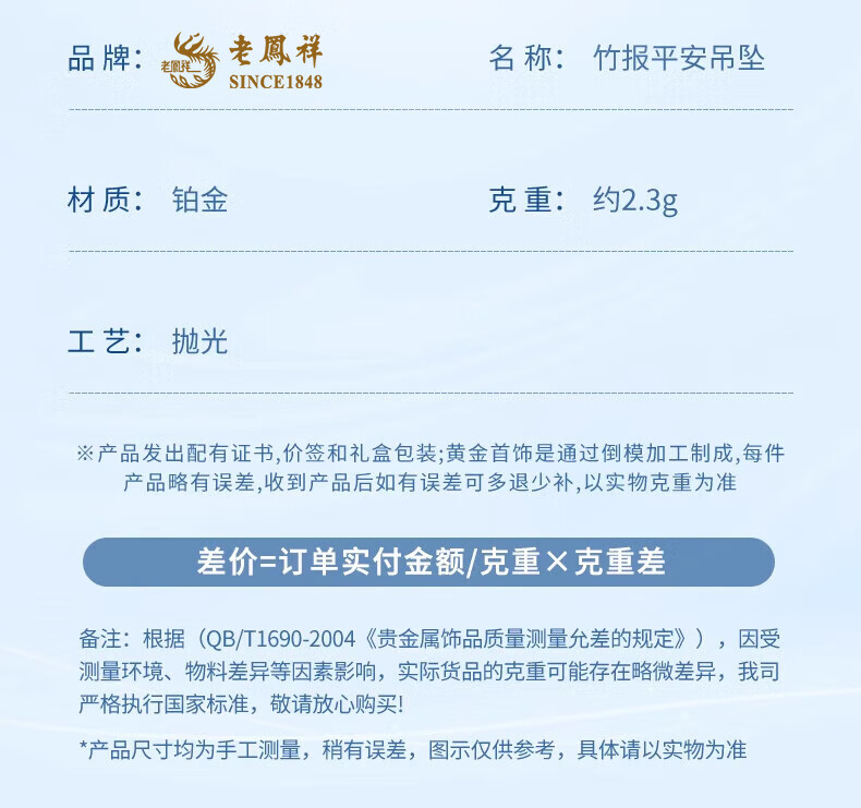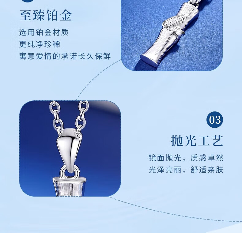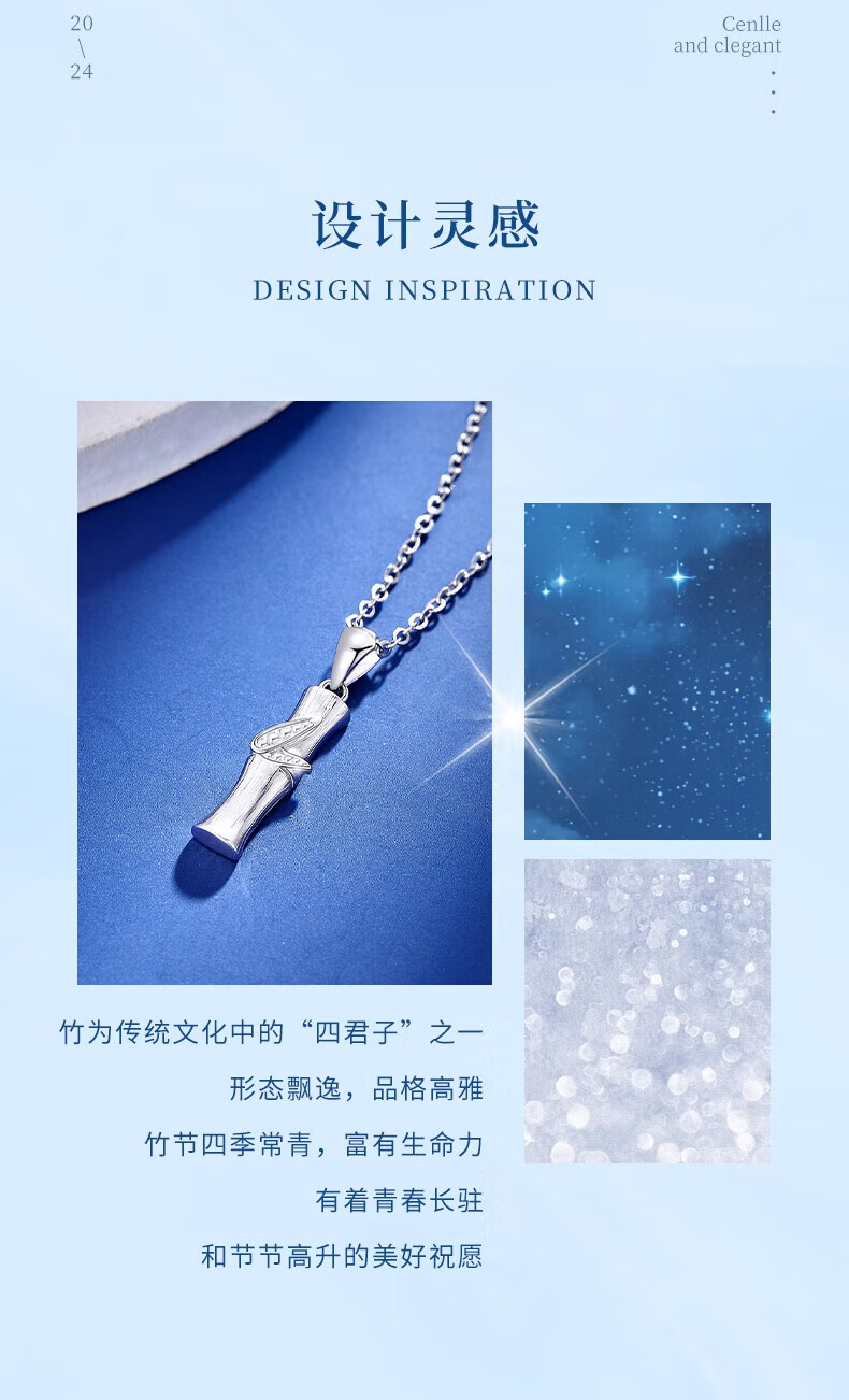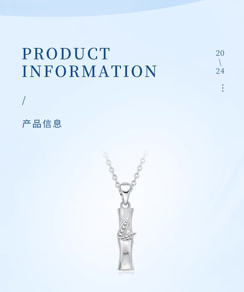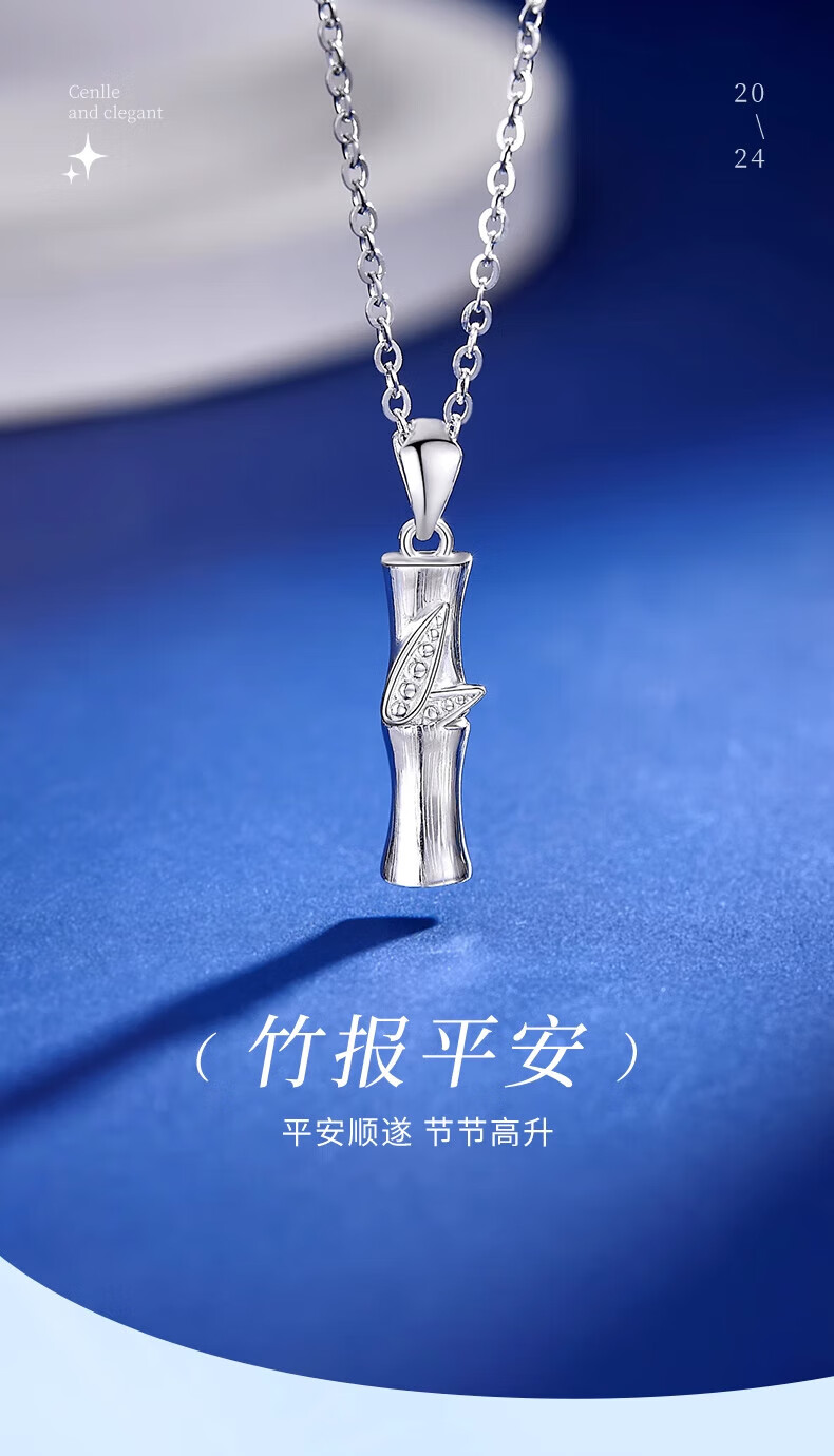 Lao Fengxiang platinum bamboo pendant PT950 necklace for women, pure platinum clavicle, Valentine's Day birthday gift for girlfriend and wife, bamboo pendant, free S925 silver chain, about 2g