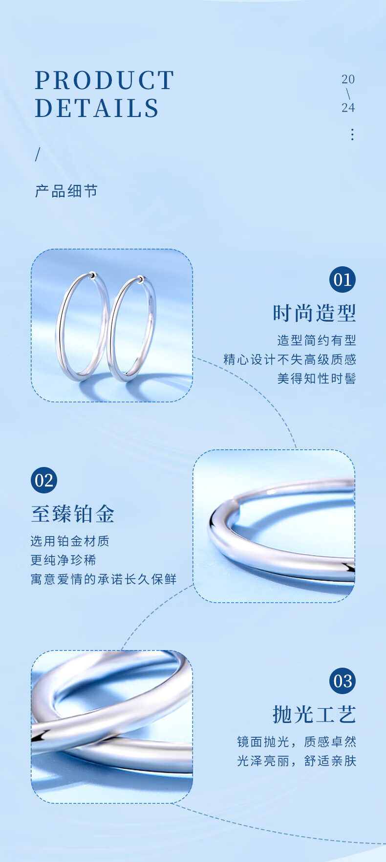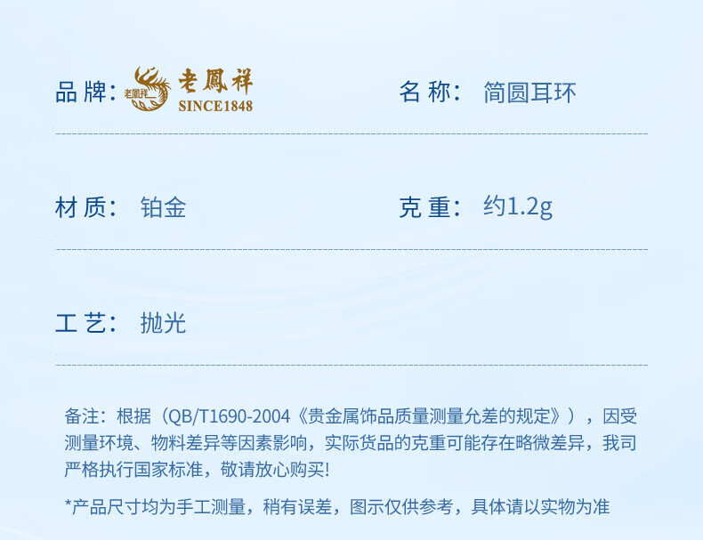Lao Fengxiang platinum earrings glossy white gold PT950 simple earrings as anniversary birthday gifts for girlfriends and wives PT950 platinum halo earrings-1.1g