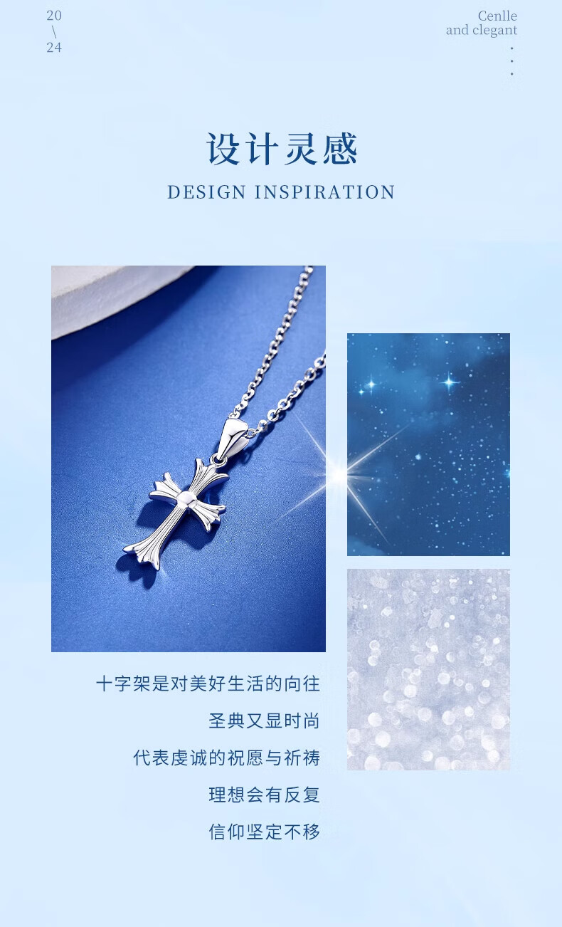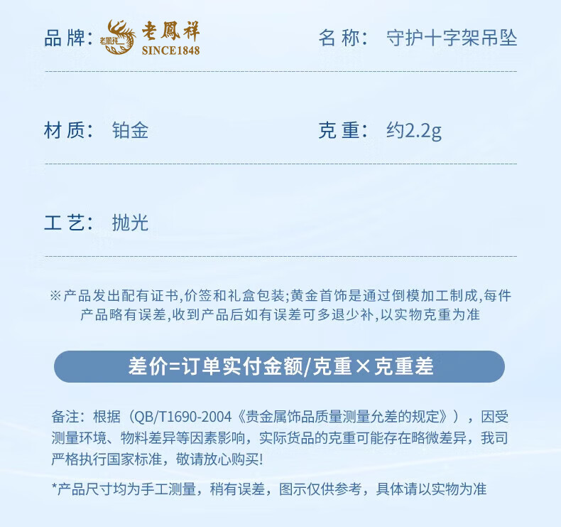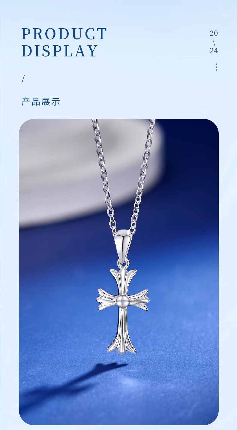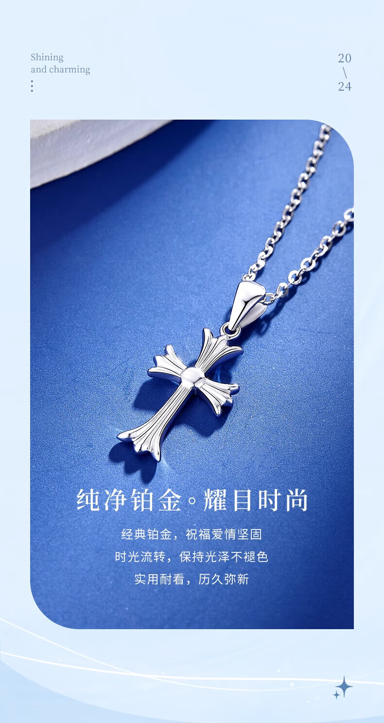 Lao Fengxiang Cross Platinum Necklace PT950 Platinum Pendant Light Luxury Valentine's Day Birthday Gift for Girlfriend and Wife Cross Pendant Free Silver Chain Approximately 1.9g