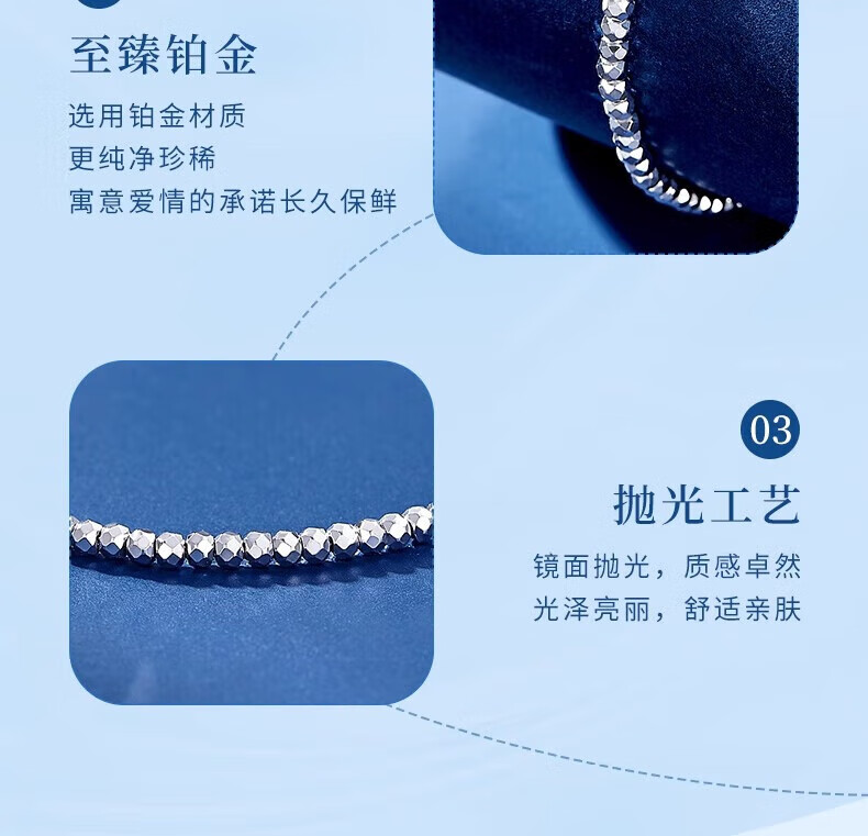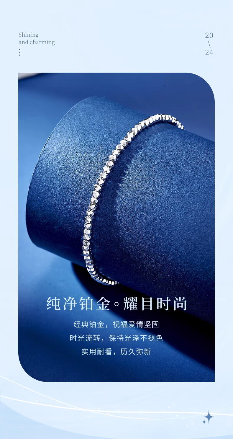 Lao Fengxiang PT950 platinum bead bracelet for women, pure platinum chain, high-end birthday gift for girlfriend and wife, platinum bead bracelet, about 4g