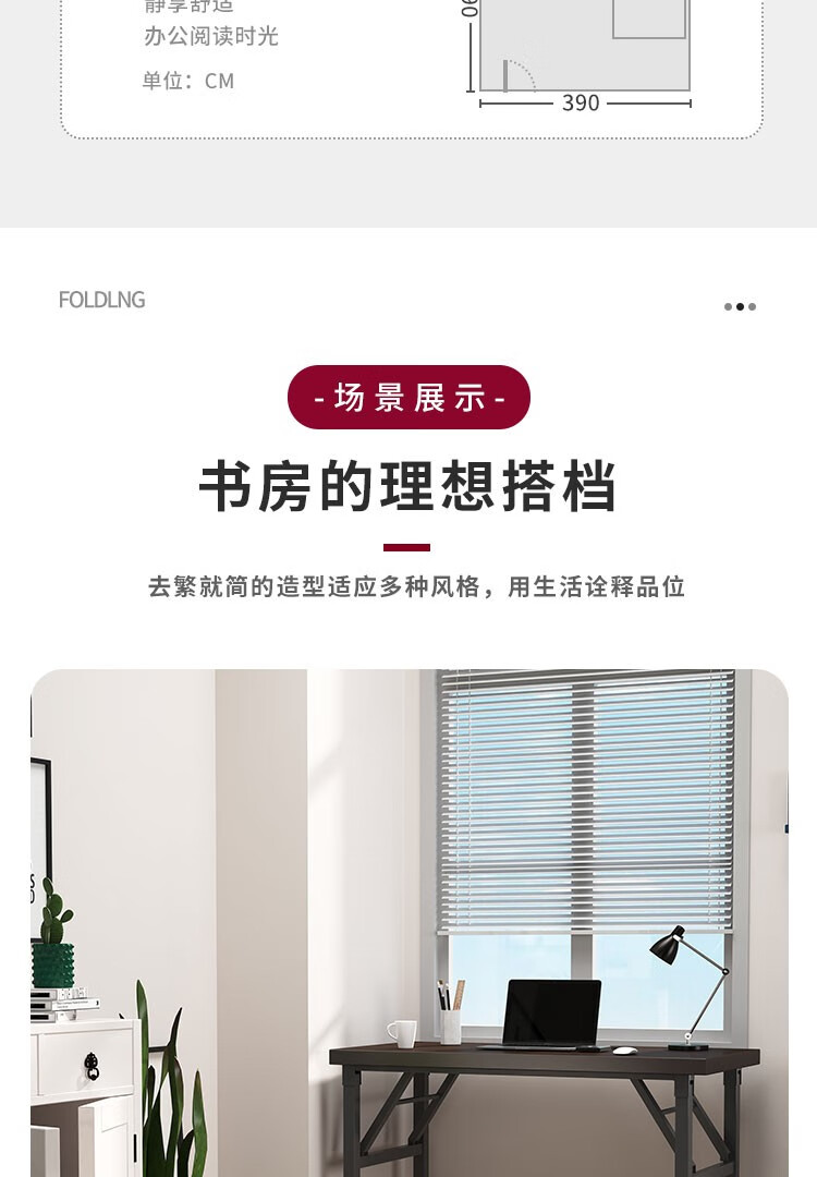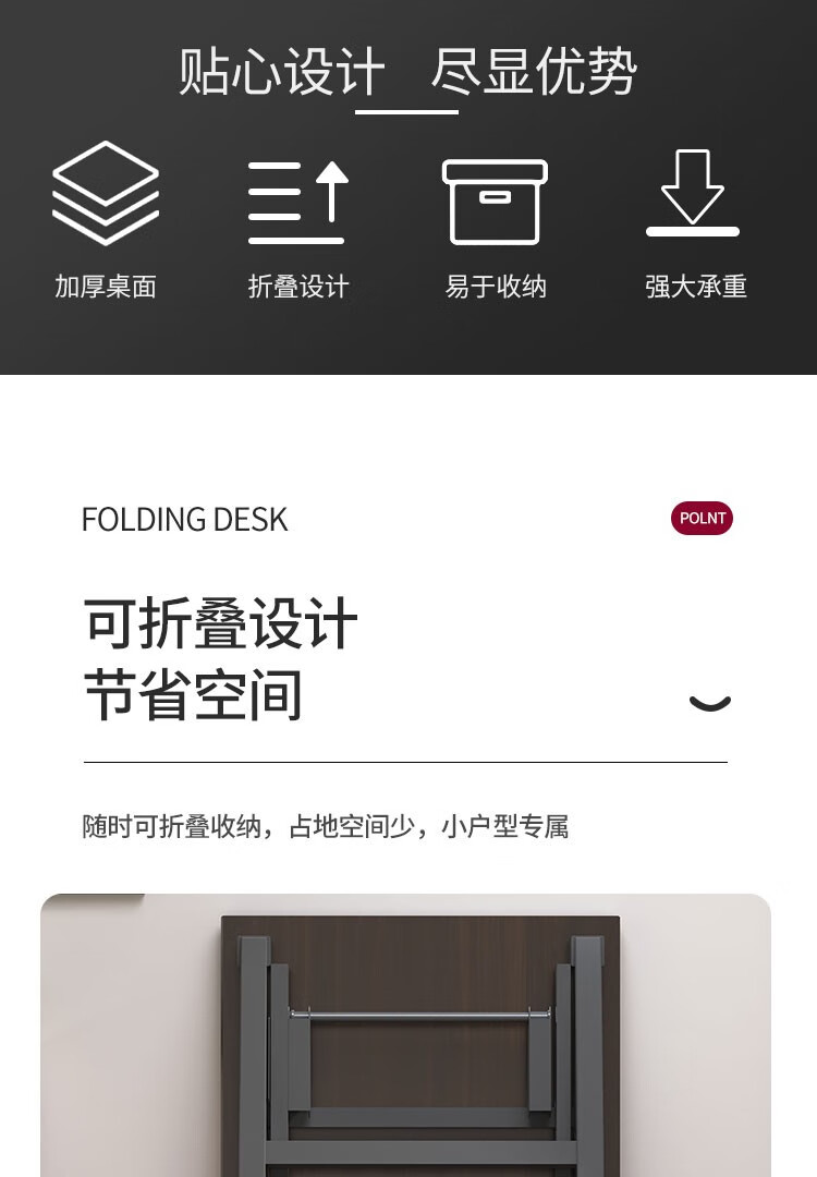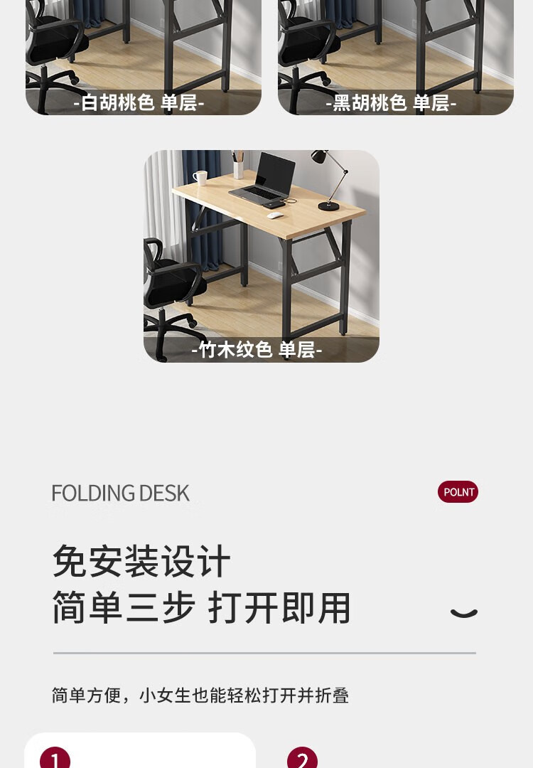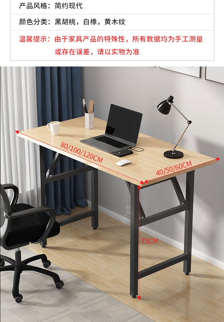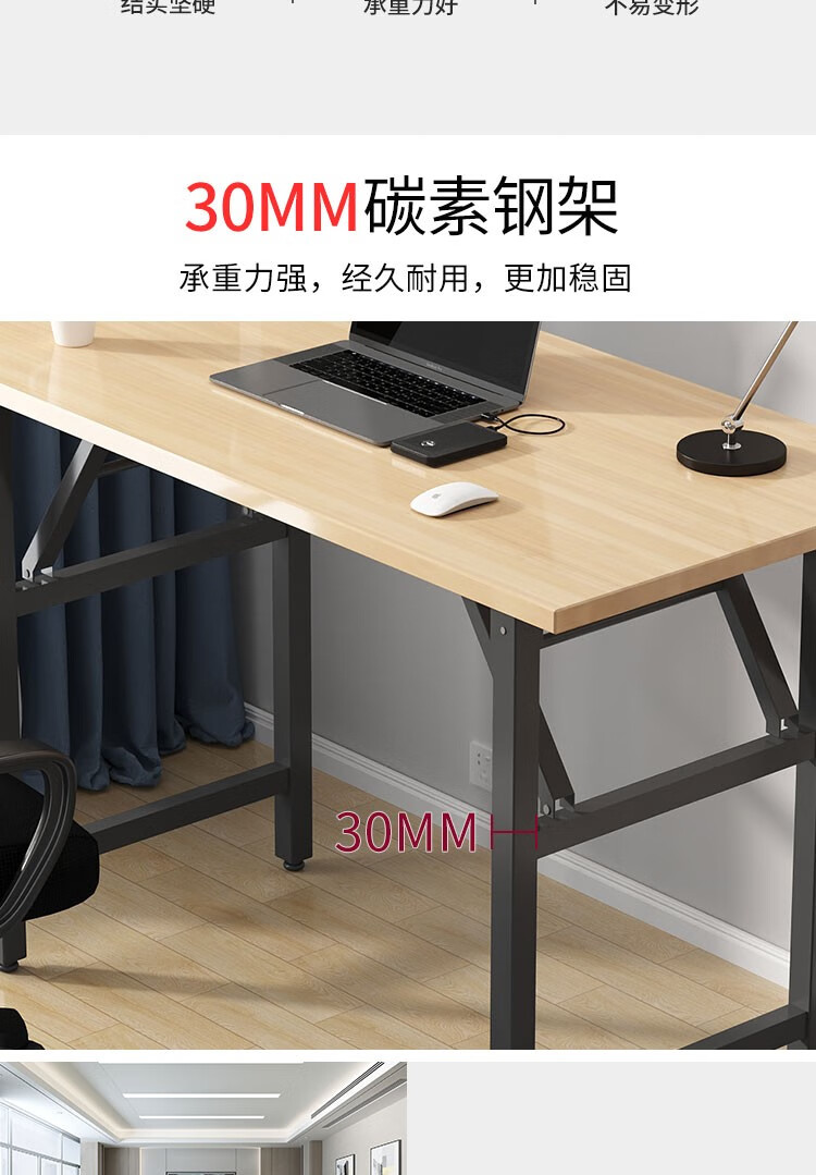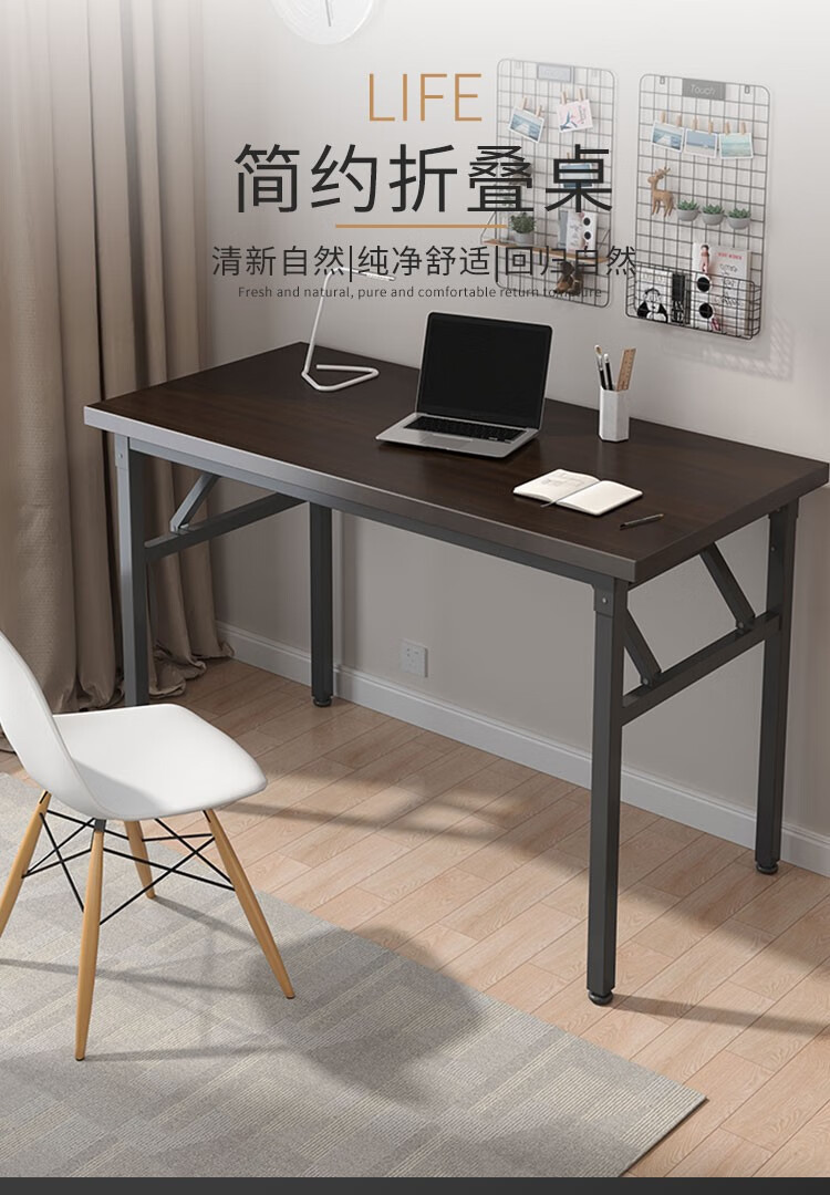 Feiwang Tengda folding table computer desk home simple study desk office training long table outdoor stall table single and double layer recommended 120*60 black walnut-double layer 15mm thickened desktop