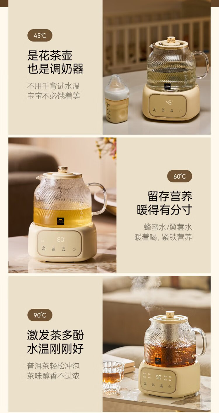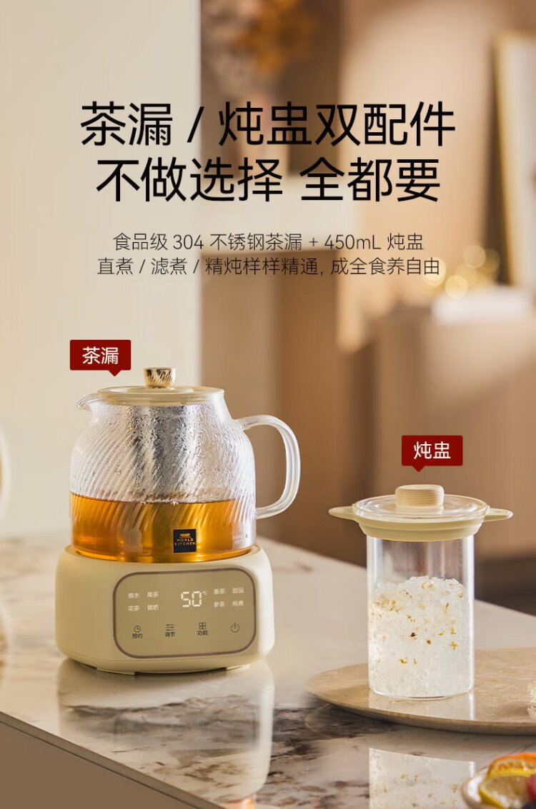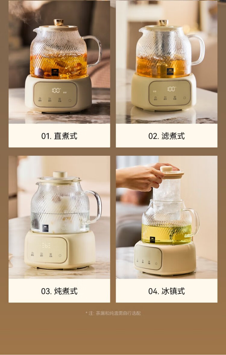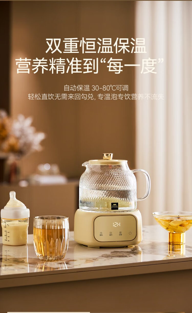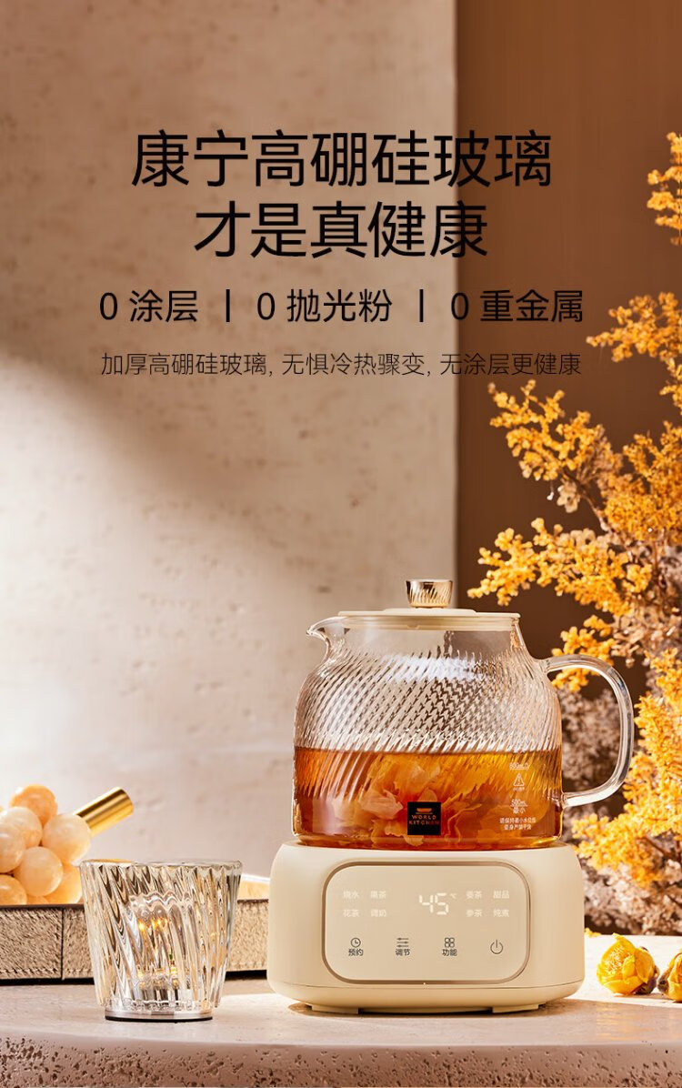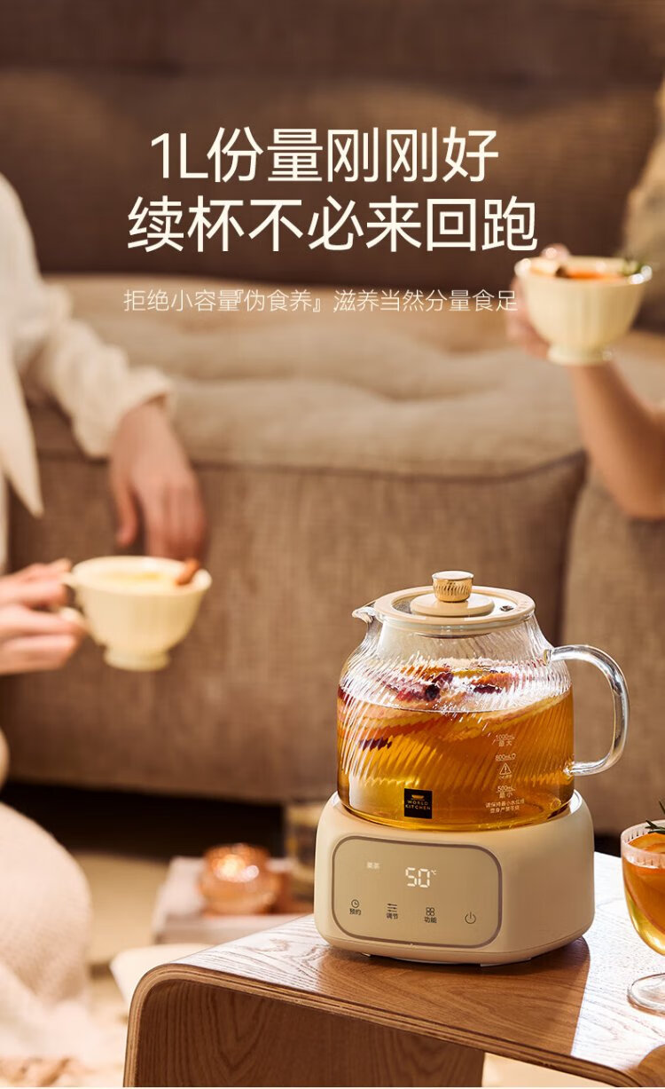 Corning health pot all-glass health pot mini office one-person insulated kettle 2025 new boiling water teapot scented tea constant temperature pot milk regulator 1L tea leakage stew model 24H reservation 72H insulation
