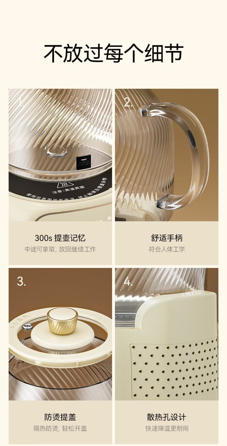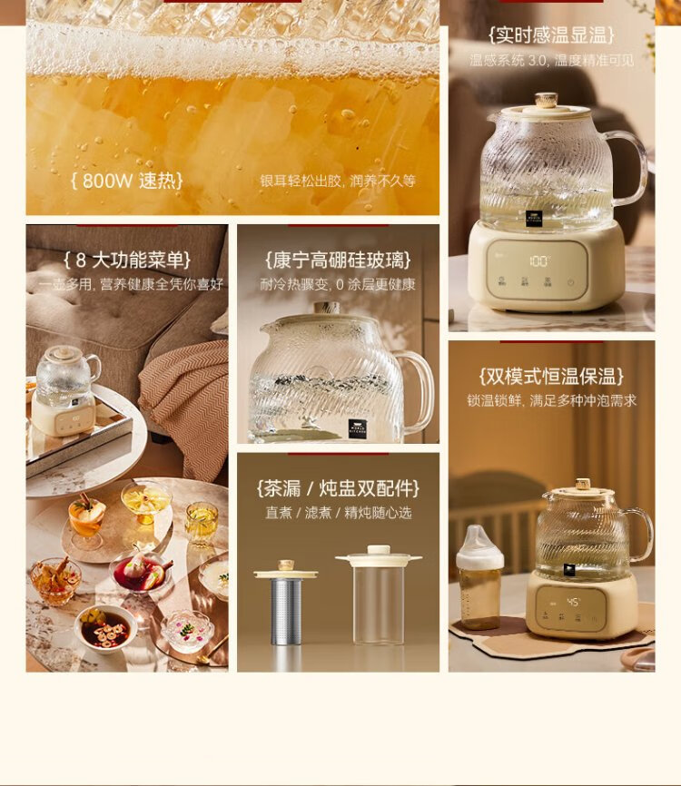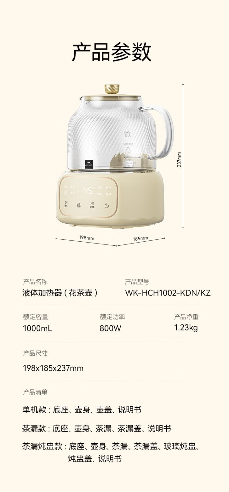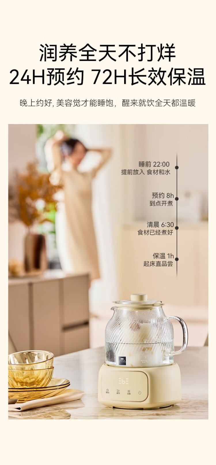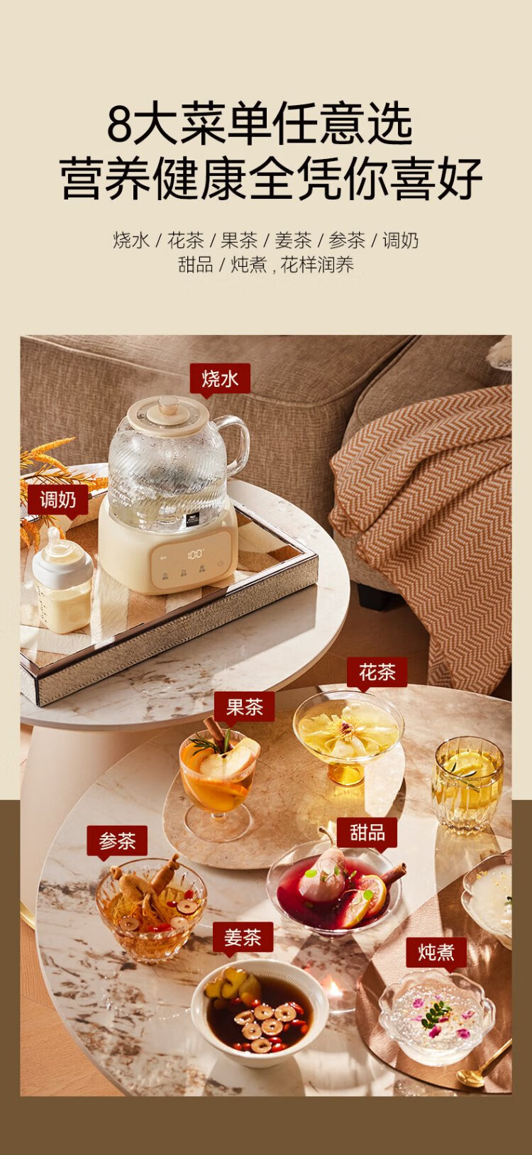 Corning health pot all-glass health pot mini office one-person insulated kettle 2025 new boiling water teapot scented tea constant temperature pot milk regulator 1L tea leakage stew model 24H reservation 72H insulation