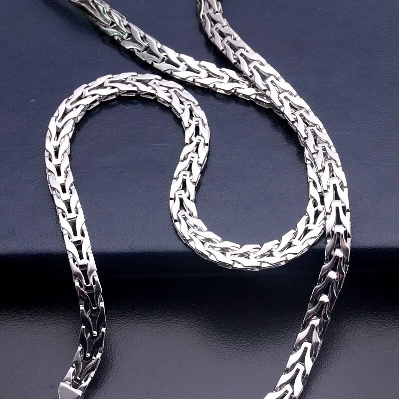 Fiber Bundle (QIANSHU) PT950 platinum necklace men's platinum necklace men's domineering platinum chain platinum snake bone chain thick chain weight about 64.51 grams long about 64 cm thick about 7.5