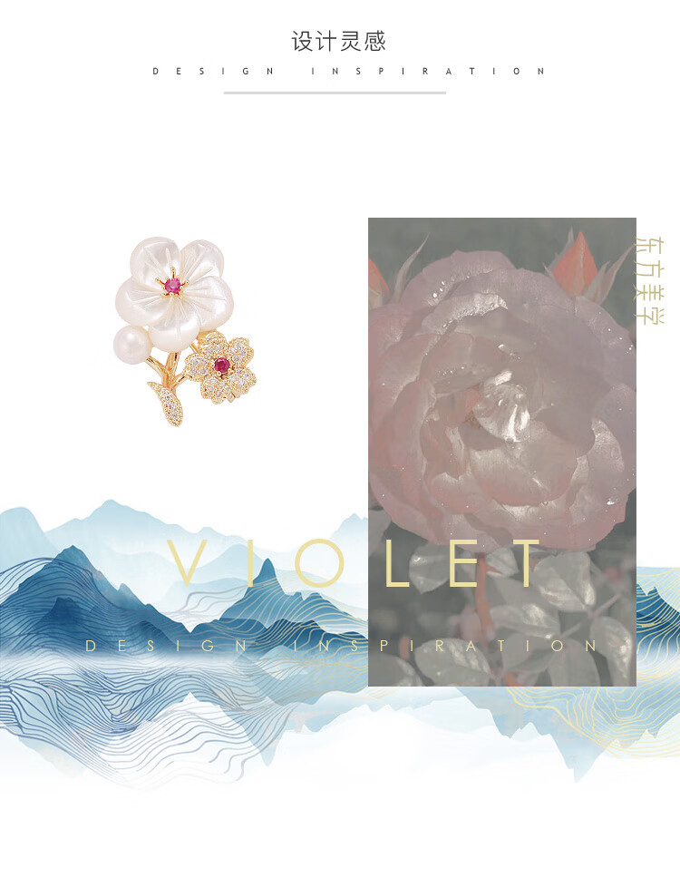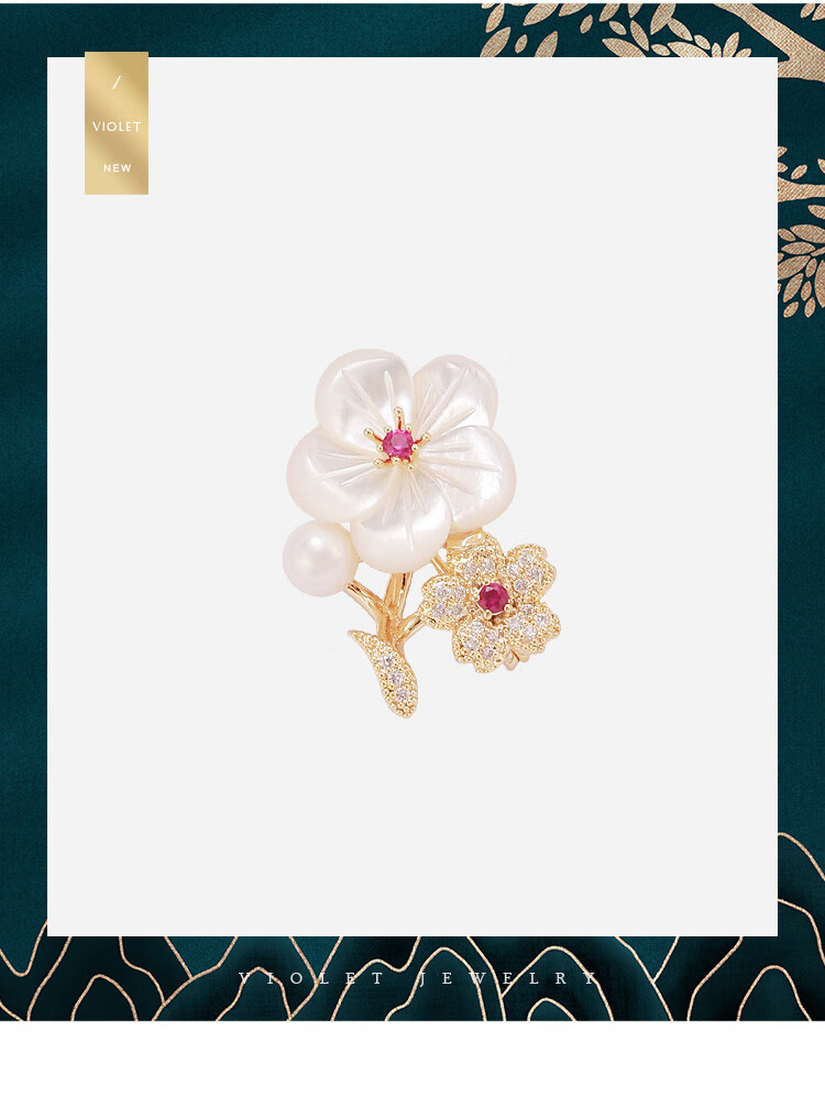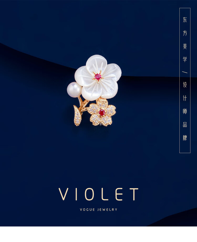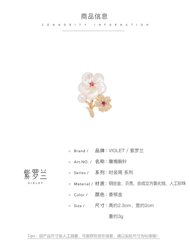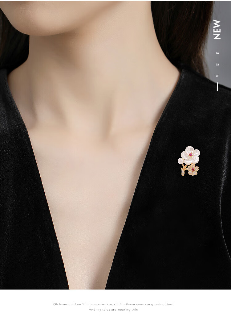 Violet carved plum brooch high-end women's exquisite white plum blossom corsage 2025 new trendy brooch champagne gold