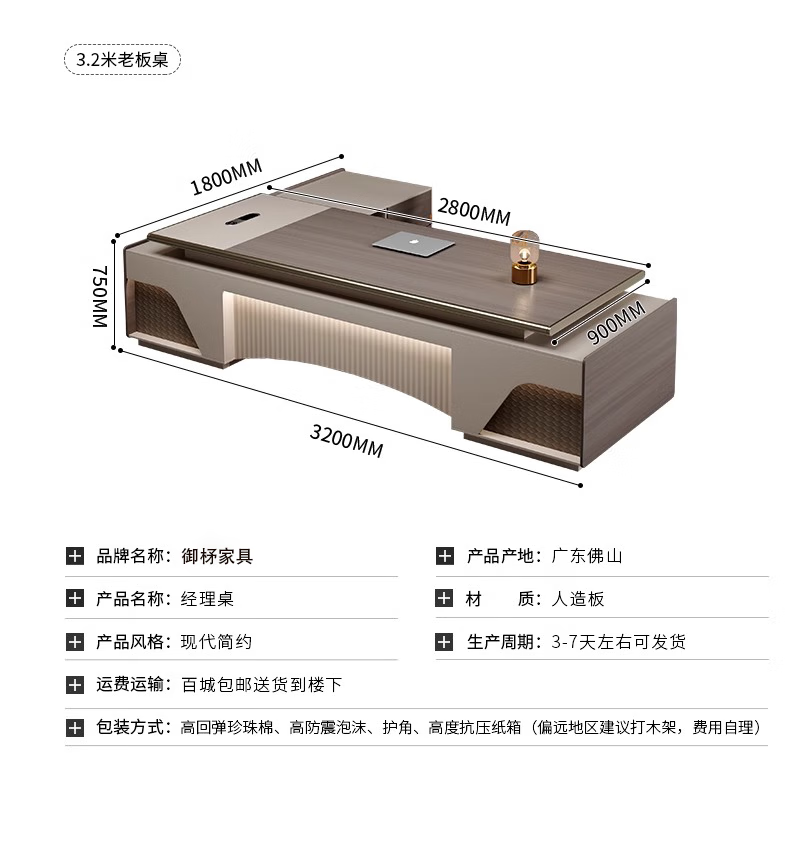 Yuzhu high-end boss desk office desk simple modern light luxury CEO desk chairman executive desk office desk and chair combination 2.0 meters light luxury boss desk