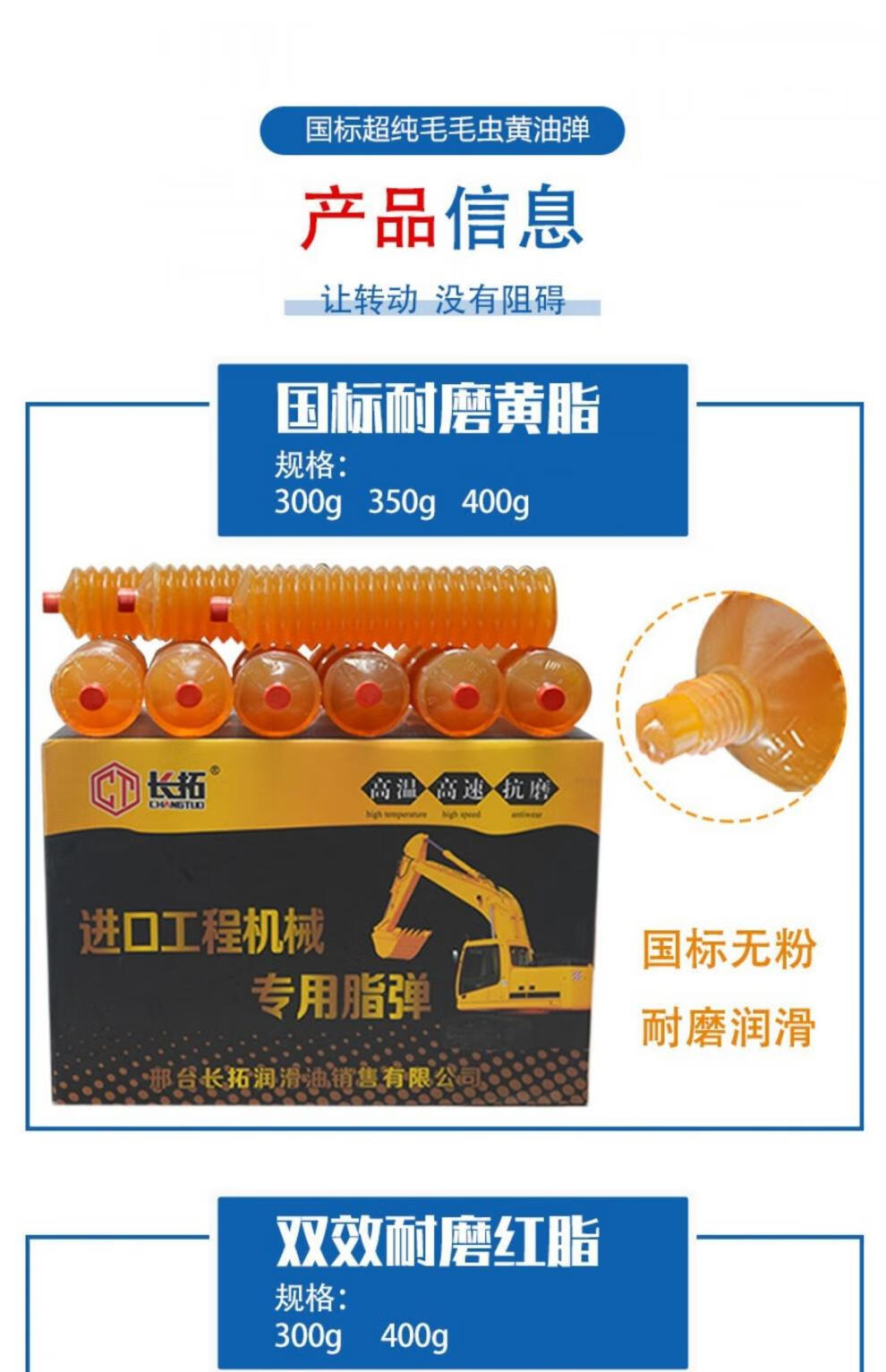 Caterpillar butter gun bullet grease engineering vehicle excavator machinery special wear-resistant high temperature butter grease No. 2 No. 3 400g yellow grease 30 pieces per box Jingyang