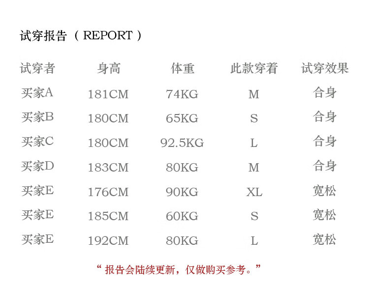 China (cm) 165 / 88-90 170 / 96-98 175 / 108-110 180 / 118-122 185 / 126-130