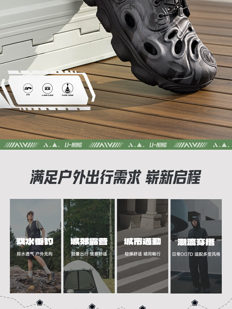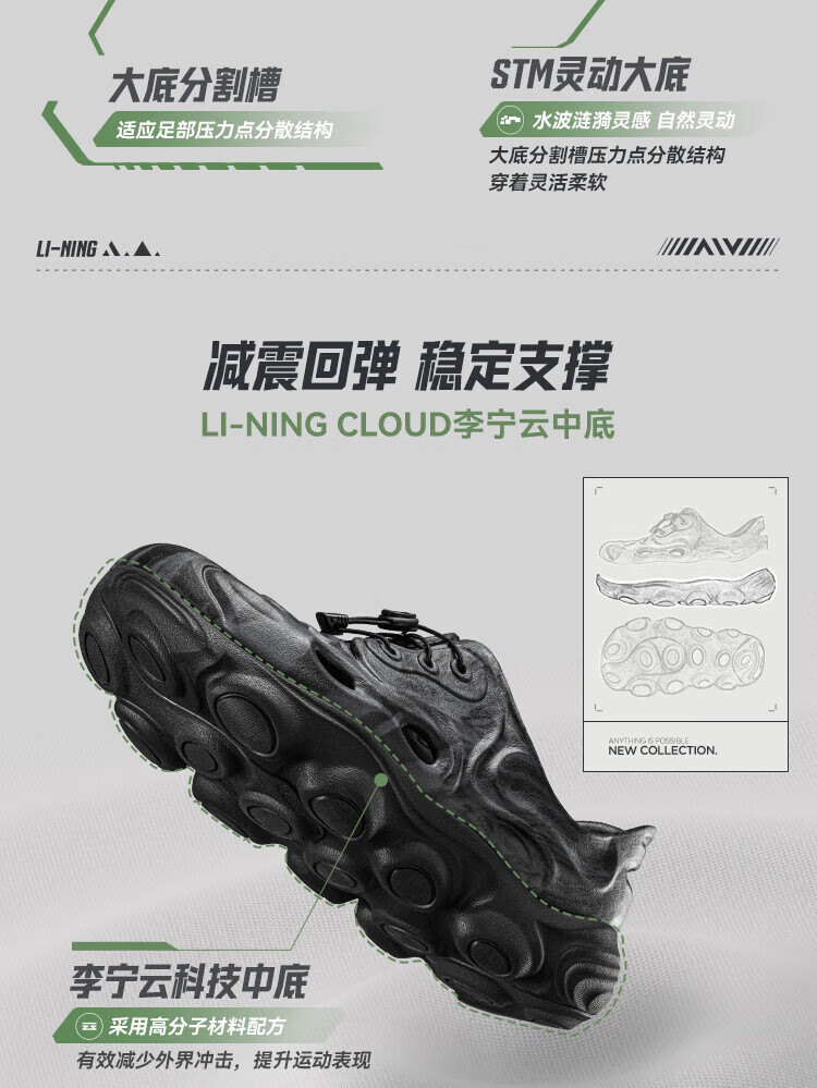 LI-NING李宁溯溪鞋CF溯浔涧户外男女鞋2025夏季新款减震回弹凉鞋AHCV019 AHCV019-6浅茶绿 42