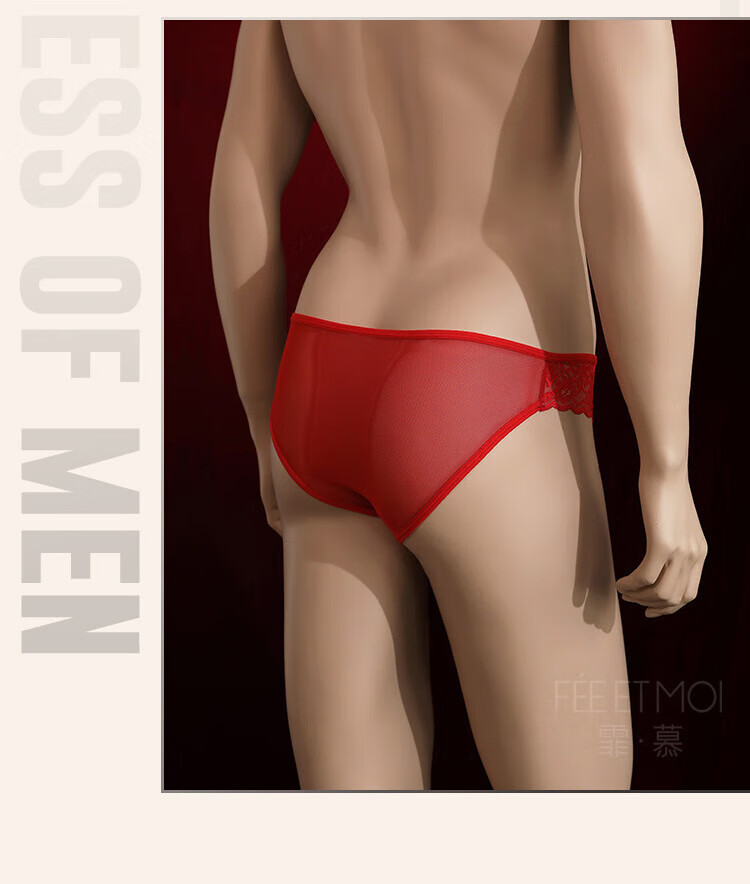 Wan Yue Chun Breeze Men's 2025 New Sexy Sexy Sexy Self-Making Panties Thong Panties Breast Aircraft Cup Panties Wear to Work Red Luding Panties丨Sexy Large Size Extremely Tempting Adult Private Products Sexy Underwear SM Shameful Thong Lace Edge Abnormal Props Slave Heavy Taste Couple
